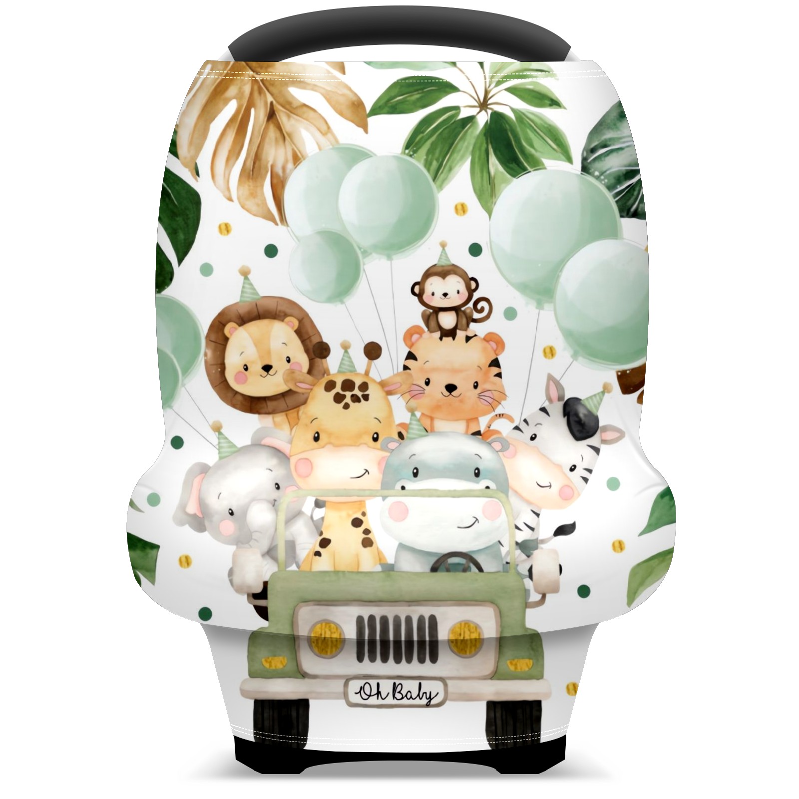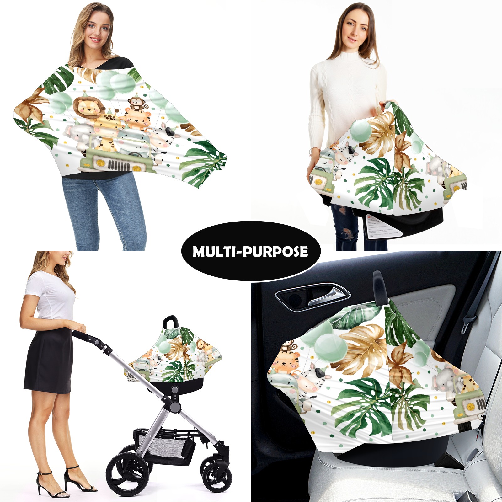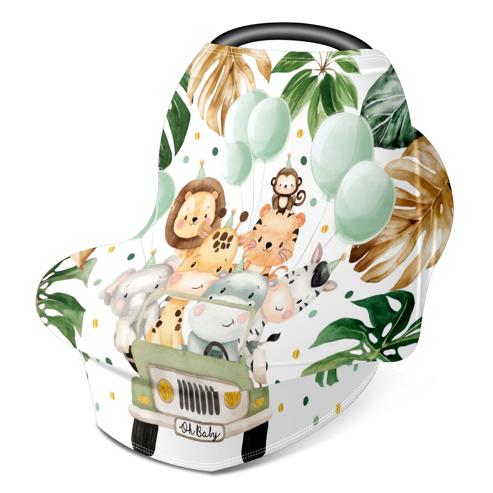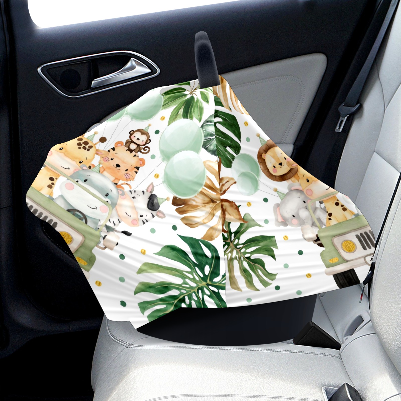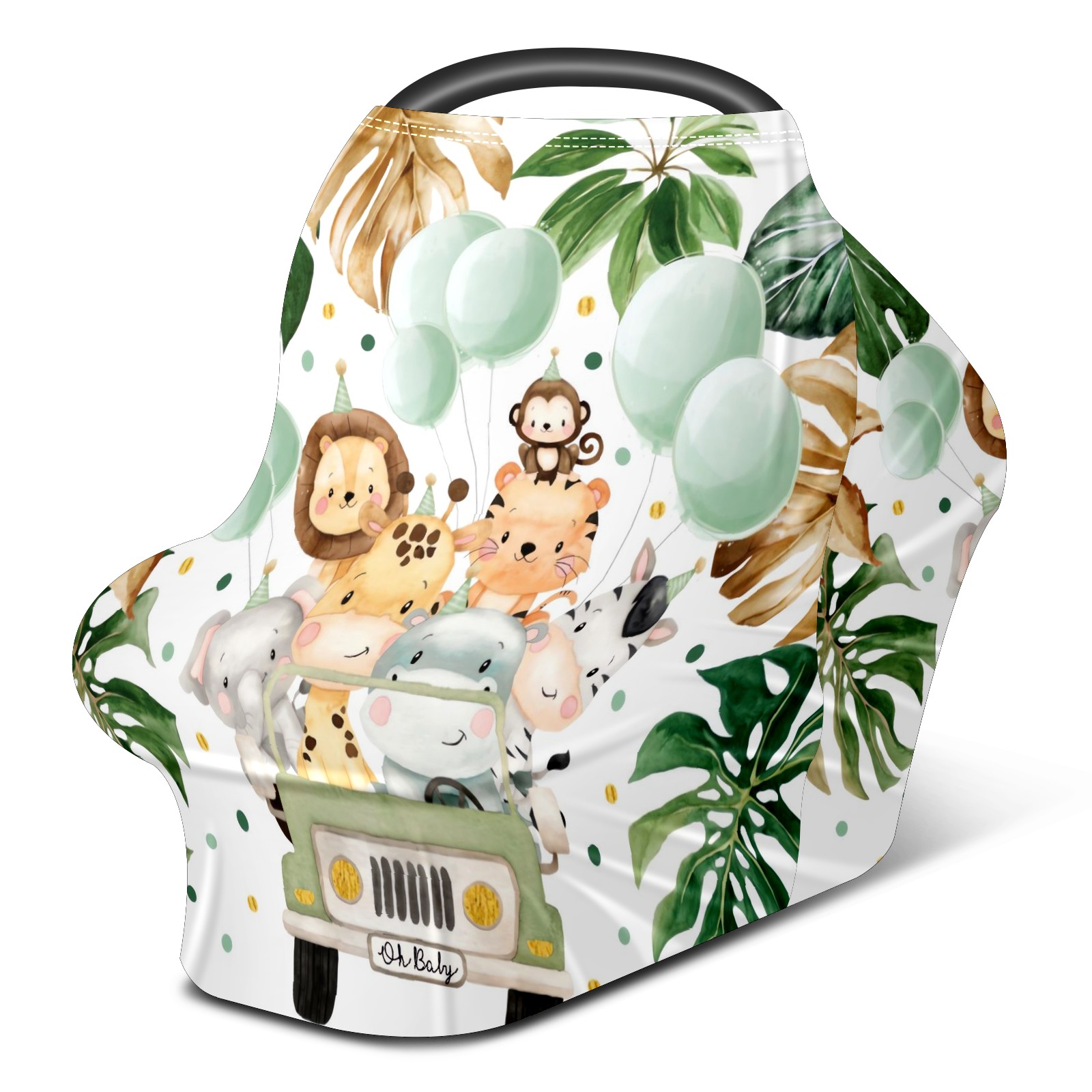 Baby Car Seat Stroller Covers Custom Name Cute Watercolor Safari Animals Jungle Greenery Nursing Cover Breastfeeding Scarf Soft Breathable Stretchy Coverage Carseat Canopy Cover for Boys and Girls Multi Use