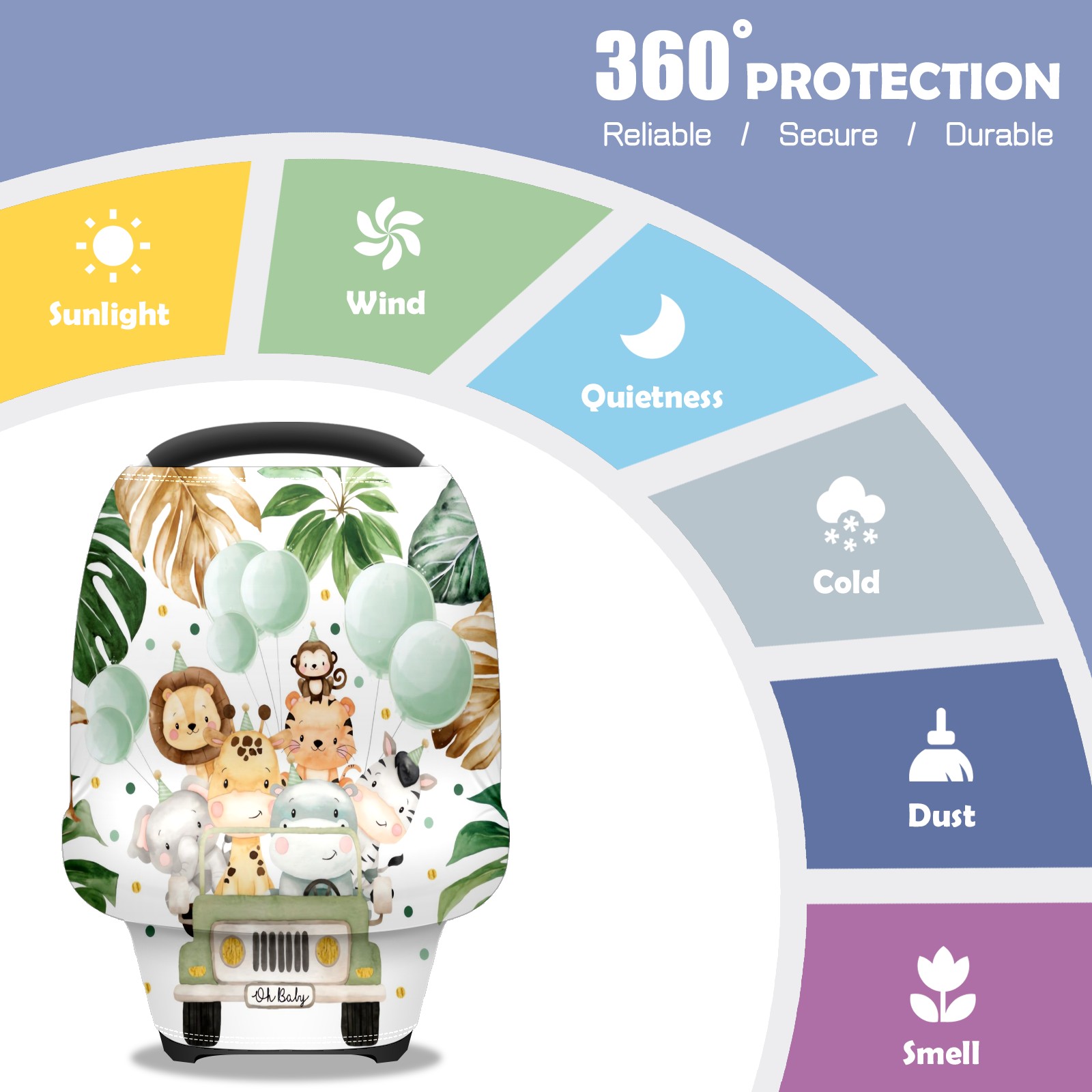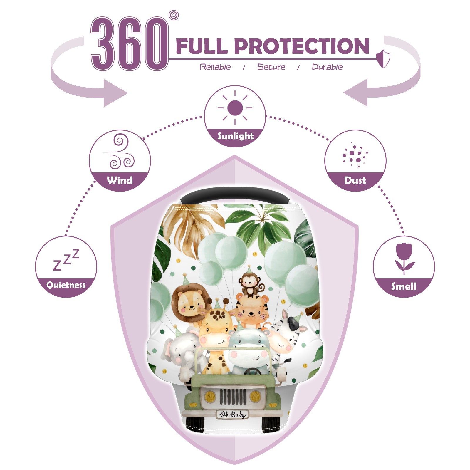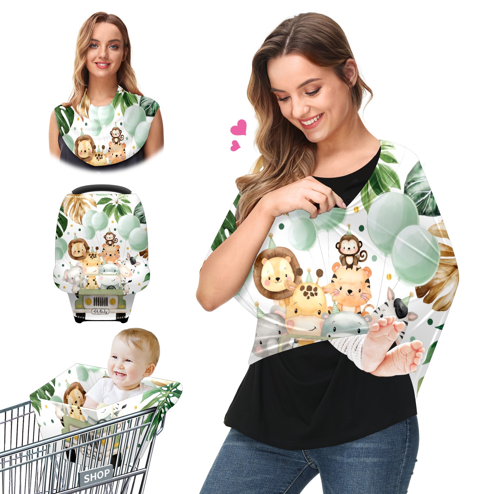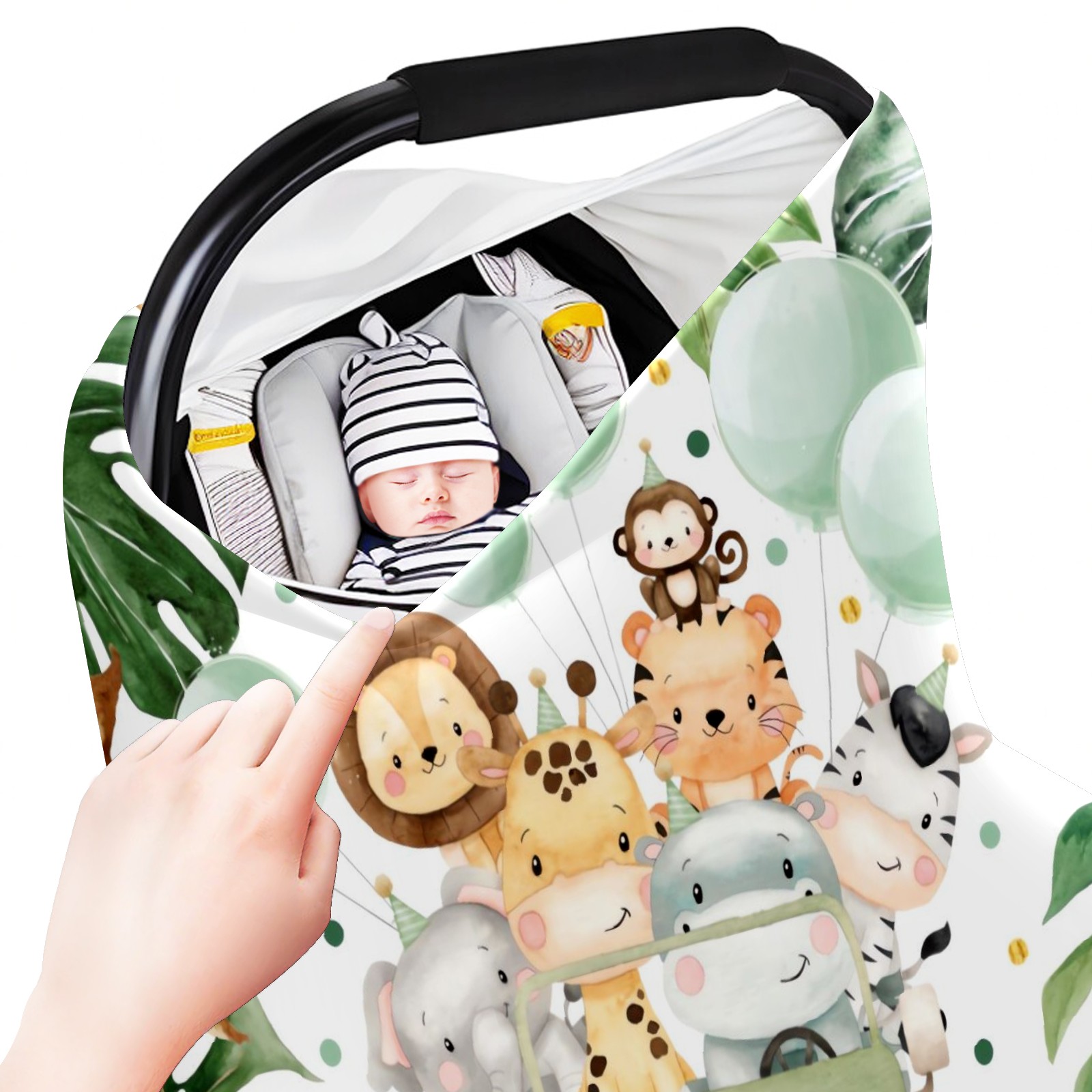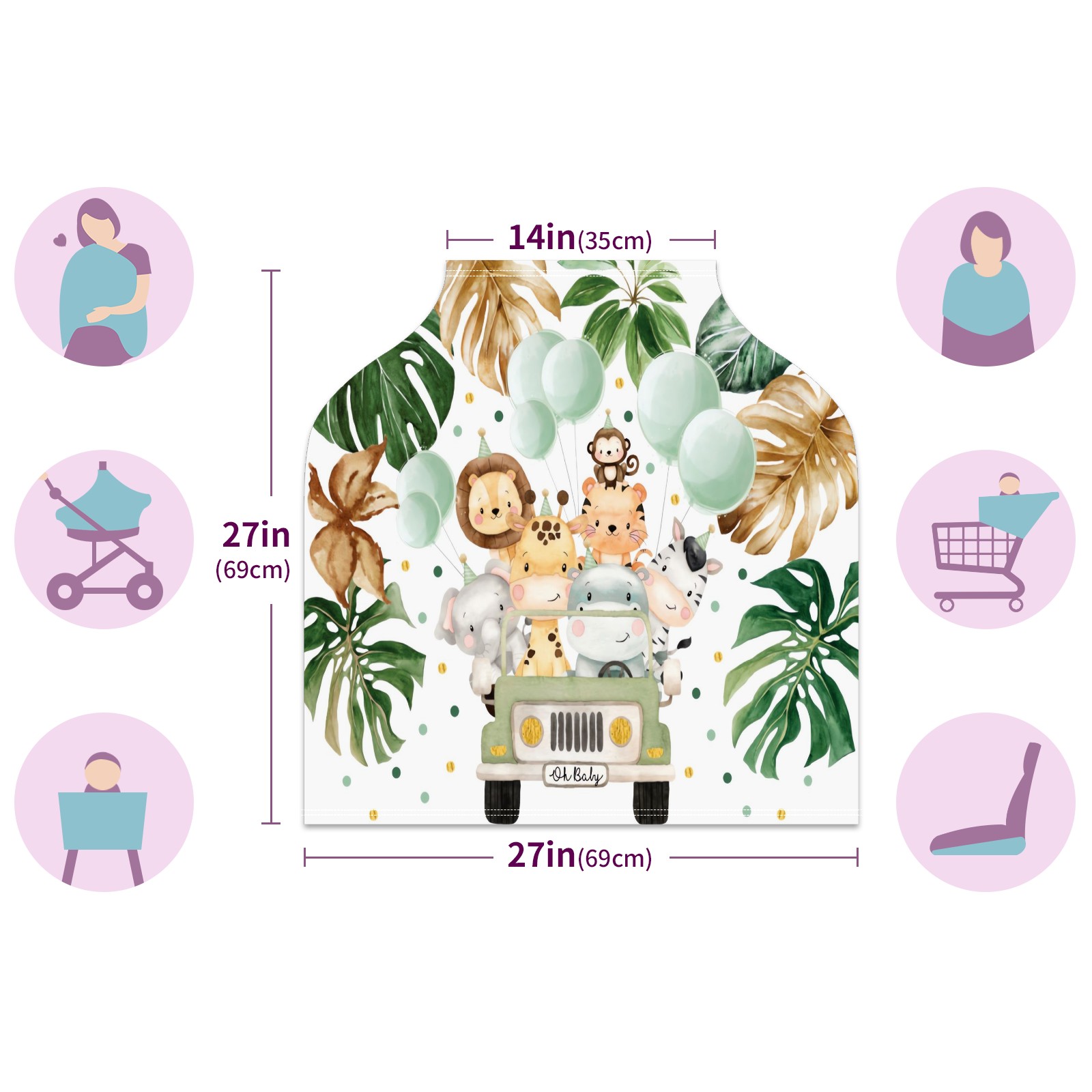 Baby Car Seat Stroller Covers Custom Name Cute Watercolor Safari Animals Jungle Greenery Nursing Cover Breastfeeding Scarf Soft Breathable Stretchy Coverage Carseat Canopy Cover for Boys and Girls Multi Use