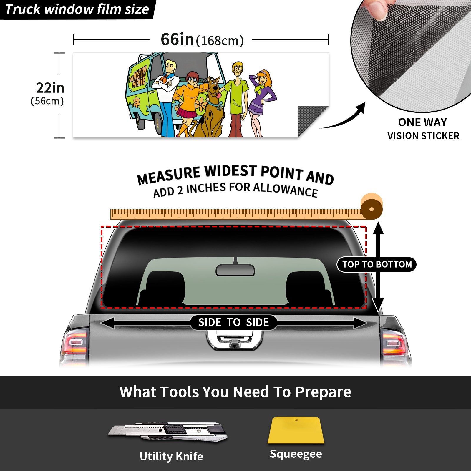 <p><strong>Truck Rear Window Graphics Decals Pickup Trucks Back Window Film Stickers 66" x 22" Perforated Vinyl Wrap Stickers Decorations for Car Rear Window</strong></p><p><strong><br /></strong></p><p><strong>Features :</strong></p><p>- Size of the rear window decals for trucks is 66x22 Inches (168x56cm).</p><p>- High quality perforated vinyl window film, one way vision sticker.</p><p>- Perforated is see through from the inside but not from outside.</p><p>- Clear printing, waterproof and durable.</p><p>- The car back window graphics stickers fits most truck and makes your vehicle more beautiful.&nbsp;</p><p><br /></p><p><strong>【Installation Instructions】</strong></p><p><strong>1. CLEAN SURFACE -</strong> Clean the rear window thoroughly and make sure the surface clean.</p><p><strong>2. STICK THE DECALS -</strong> Tear off the paper on the back and stick the decal on the window.</p><p><strong>3. SCRAPE OFF AIR BUBBLES -</strong> Use a squeegee or other card to scrape off the excess air bubbles.</p><p><strong>4. TRIM THE EXCESS -</strong> Use a knife to cut off the excess stickers of the window, finally complete.</p><p><br /></p><p>1. Please measure the size before purchasing, back window graphics decal for truck can be cut to your desired size.</p><p>2.The graphics stickers for truck back window is a great gift for yourself also can as a birthday / halloween / christmas gift for your friends and family.</p>
