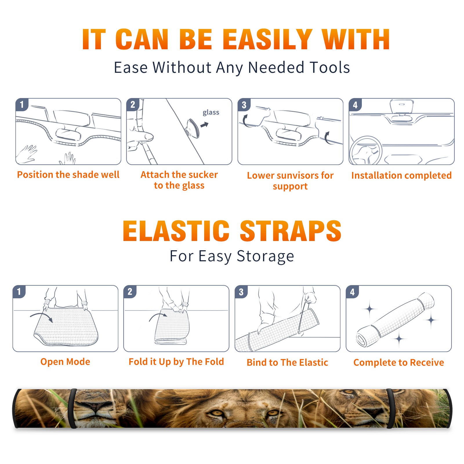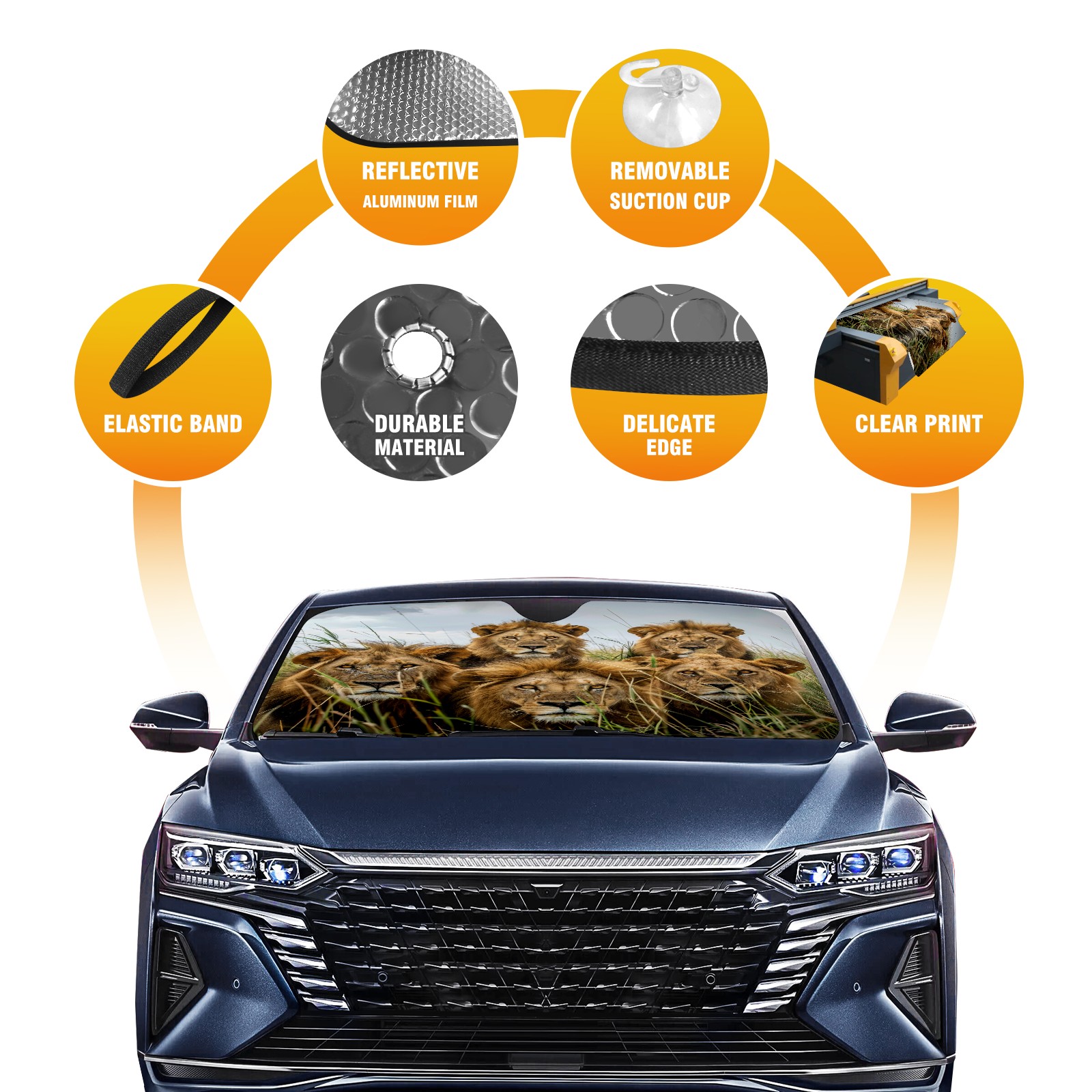 Windshield Sun Shade for Car 55''x30'' Lions (1) Auto Sun Visor Blocks UV Rays Car Front Window Shade, Sunshade for Car Windshield Truck SUV Sun Heat Protection