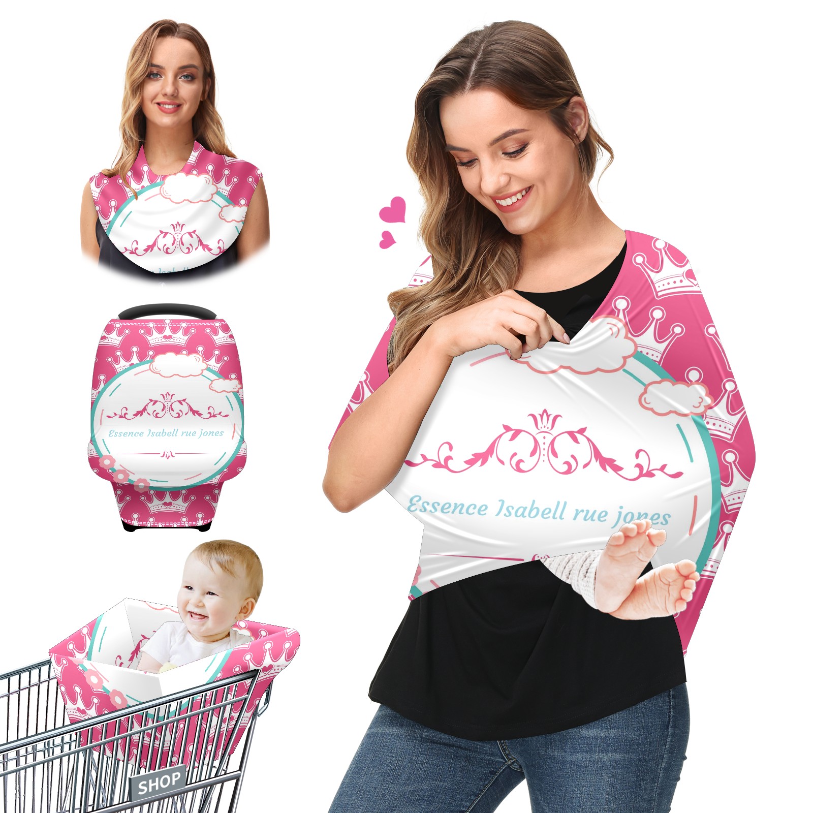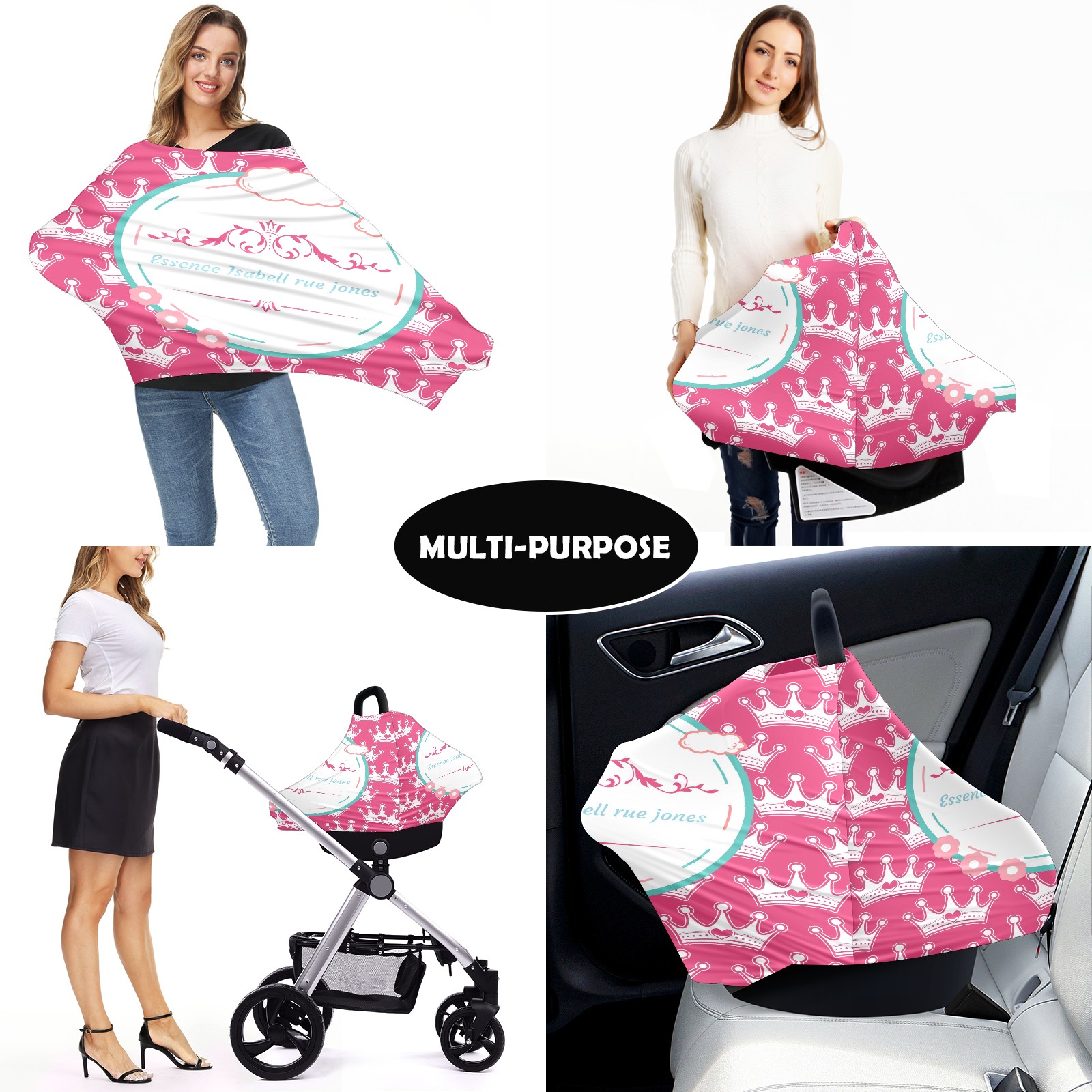 Baby Car Seat Stroller Covers Custom Name 花体字标图案结合8-3.25 Nursing Cover Breastfeeding Scarf Soft Breathable Stretchy Coverage Carseat Canopy Cover for Boys and Girls Multi Use