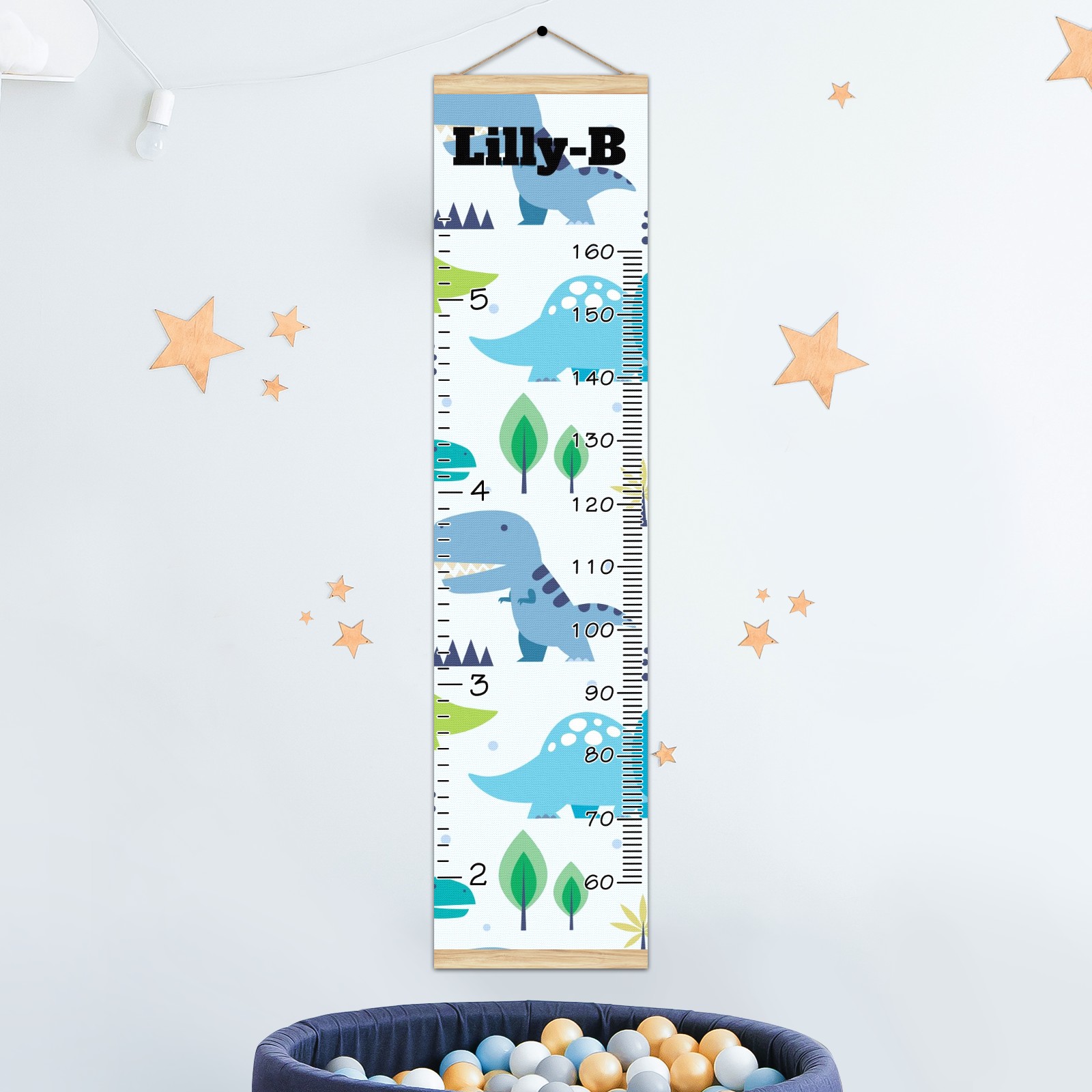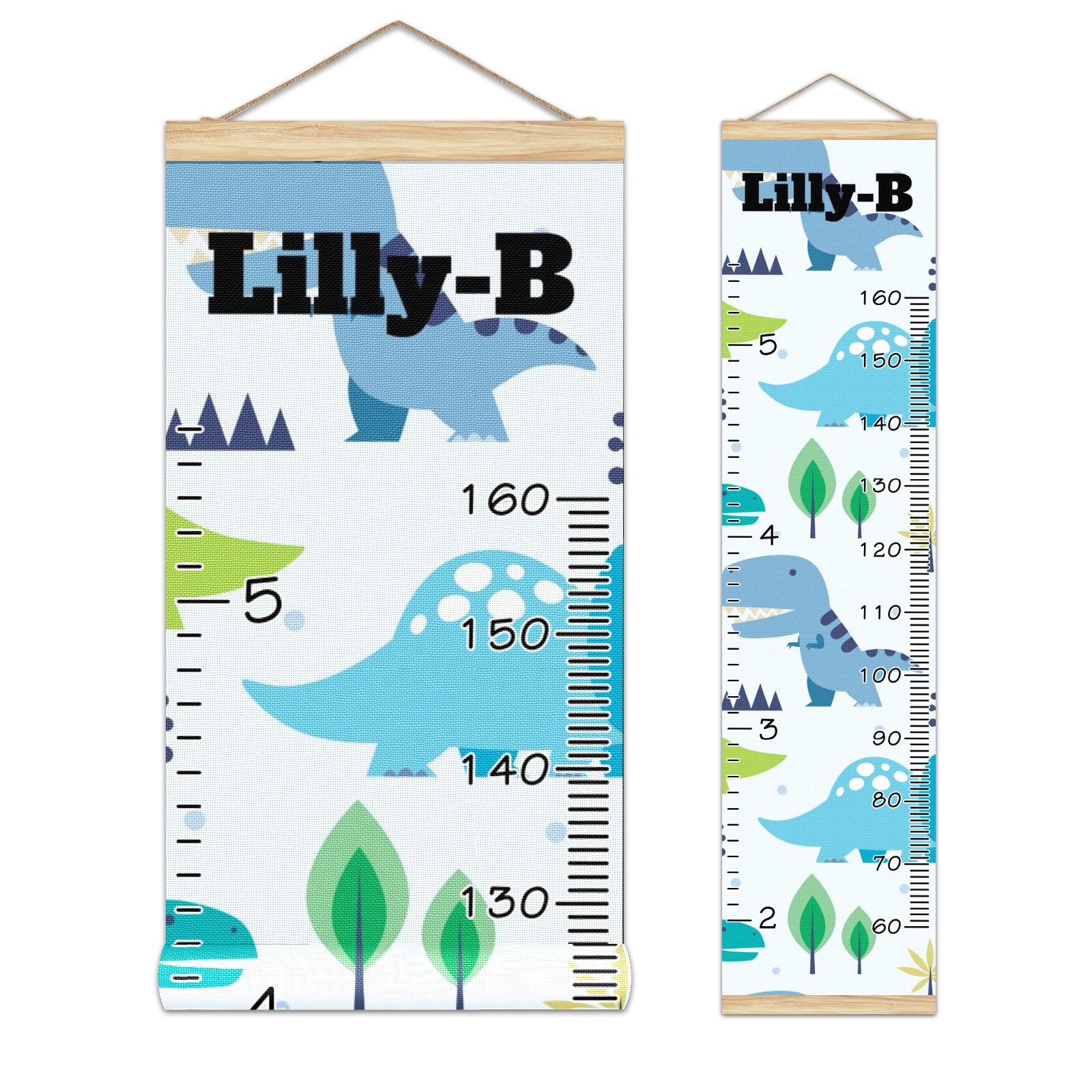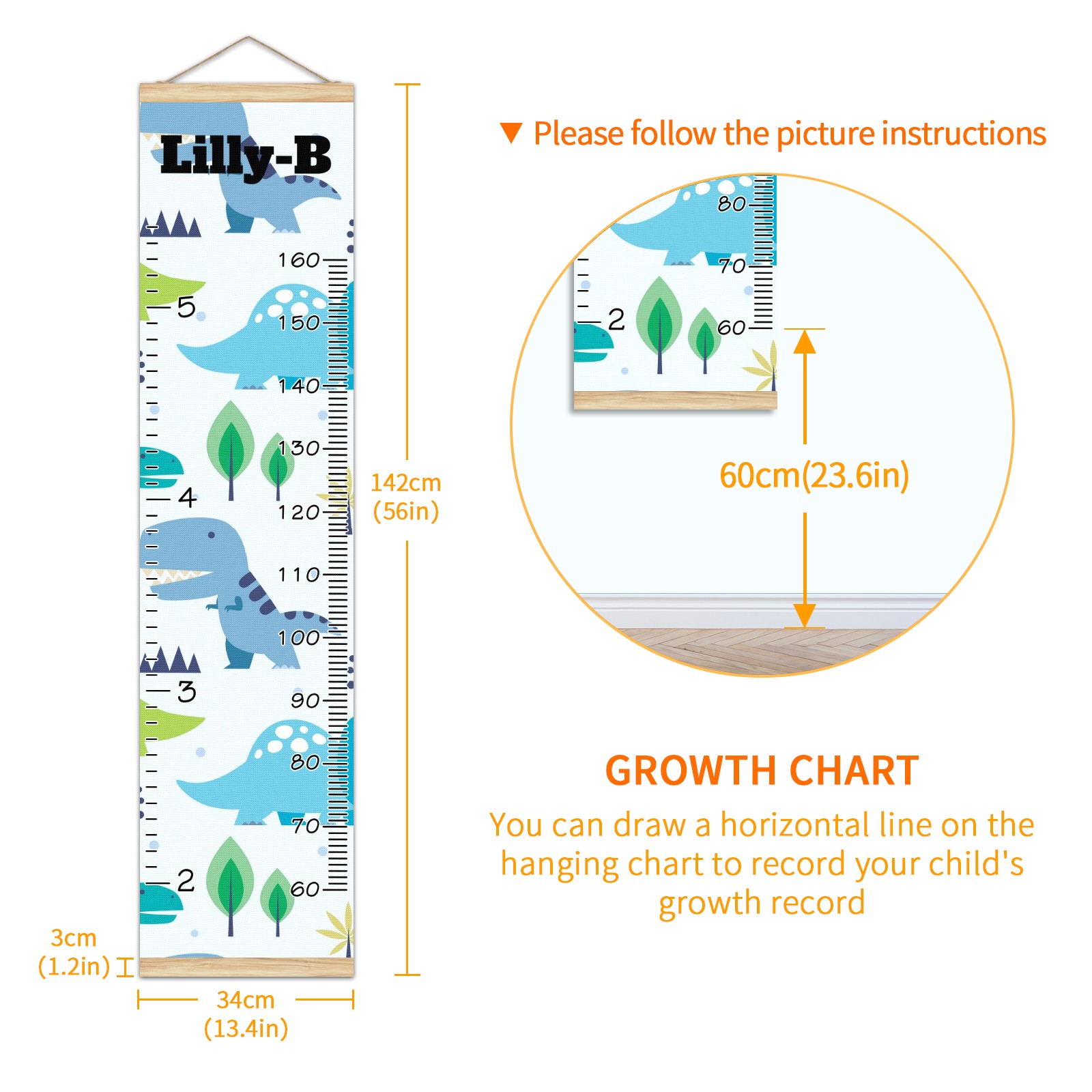 Personalized Kids Name Growth Chart Ruler for Wall Wood Frame Height Measure Chart 13.4x56 in Linen Hanging Height Growth Chart Cute Dinosaur3.25 Kids Room Decor