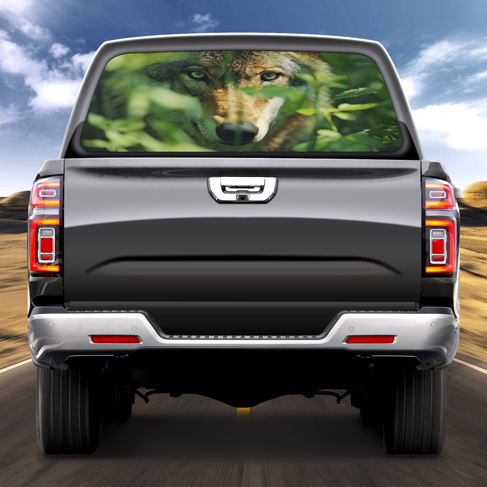 Truck Rear Window Graphic Decals Wolf Hunting (4) Pickup Car Window Stickers 66" x 22" Truck Back Window Perforated Vinyl Window Film Decal for Trucks SUV