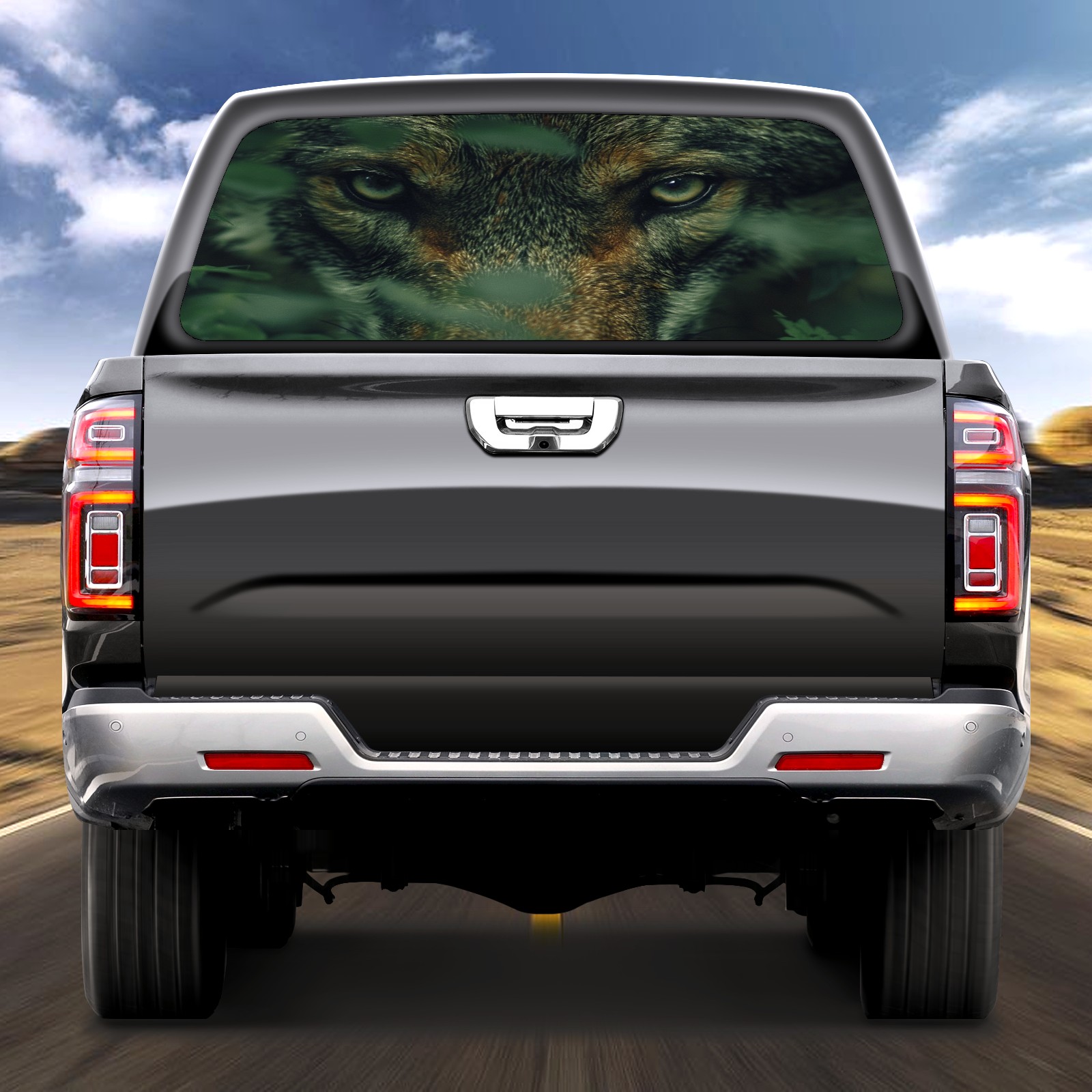 Truck Rear Window Graphic Decals Wolf Hunting (2) Pickup Car Window Stickers 66" x 22" Truck Back Window Perforated Vinyl Window Film Decal for Trucks SUV