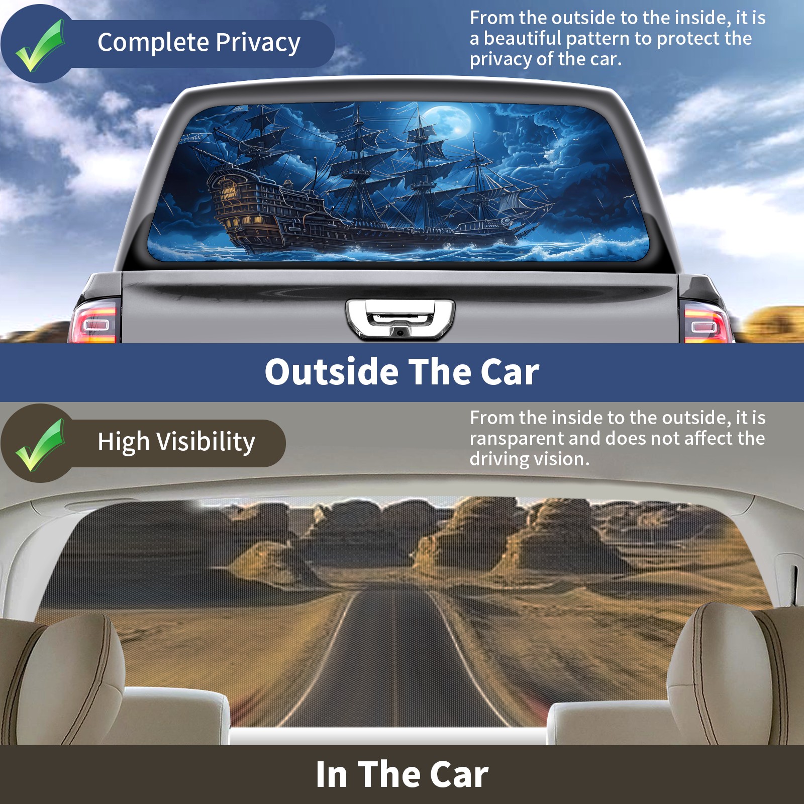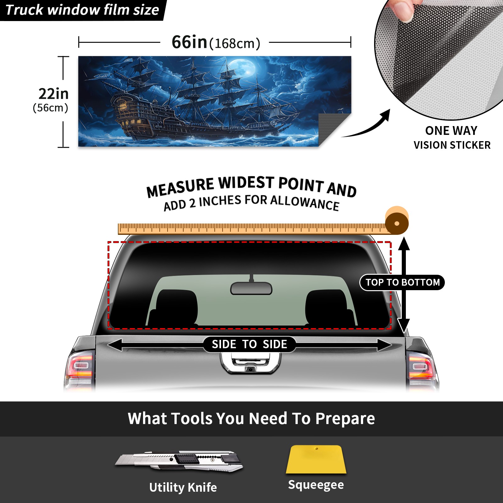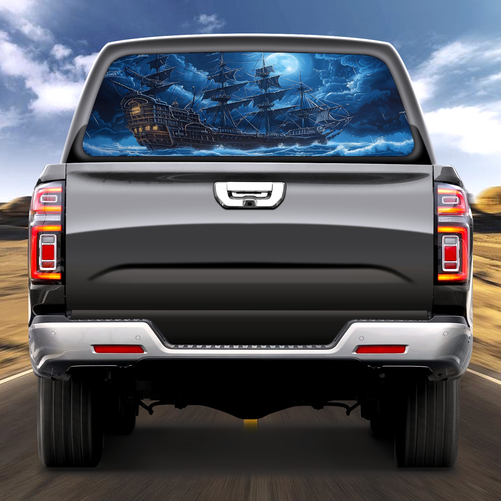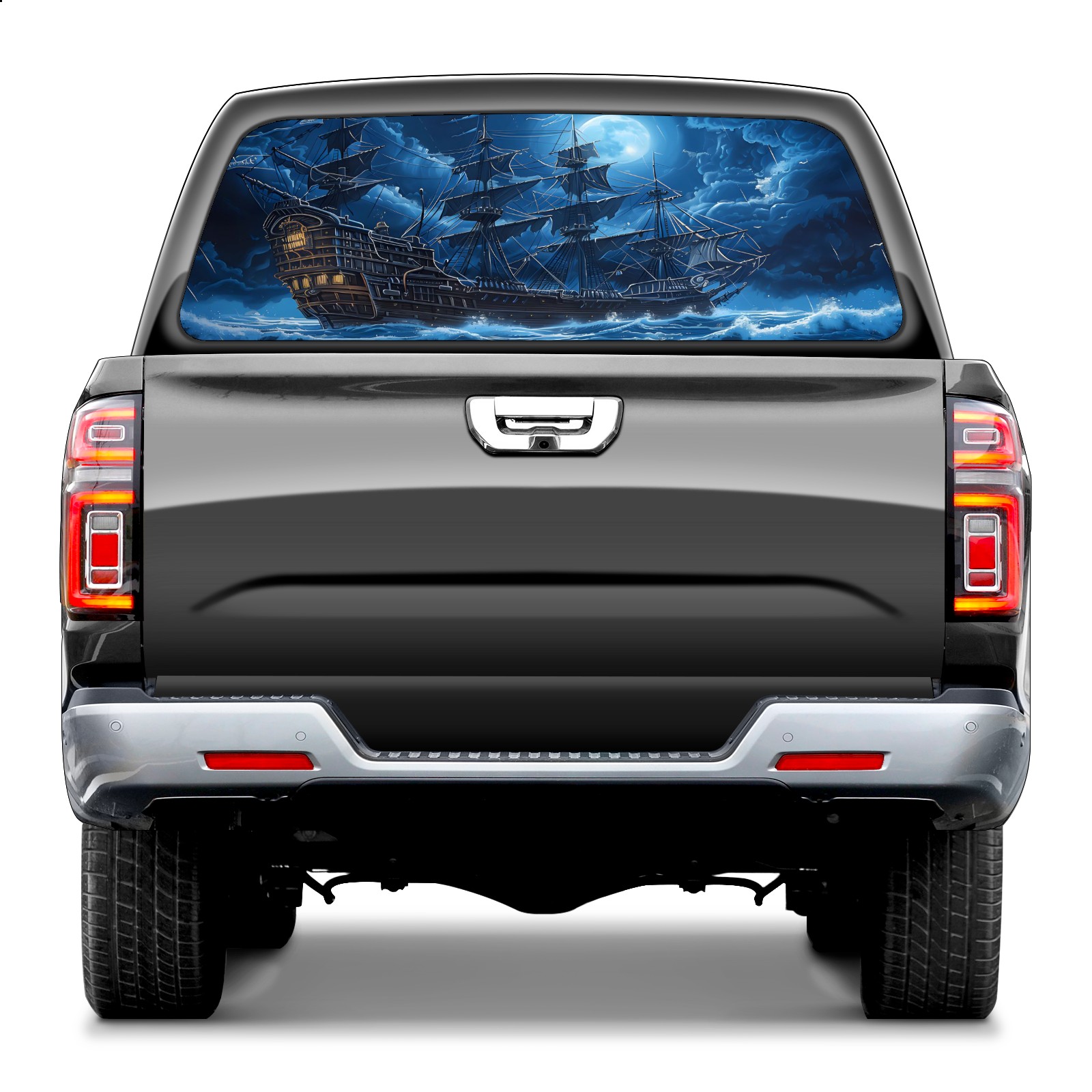 Truck Rear Window Graphic Decals Pirate Ship In Waves (1) Pickup Car Window Stickers 66" x 22" Truck Back Window Perforated Vinyl Window Film Decal for Trucks SUV