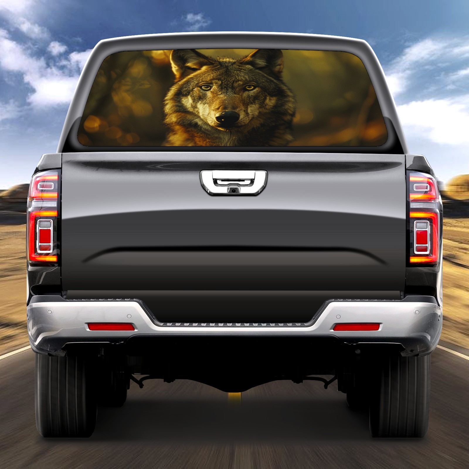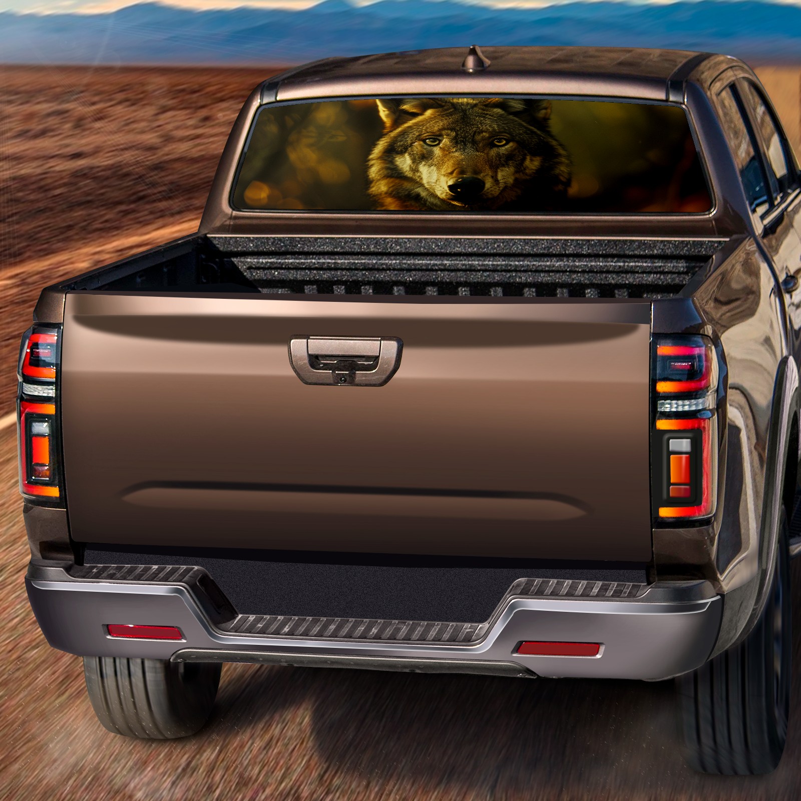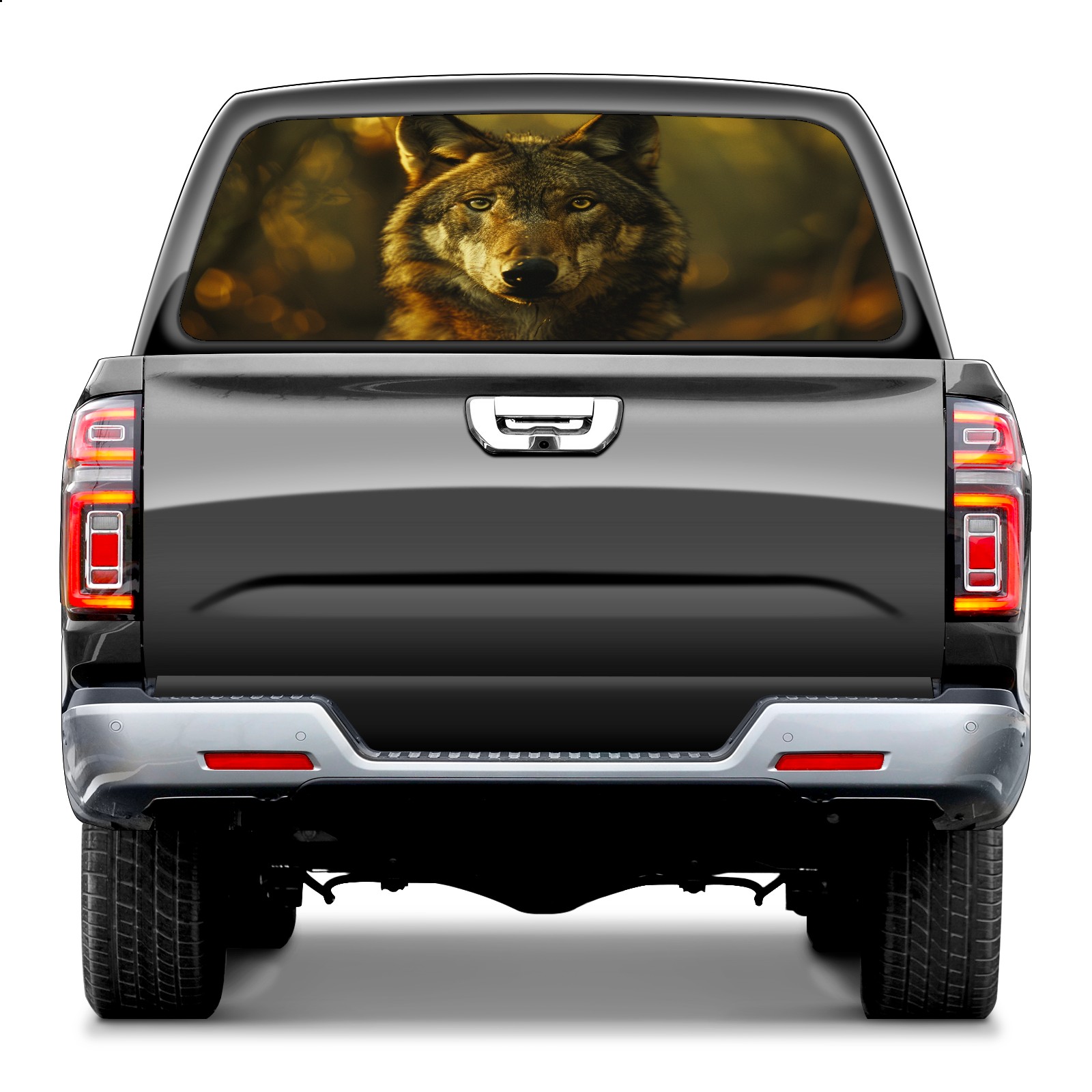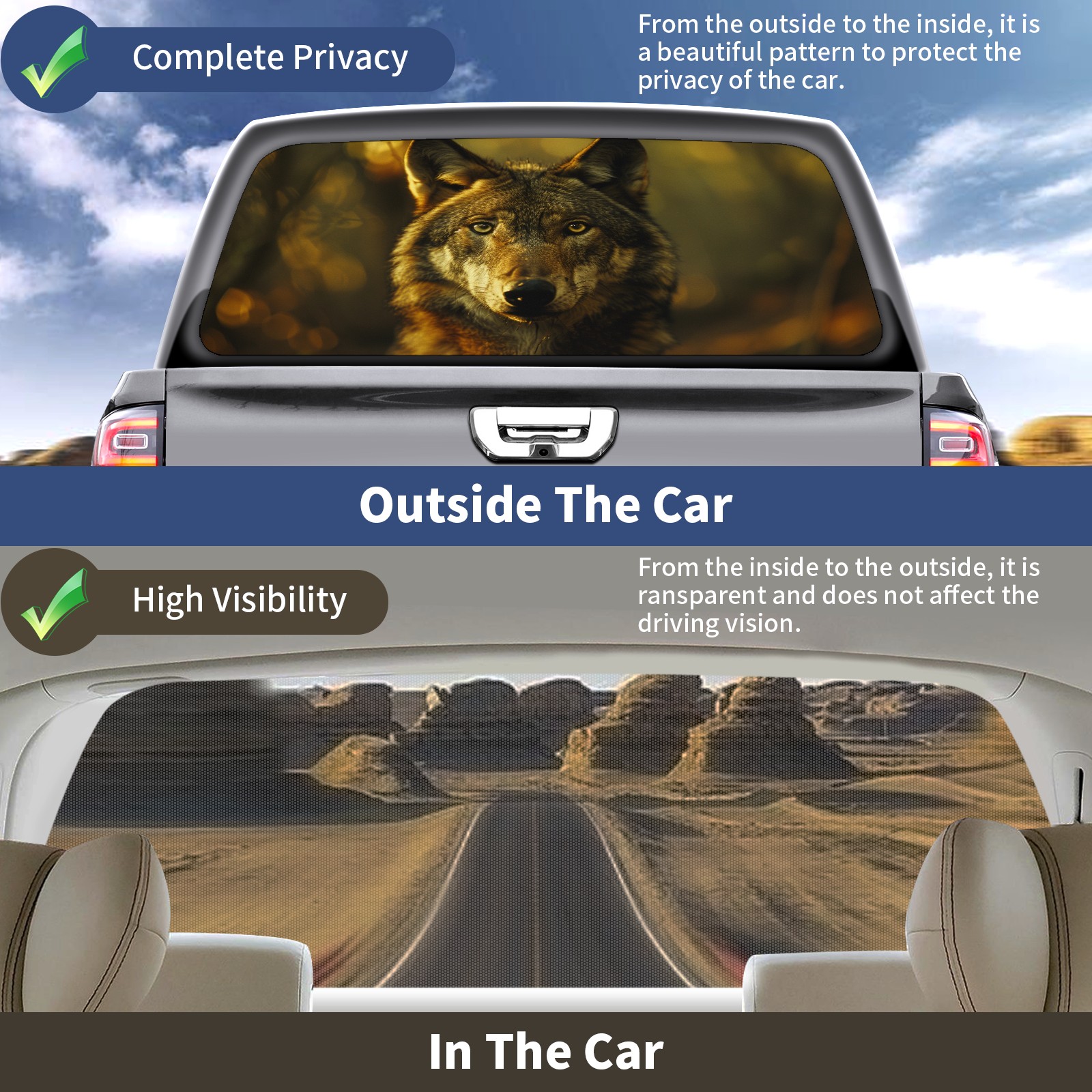 Truck Rear Window Graphic Decals Wolf At Night (4) Pickup Car Window Stickers 66" x 22" Truck Back Window Perforated Vinyl Window Film Decal for Trucks SUV