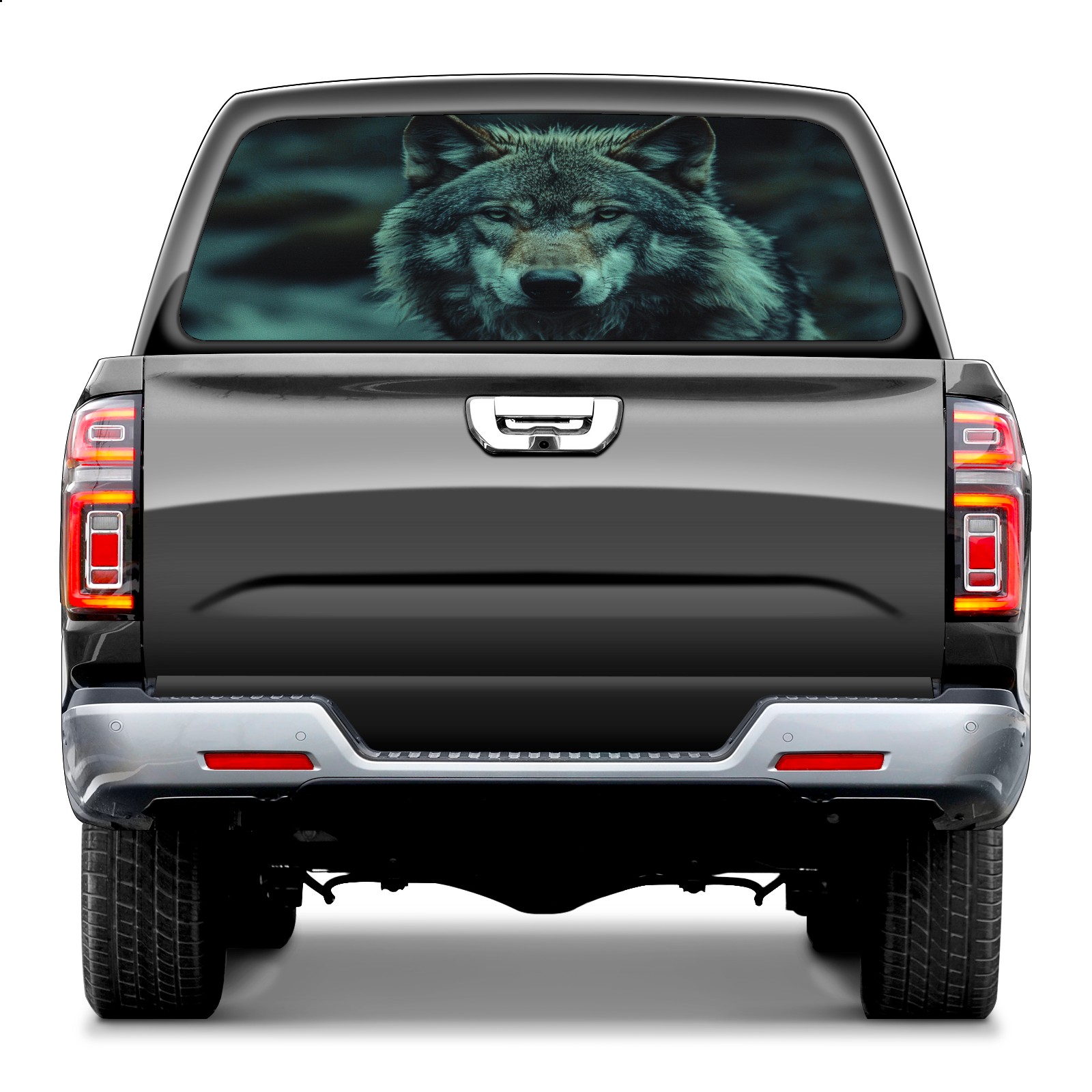 Truck Rear Window Graphic Decals Wolf At Night (1) Pickup Car Window Stickers 66" x 22" Truck Back Window Perforated Vinyl Window Film Decal for Trucks SUV