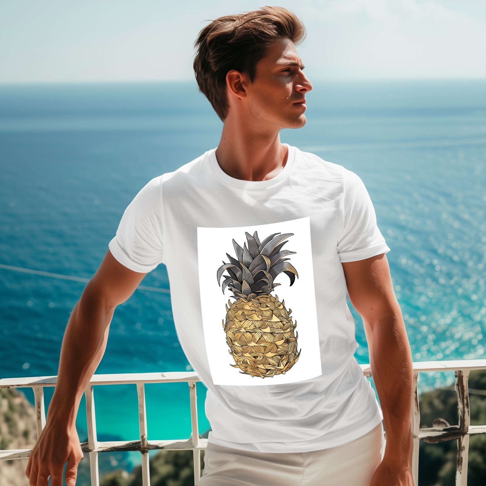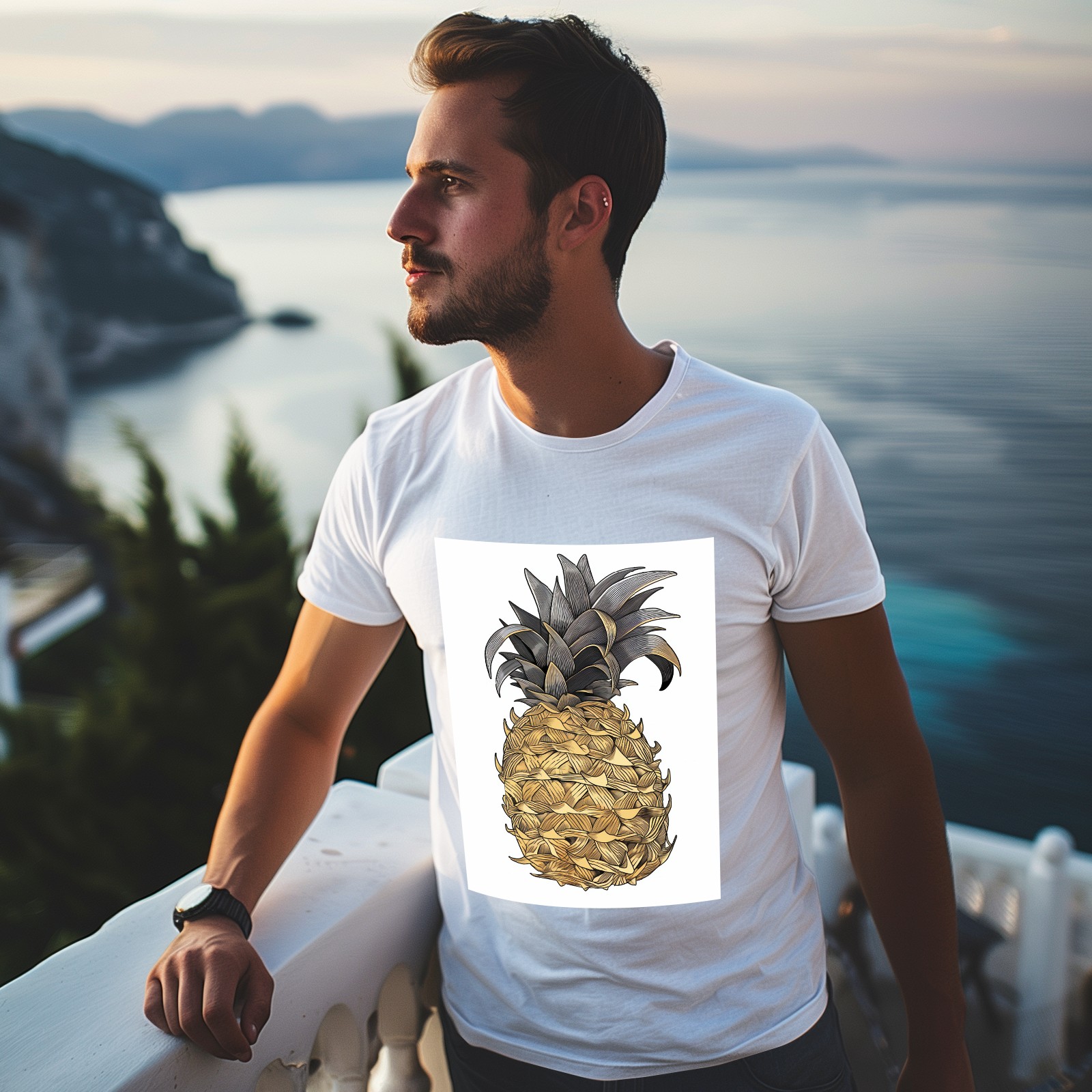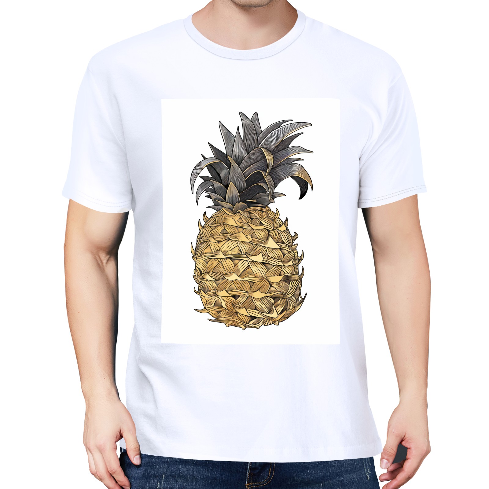 Men's Graphic TeePineapples Letter Print T-Shirts Round Neck Short Sleeves Sizes XS-5XL Summer Daily Casual Tops