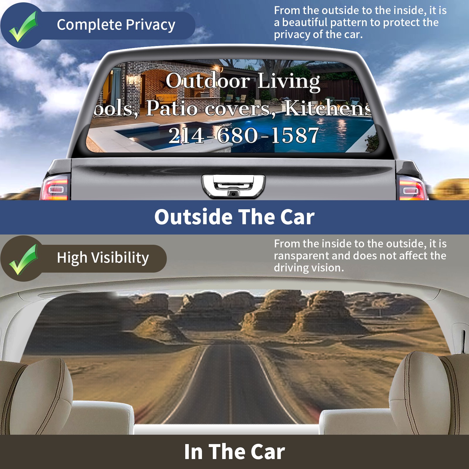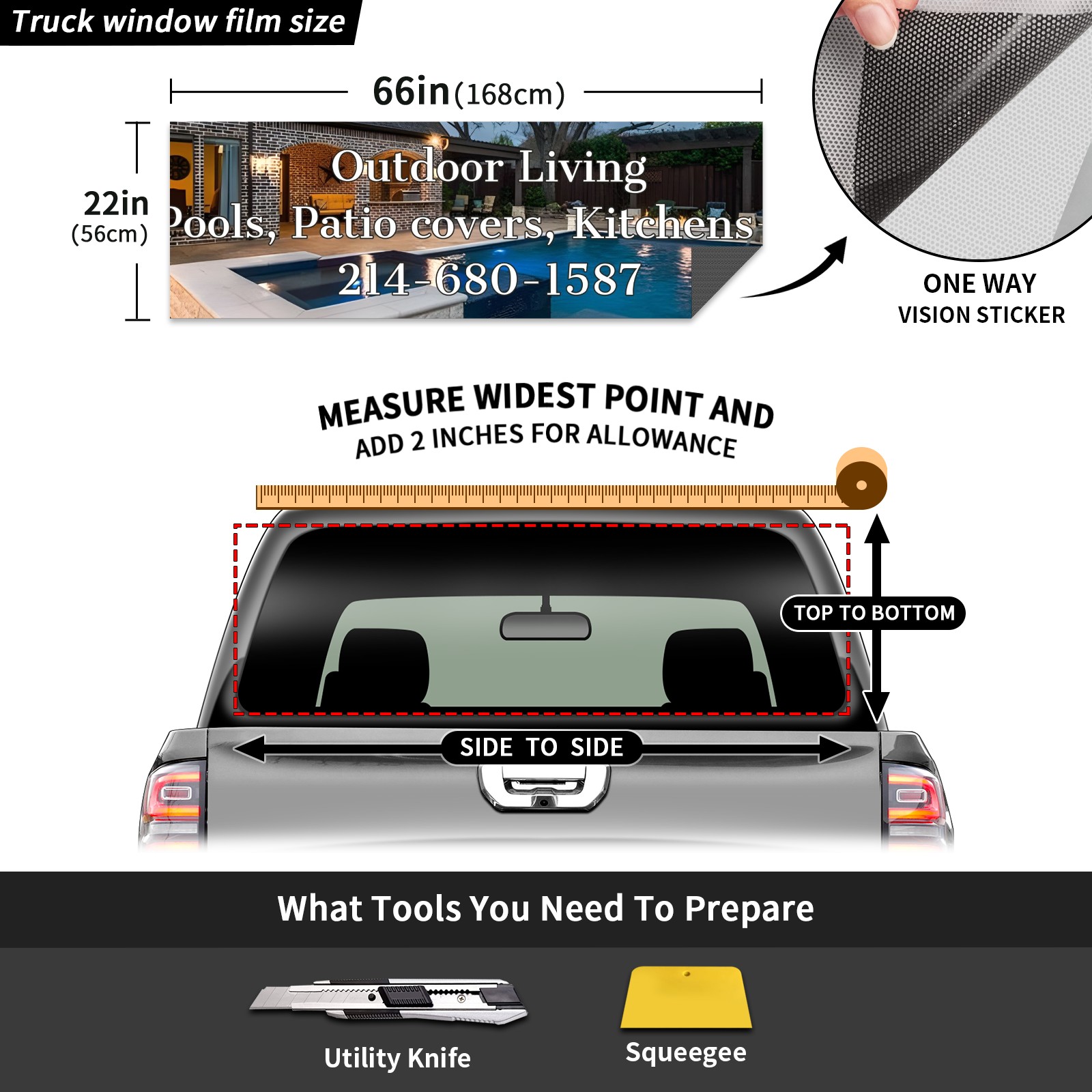 55x15inch Custom Rear Window Graphic Decals for Trucks Personalized Pickup Car Window Stickers 66" x 22" Truck Back Window Perforated Vinyl Window Film Decal Design Your Own Back Window Graphic