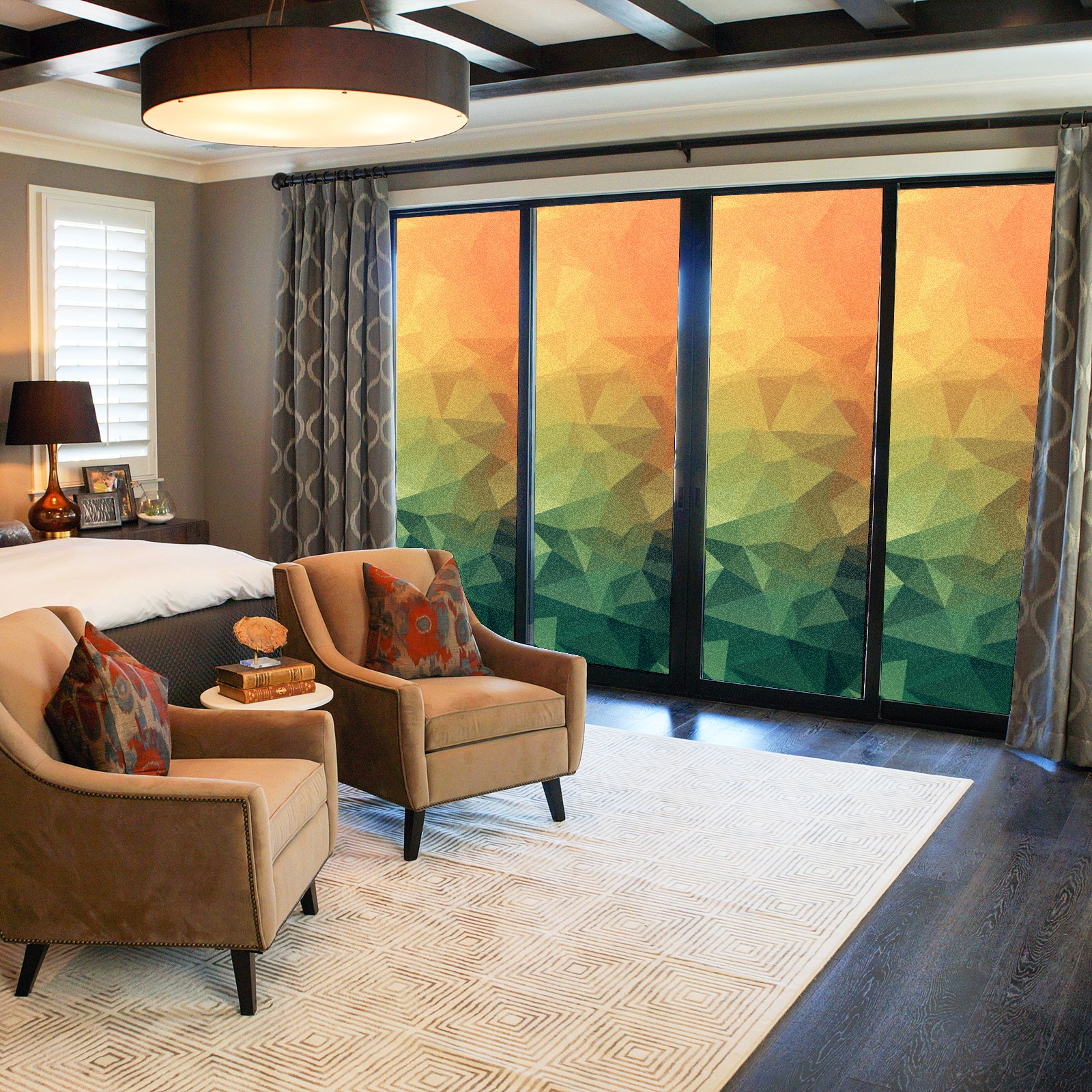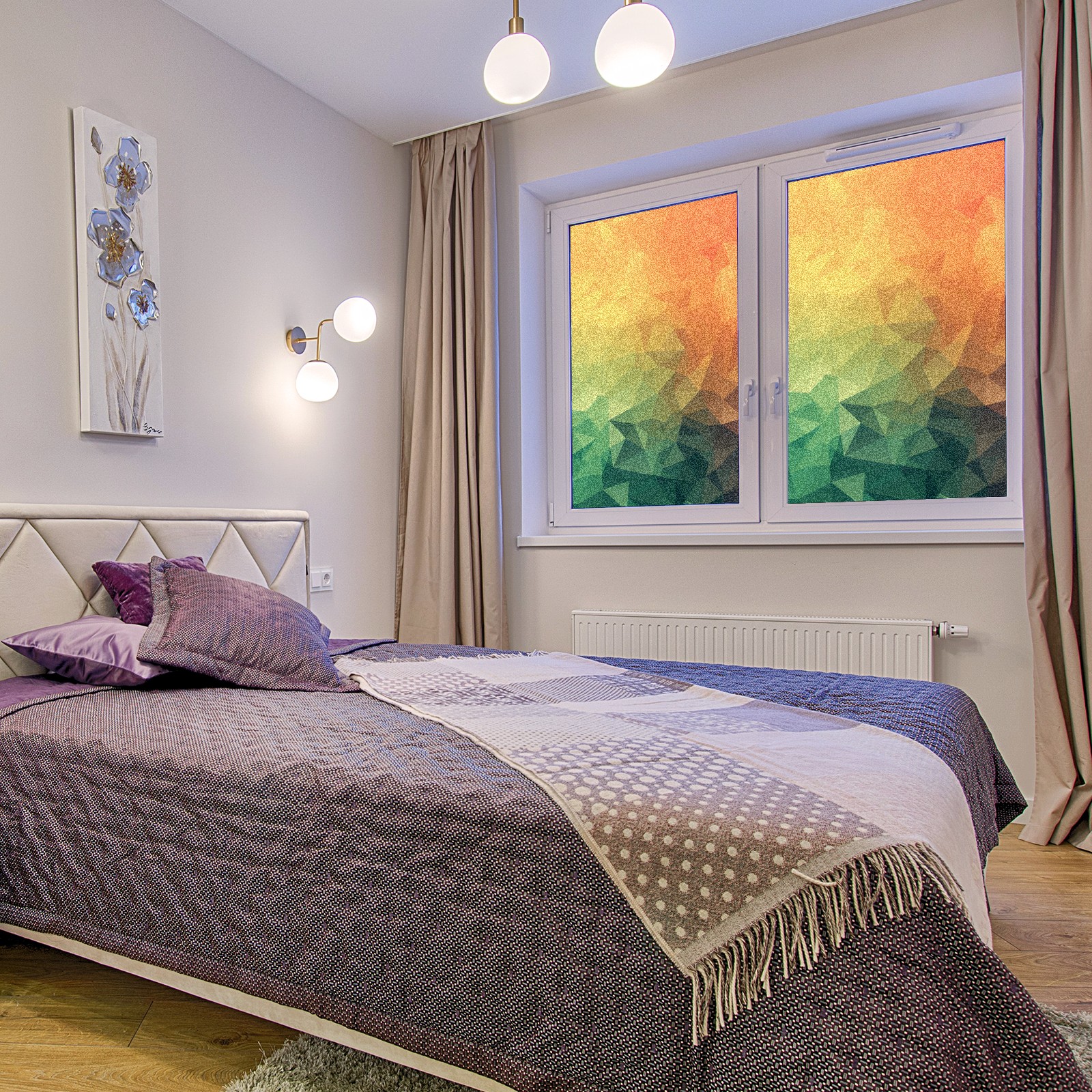 Our privacy window film offers customers a wide range of styles and sizes, with product applications ranging from classic frosted window film to colourful stained glass sticker designs to bring a certain sense of security to your home. This product is suitable for bedroom full blackout window film, living room elegant colourful decorative window film, bathroom functional frosted window film. Simple and convenient installation, non-adhesive type can be removed and cleaned.