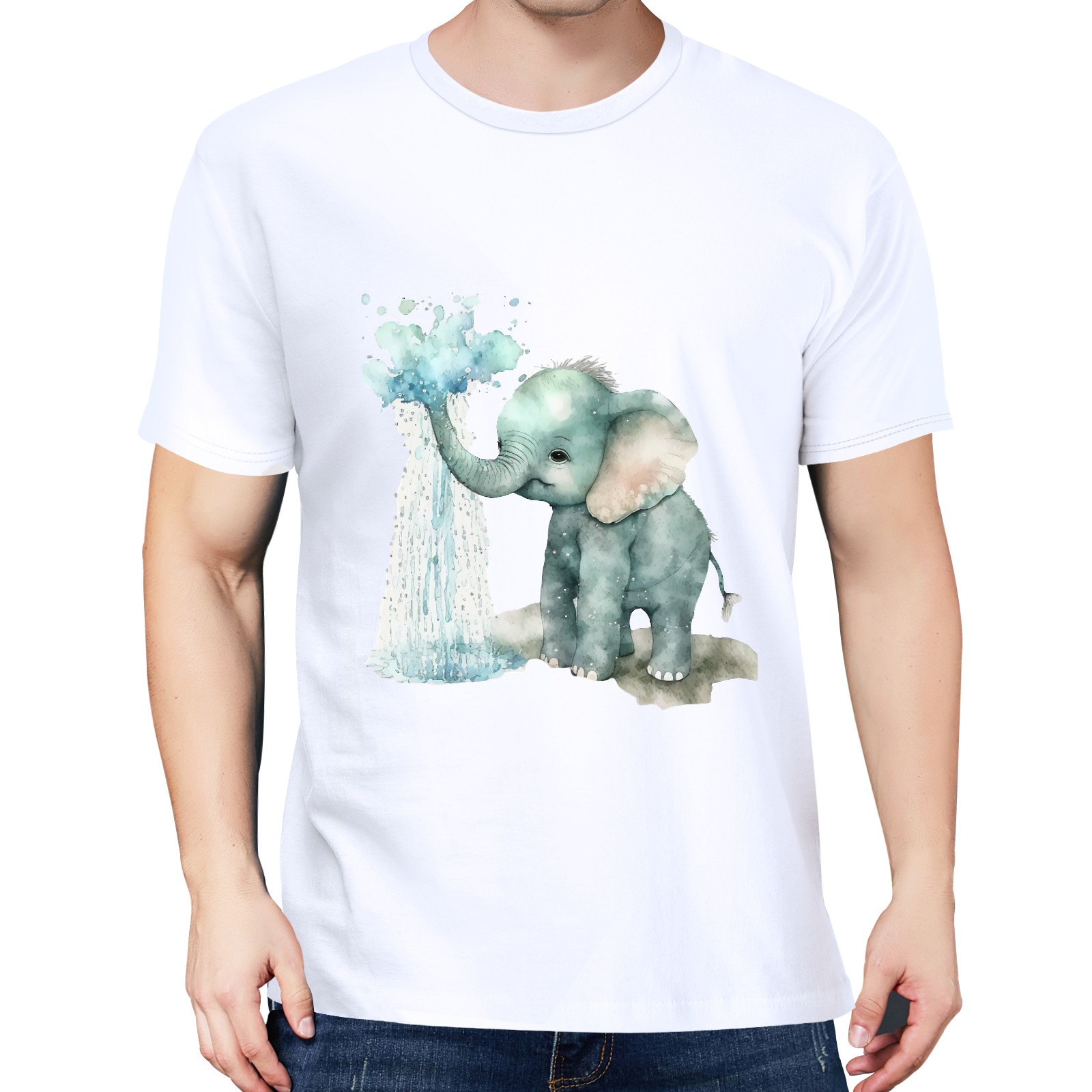 Men's Graphic TeeWatercolor Elephant (7) Letter Print T-Shirts Round Neck Short Sleeves Sizes XS-5XL Summer Daily Casual Tops