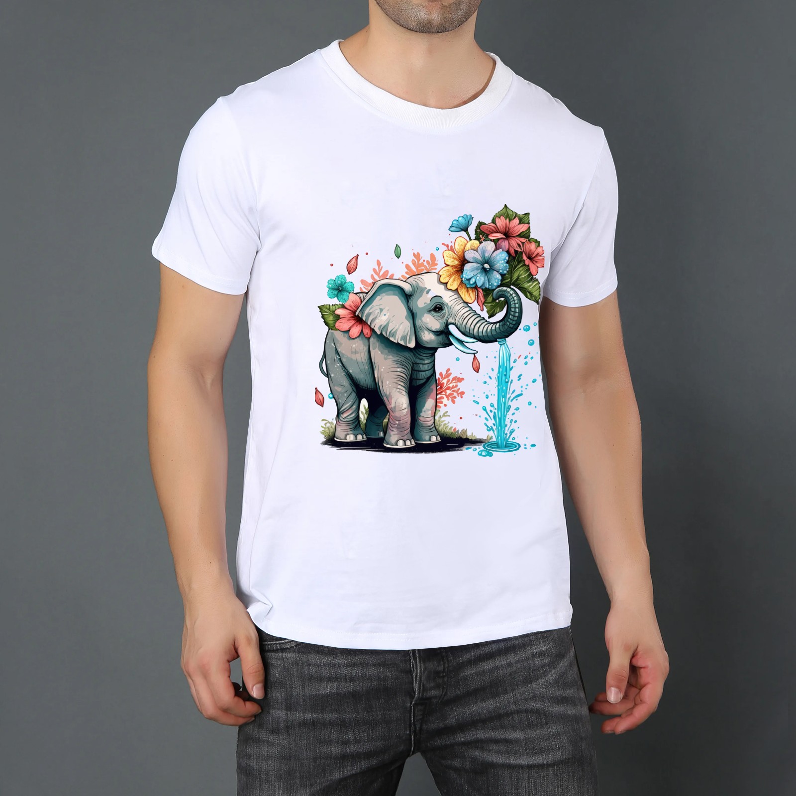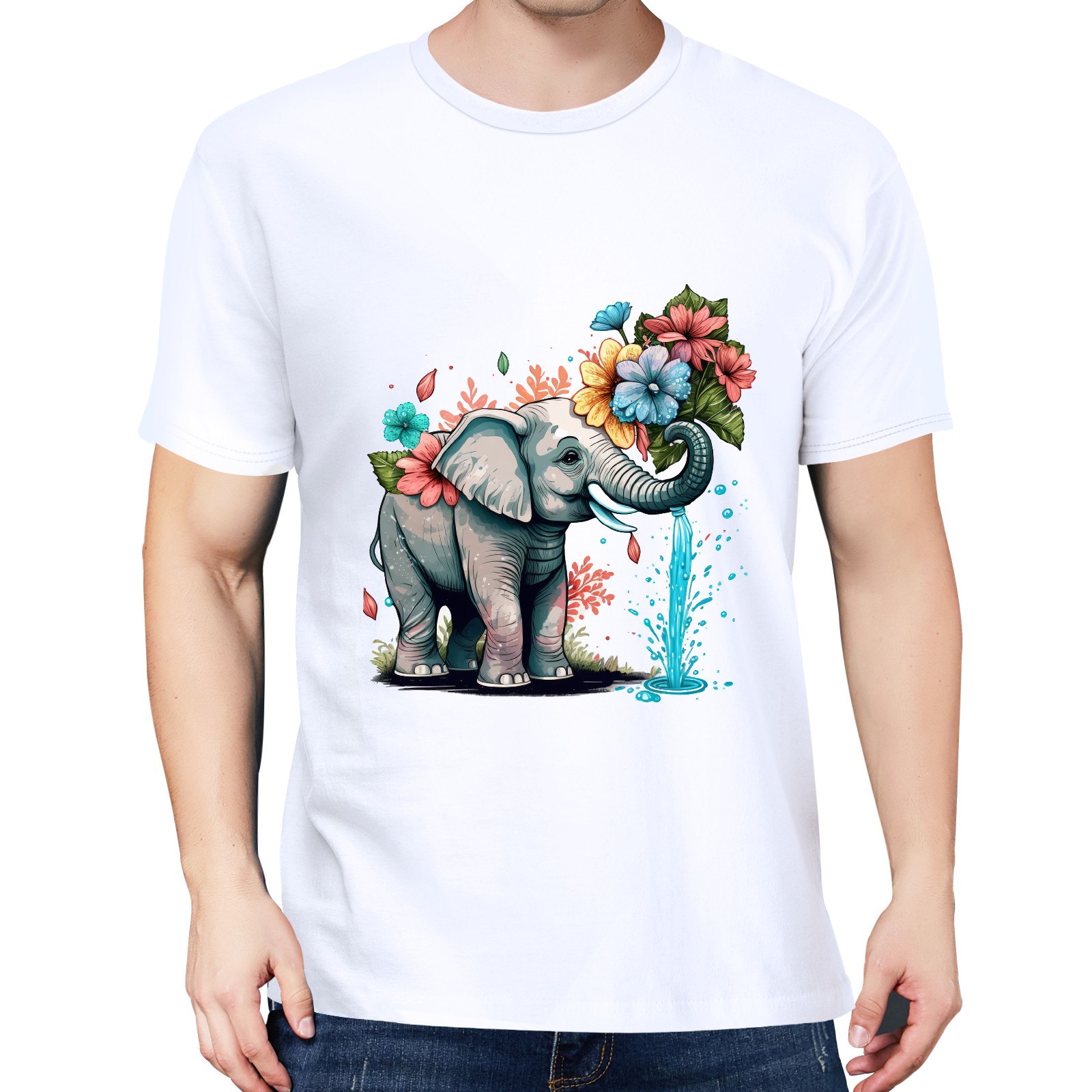 Men's Graphic TeeWatercolor Elephant (2) Letter Print T-Shirts Round Neck Short Sleeves Sizes XS-5XL Summer Daily Casual Tops