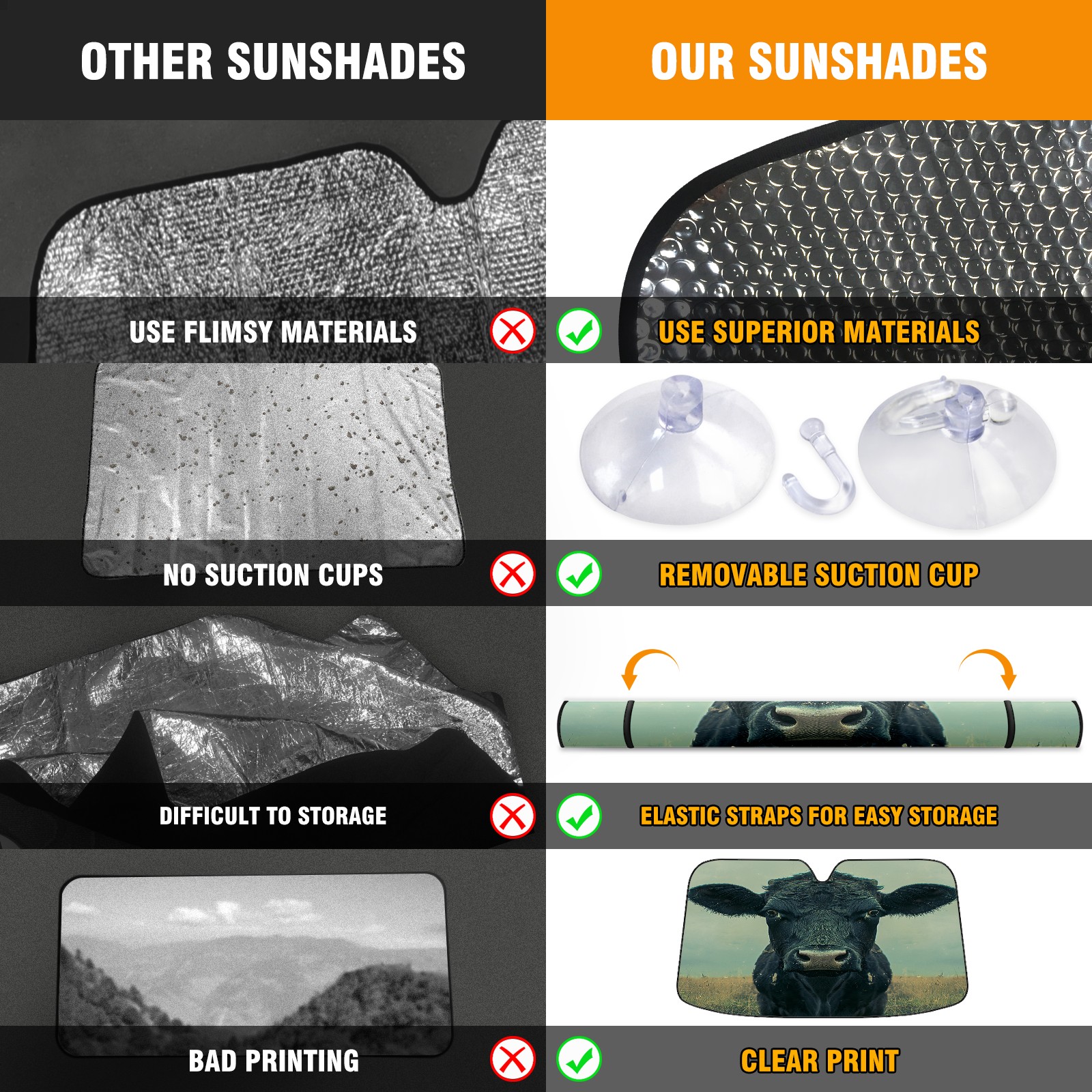 Windshield Sun Shade for Car 55''x30'' Black Cow Auto Sun Visor Blocks UV Rays Car Front Window Shade, Sunshade for Car Windshield Truck SUV Sun Heat Protection