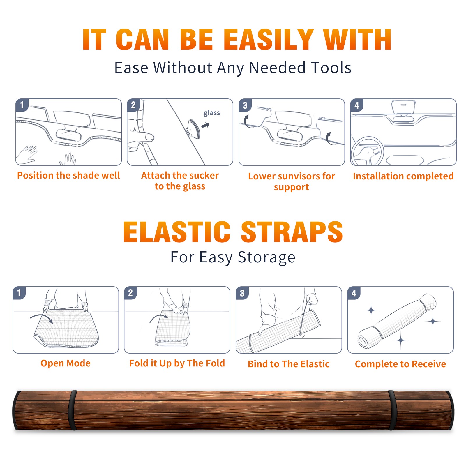 Windshield Sun Shade for Car 55''x30'' Vintage Rustic Wood Auto Sun Visor Blocks UV Rays Car Front Window Shade, Sunshade for Car Windshield Truck SUV Sun Heat Protection
