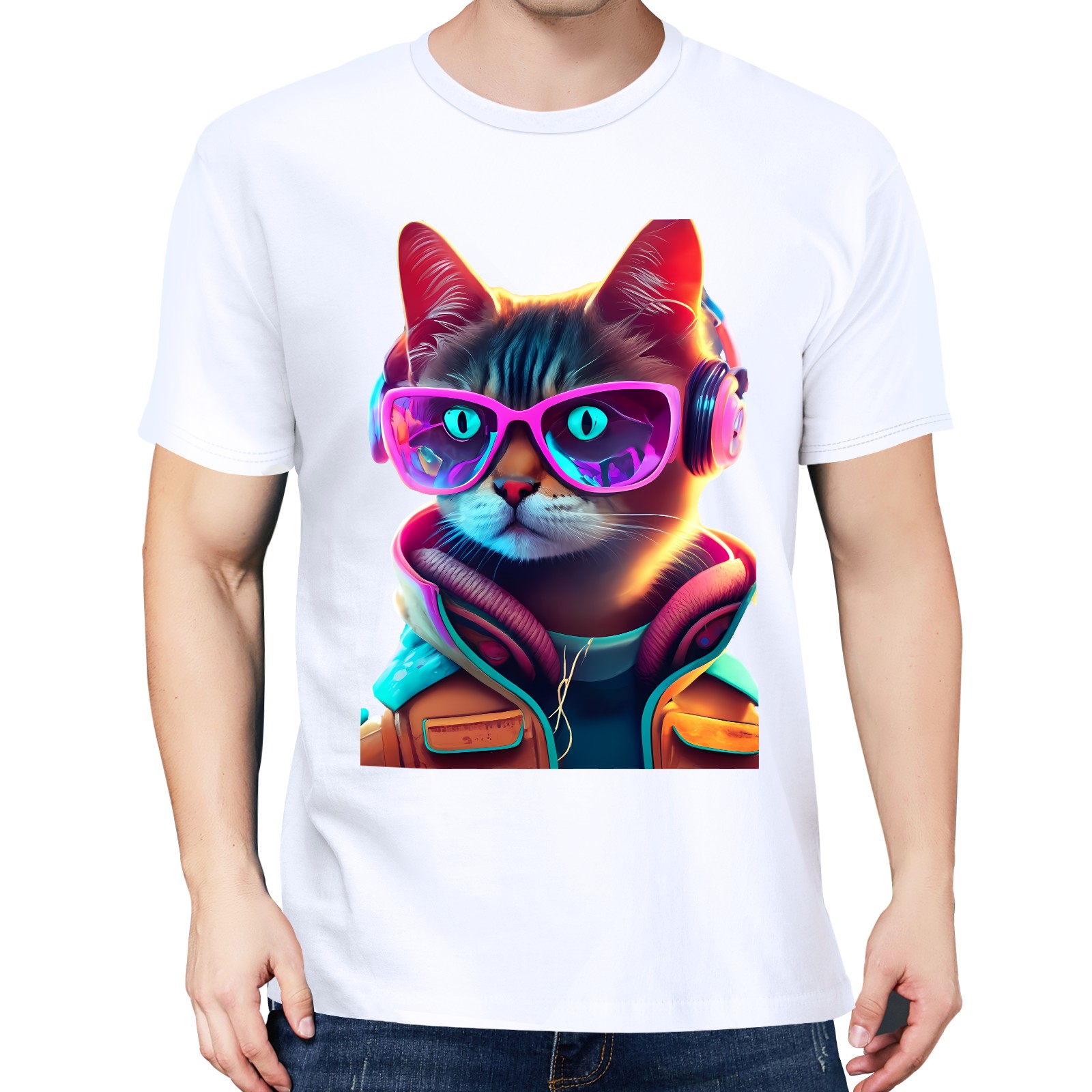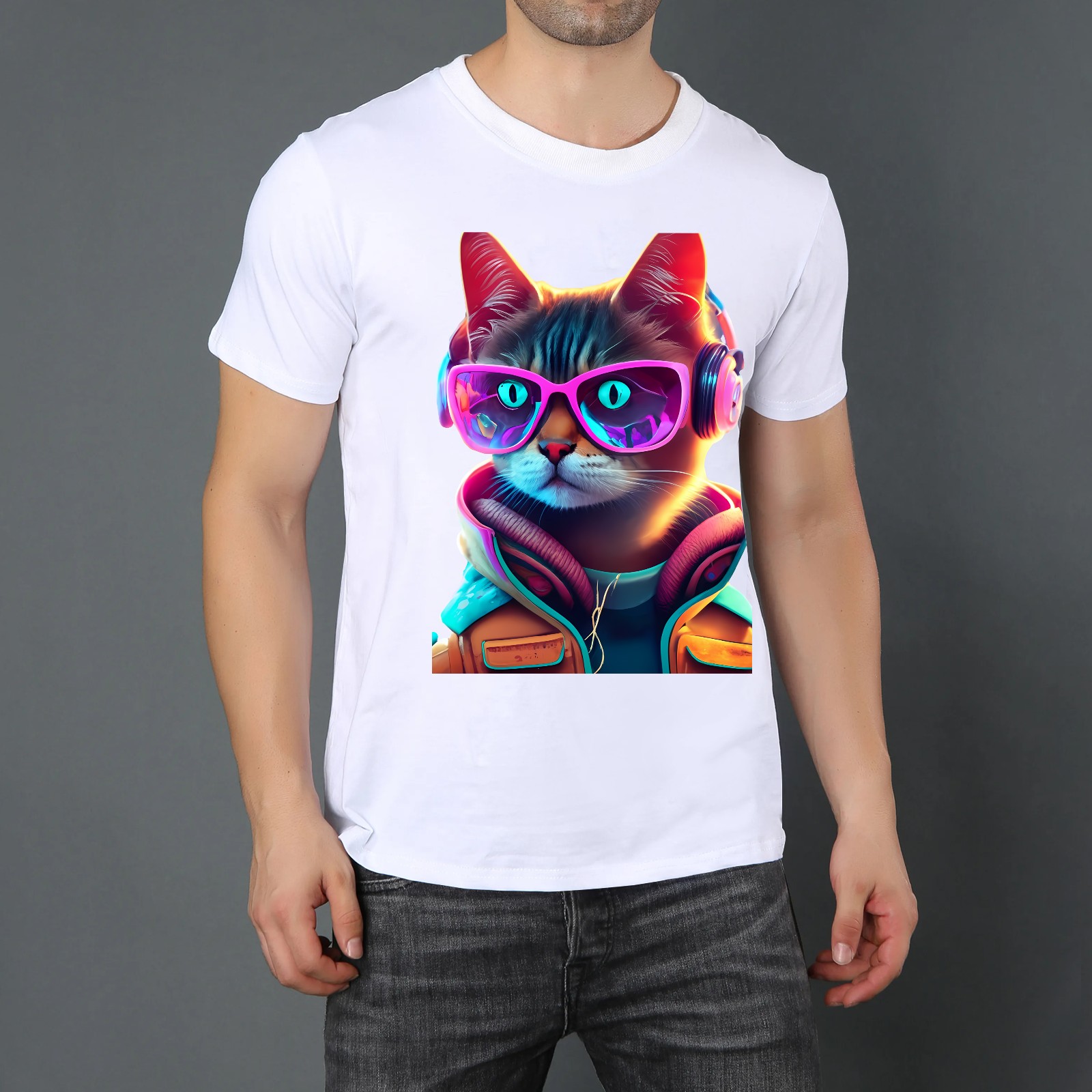 Men's Graphic TeeCat Letter Print T-Shirts Round Neck Short Sleeves Sizes XS-5XL Summer Daily Casual Tops