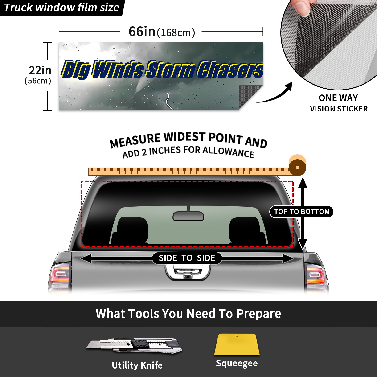 <p><strong>Truck Rear Window Graphics Decals Pickup Trucks Back Window Film Stickers 66" x 22" Perforated Vinyl Wrap Stickers Decorations for Car Rear Window</strong></p><p><strong><br /></strong></p><p><strong>Features :</strong></p><p>- Size of the rear window decals for trucks is 66x22 Inches (168x56cm).</p><p>- High quality perforated vinyl window film, one way vision sticker.</p><p>- Perforated is see through from the inside but not from outside.</p><p>- Clear printing, waterproof and durable.</p><p>- The car back window graphics stickers fits most truck and makes your vehicle more beautiful.&nbsp;</p><p><br /></p><p><strong>【Installation Instructions】</strong></p><p><strong>1. CLEAN SURFACE -</strong> Clean the rear window thoroughly and make sure the surface clean.</p><p><strong>2. STICK THE DECALS -</strong> Tear off the paper on the back and stick the decal on the window.</p><p><strong>3. SCRAPE OFF AIR BUBBLES -</strong> Use a squeegee or other card to scrape off the excess air bubbles.</p><p><strong>4. TRIM THE EXCESS -</strong> Use a knife to cut off the excess stickers of the window, finally complete.</p><p><br /></p><p>1. Please measure the size before purchasing, back window graphics decal for truck can be cut to your desired size.</p><p>2.The graphics stickers for truck back window is a great gift for yourself also can as a birthday / halloween / christmas gift for your friends and family.</p>