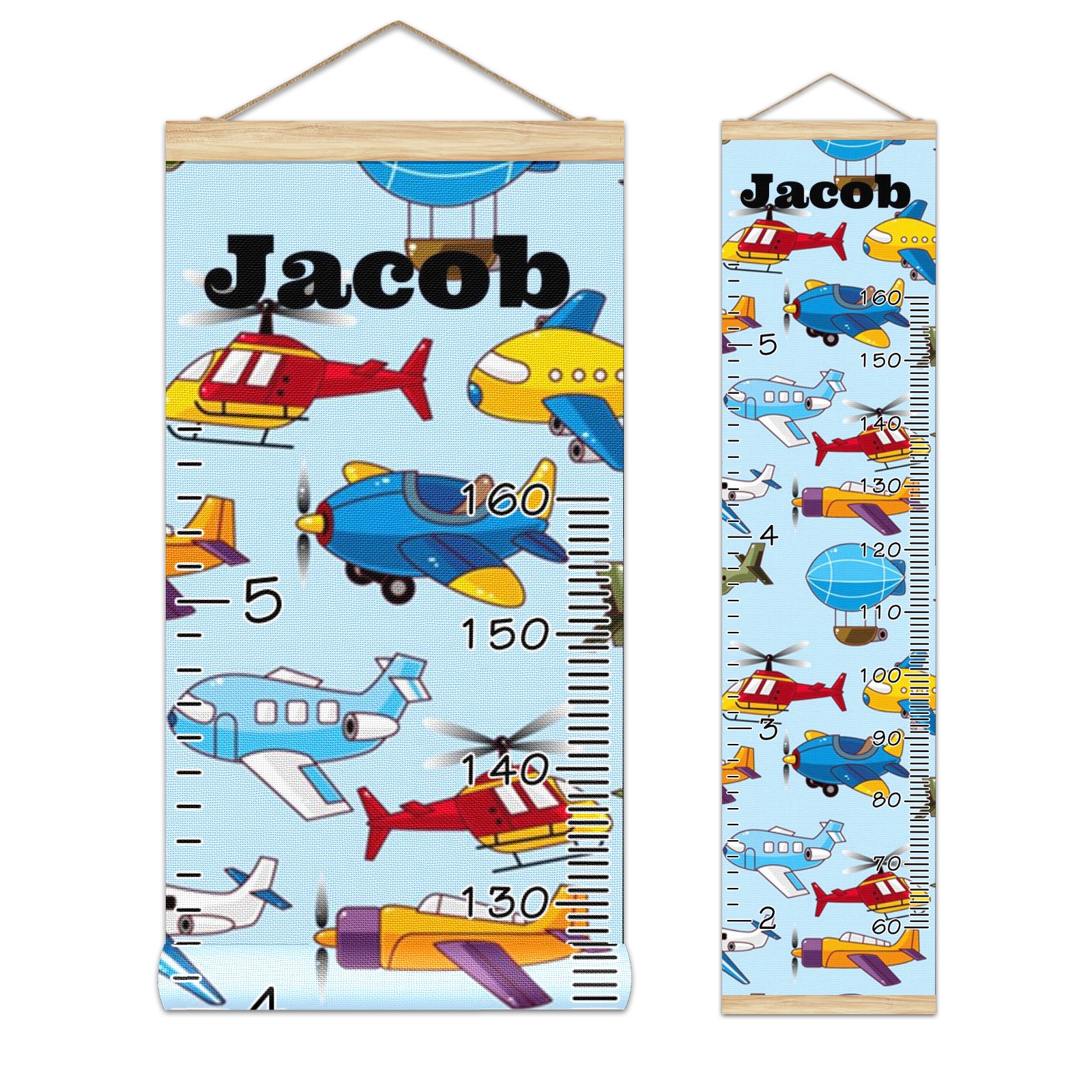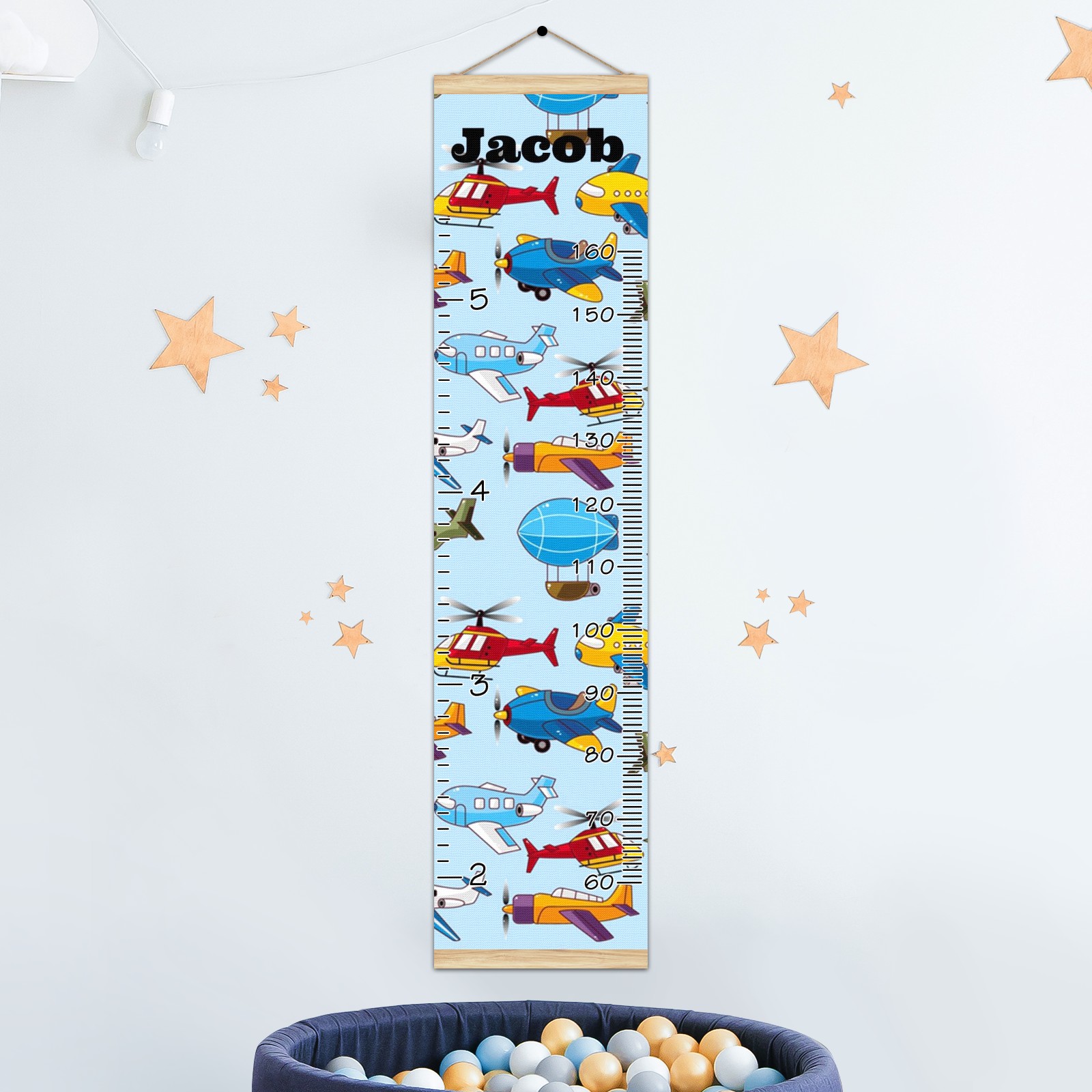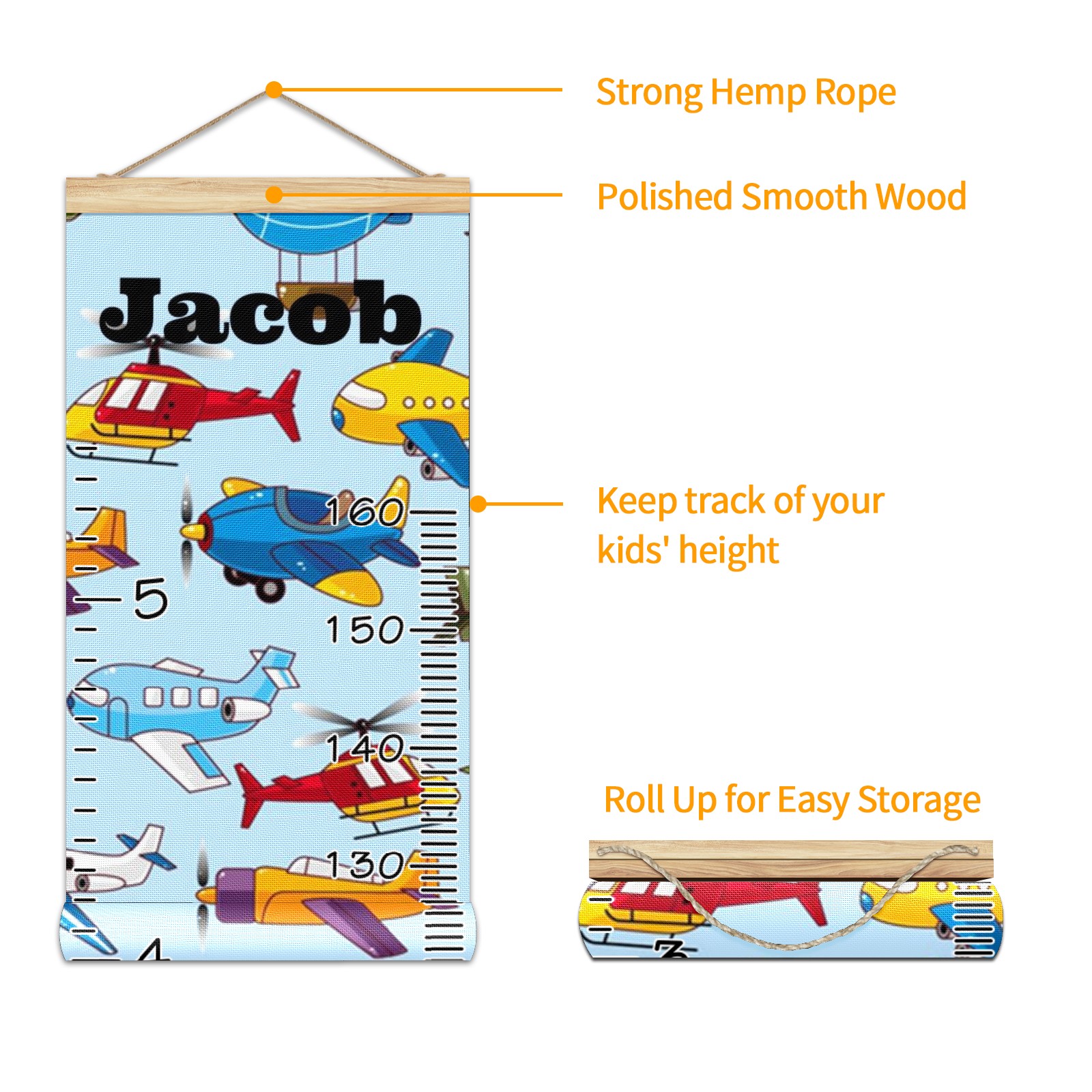 Personalized Kids Name Growth Chart Ruler for Wall Wood Frame Height Measure Chart 13.4x56 in Linen Hanging Height Growth Chart Cartoon Airplane Aircraft3.27 Kids Room Decor