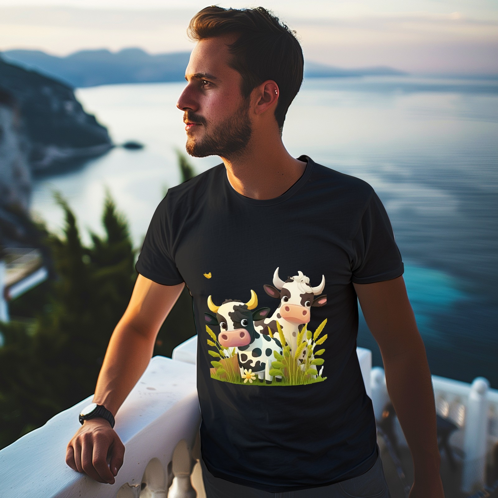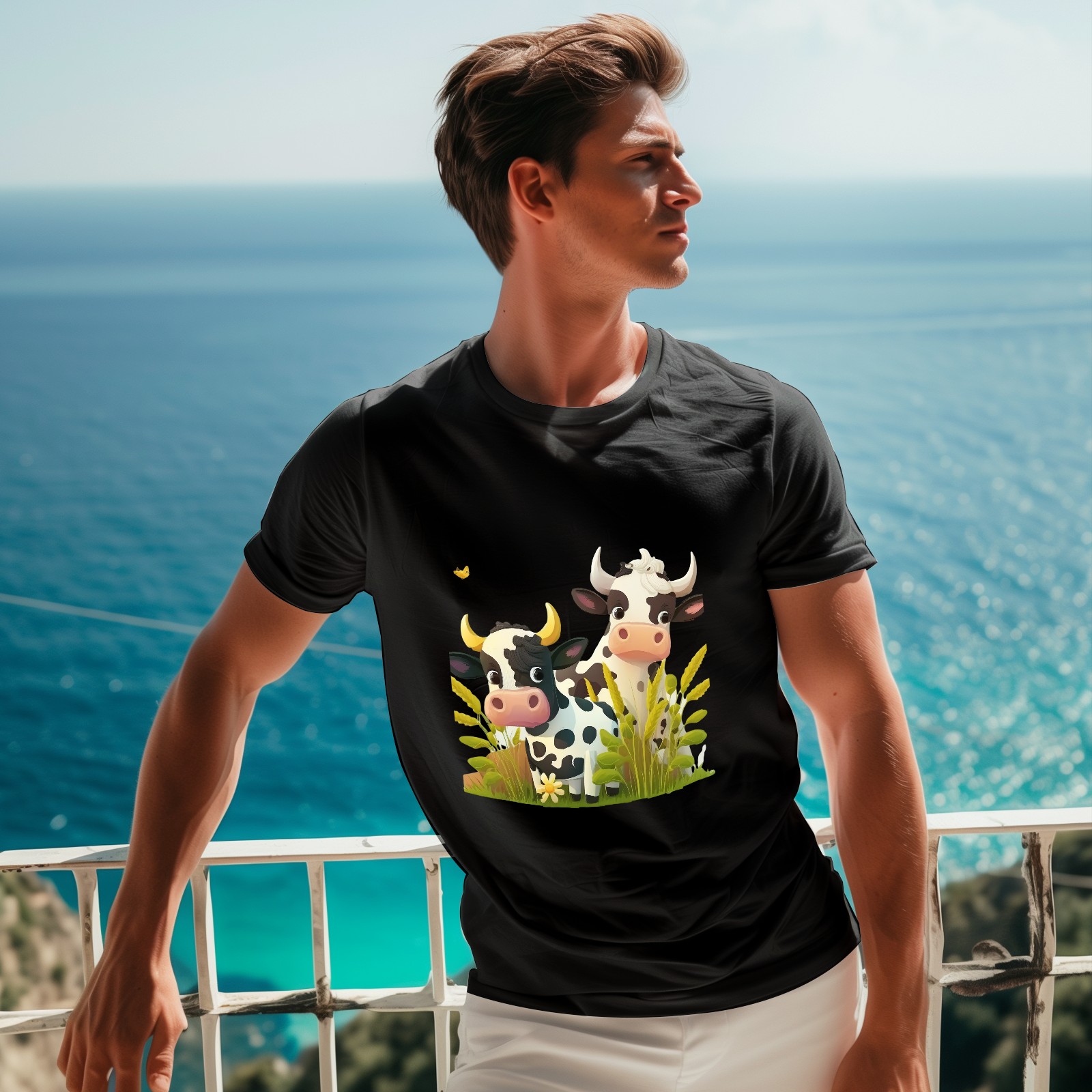 Men's Graphic TeeCow (32) Letter Print T-Shirts Round Neck Short Sleeves Sizes XS-5XL Summer Daily Casual Tops