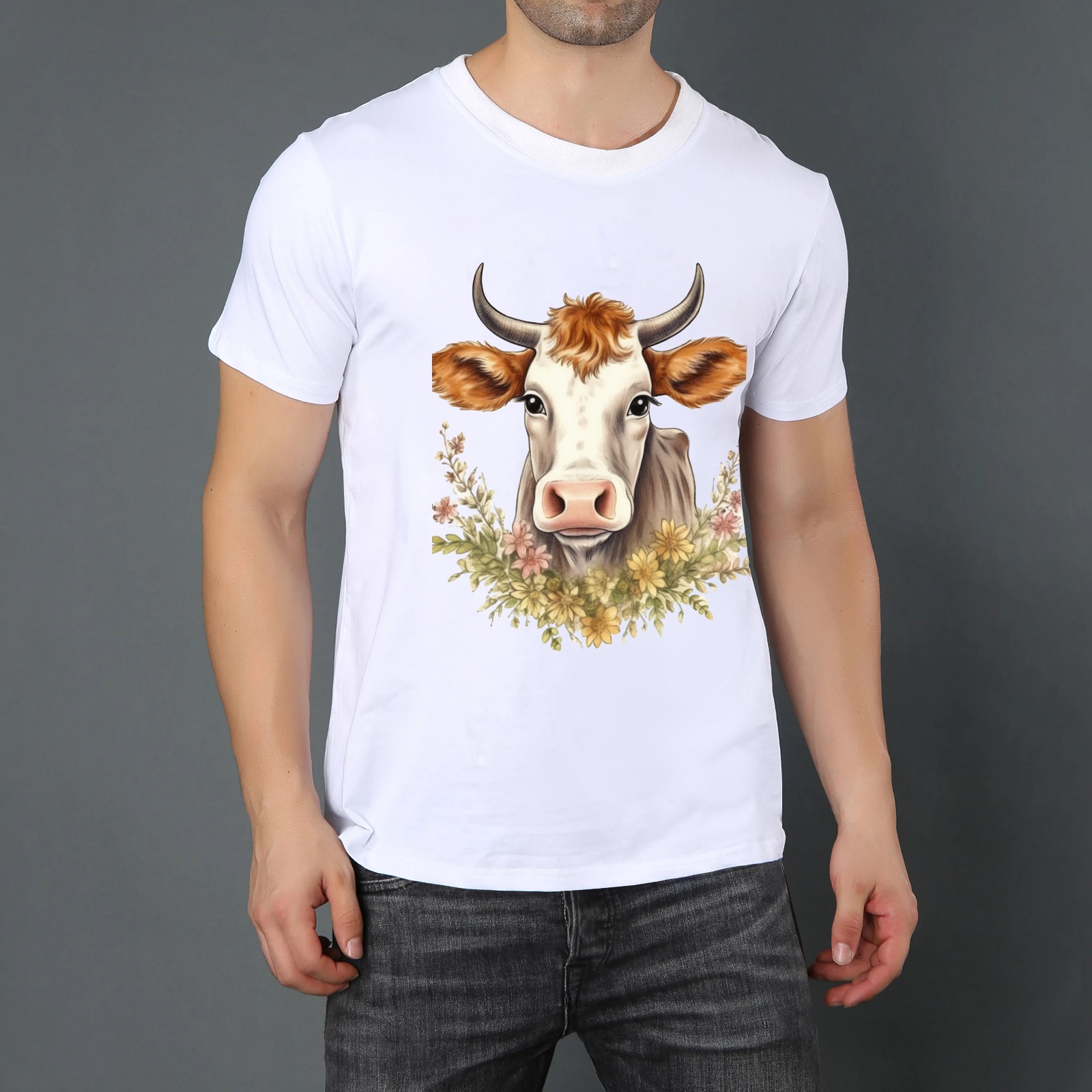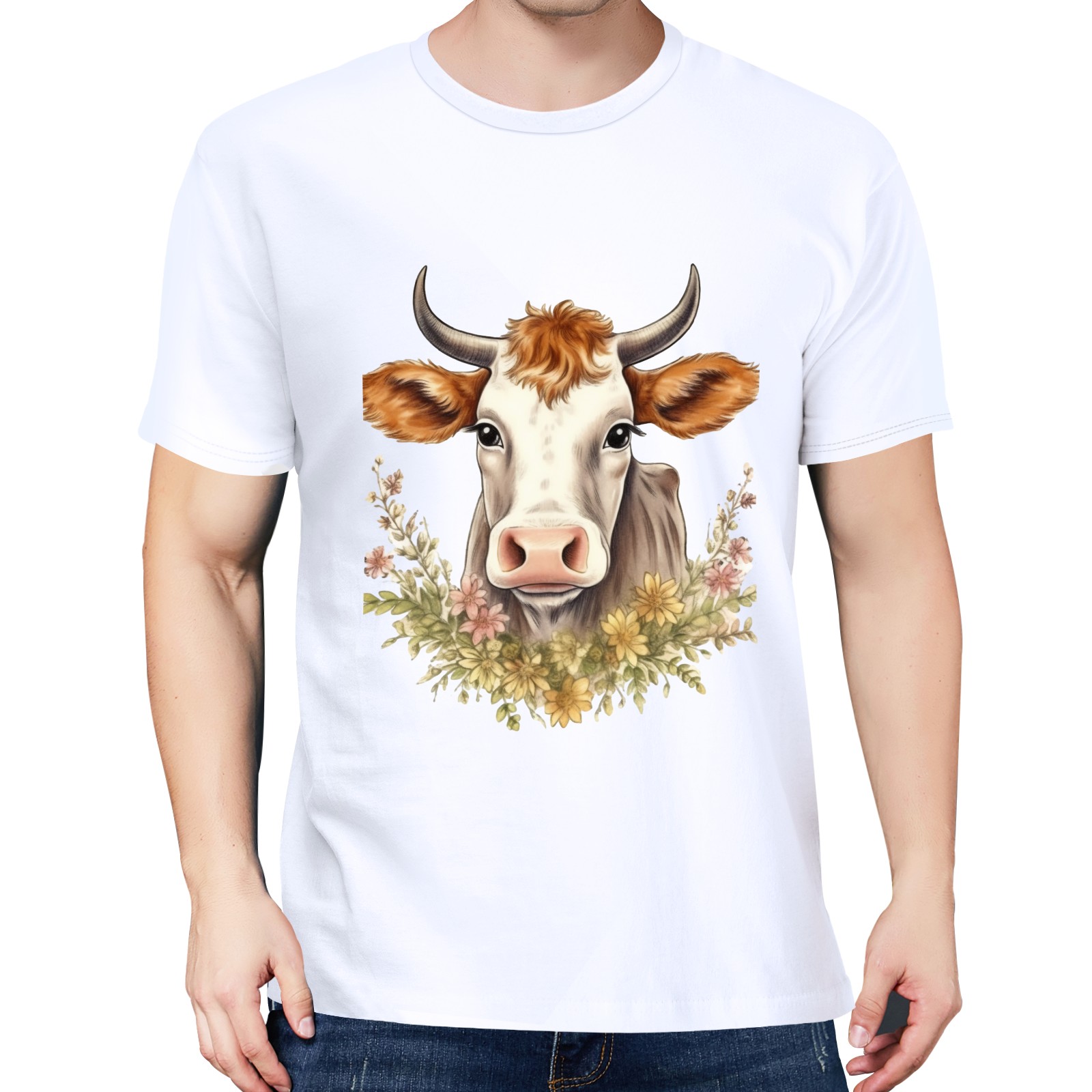Men's Graphic TeeCow (25) Letter Print T-Shirts Round Neck Short Sleeves Sizes XS-5XL Summer Daily Casual Tops