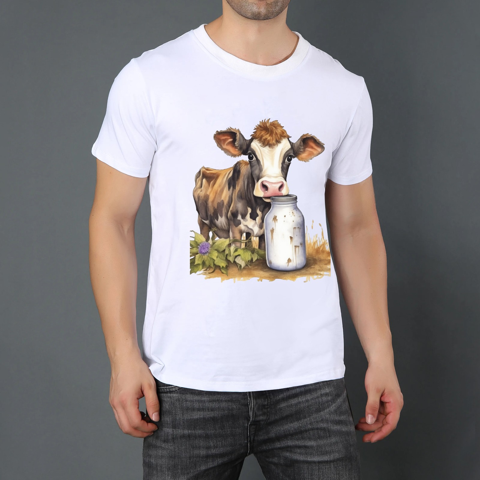 Men's Graphic TeeCow (21) Letter Print T-Shirts Round Neck Short Sleeves Sizes XS-5XL Summer Daily Casual Tops