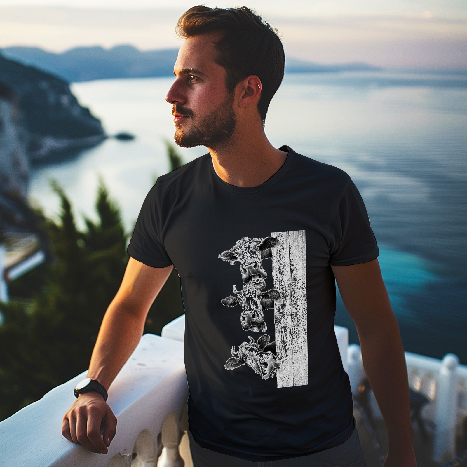 Men's Graphic TeeCow (16) Letter Print T-Shirts Round Neck Short Sleeves Sizes XS-5XL Summer Daily Casual Tops