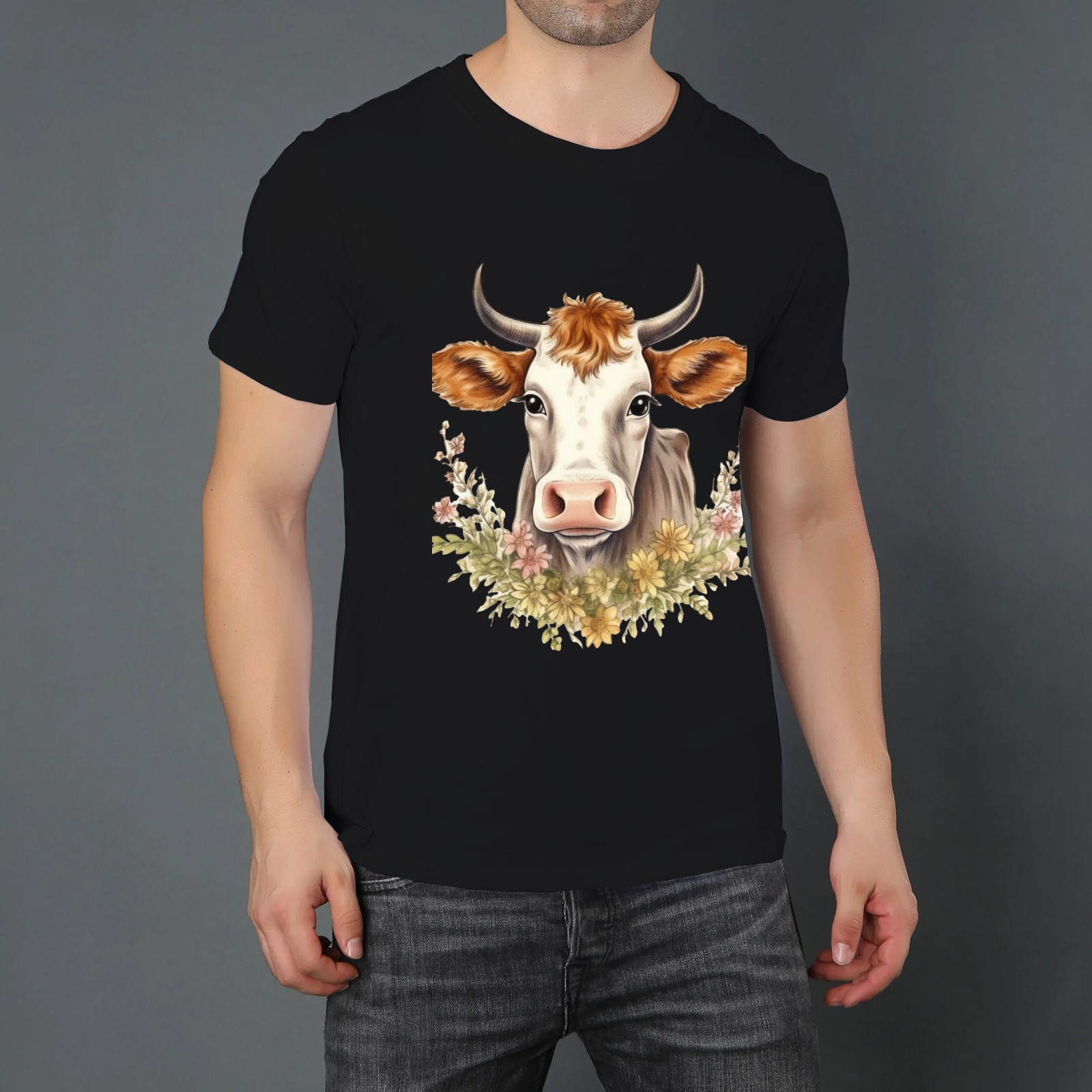 Men's Graphic TeeCow (10) Letter Print T-Shirts Round Neck Short Sleeves Sizes XS-5XL Summer Daily Casual Tops