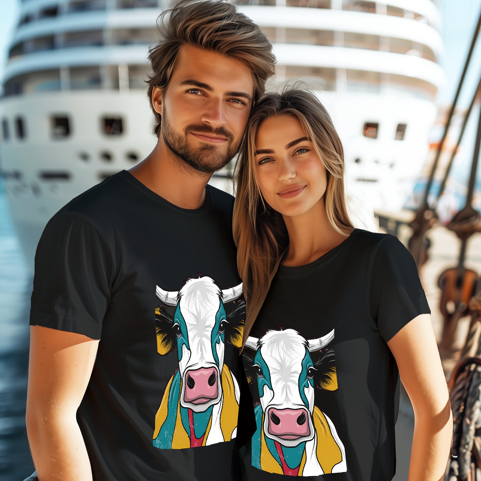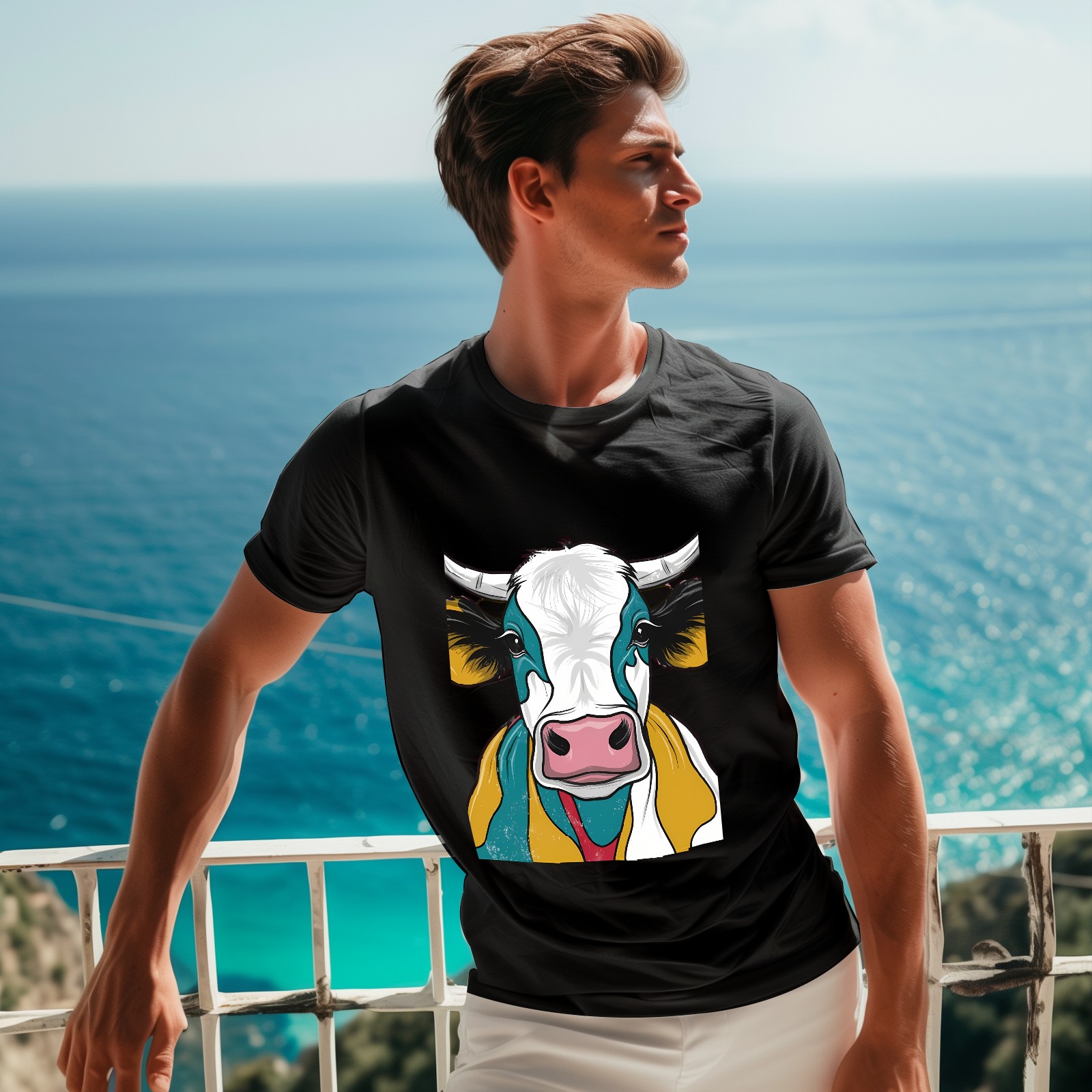 Men's Graphic TeeCow (1) Letter Print T-Shirts Round Neck Short Sleeves Sizes XS-5XL Summer Daily Casual Tops