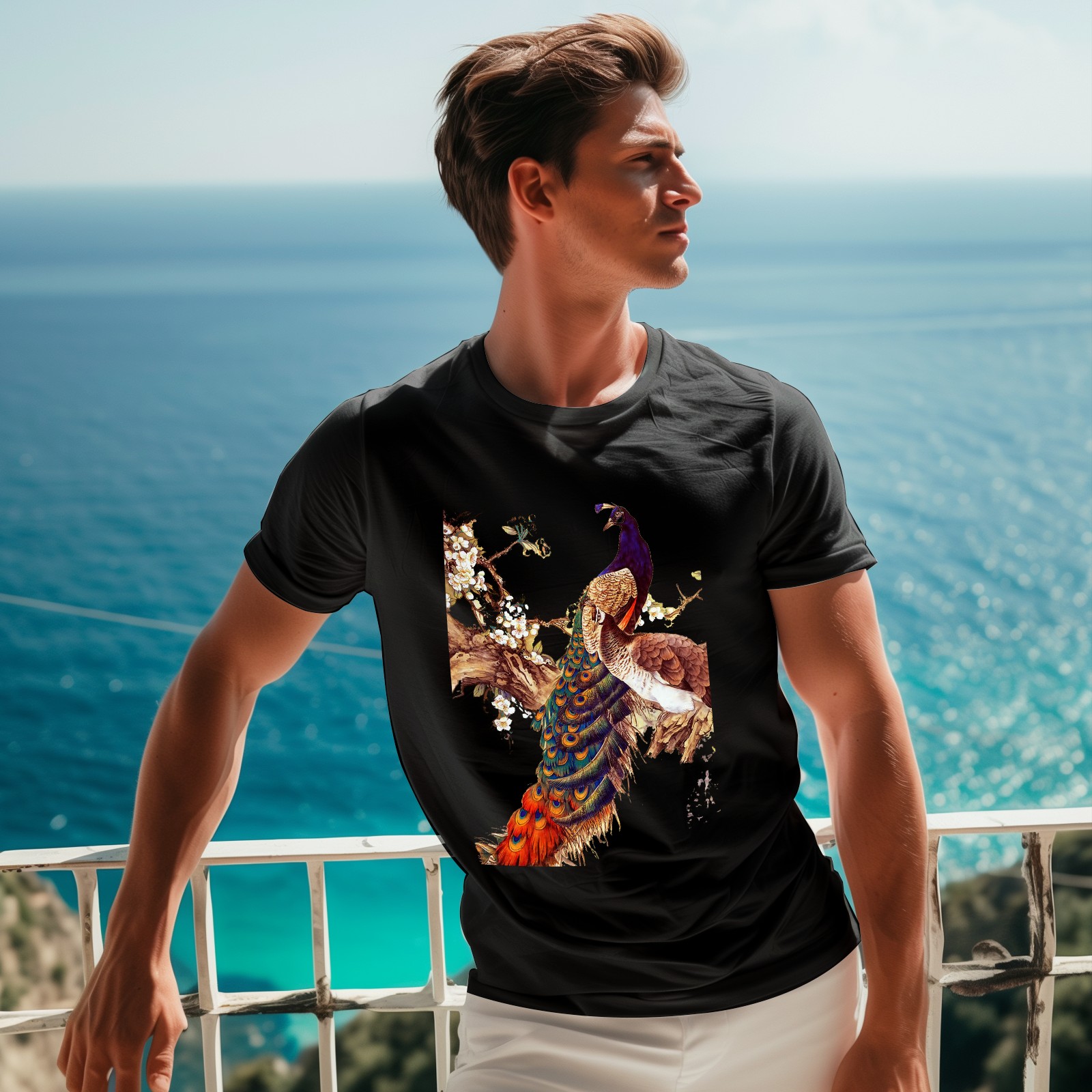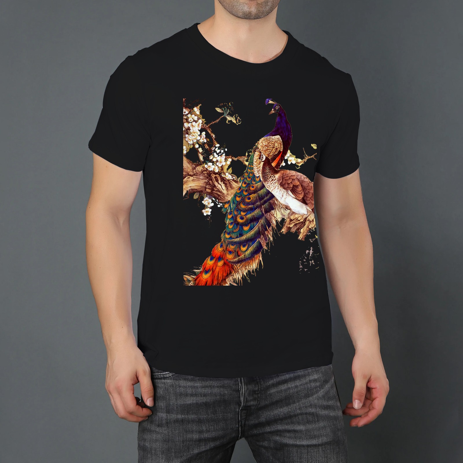 Men's Graphic TeeChina Peafowl Letter Print T-Shirts Round Neck Short Sleeves Sizes XS-5XL Summer Daily Casual Tops