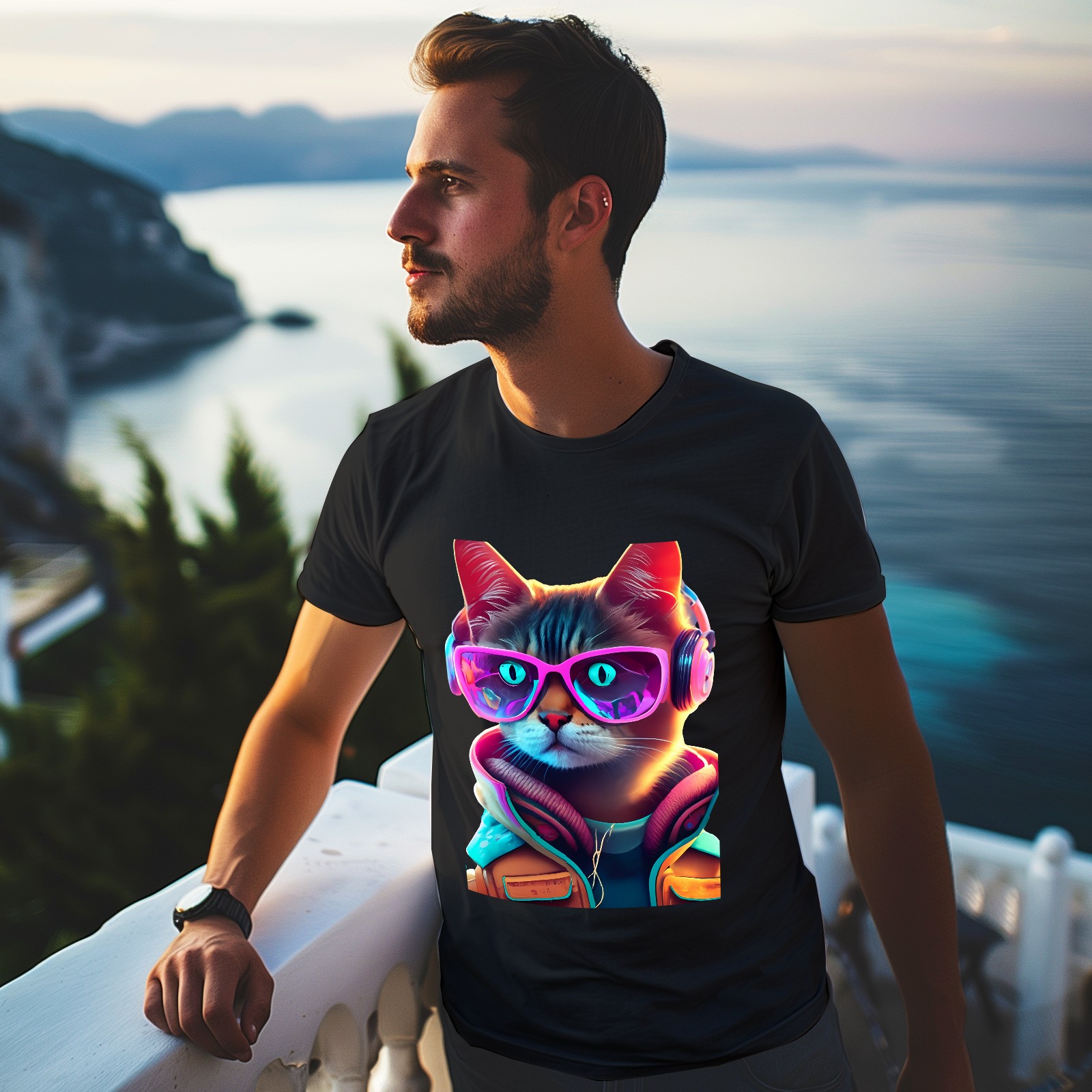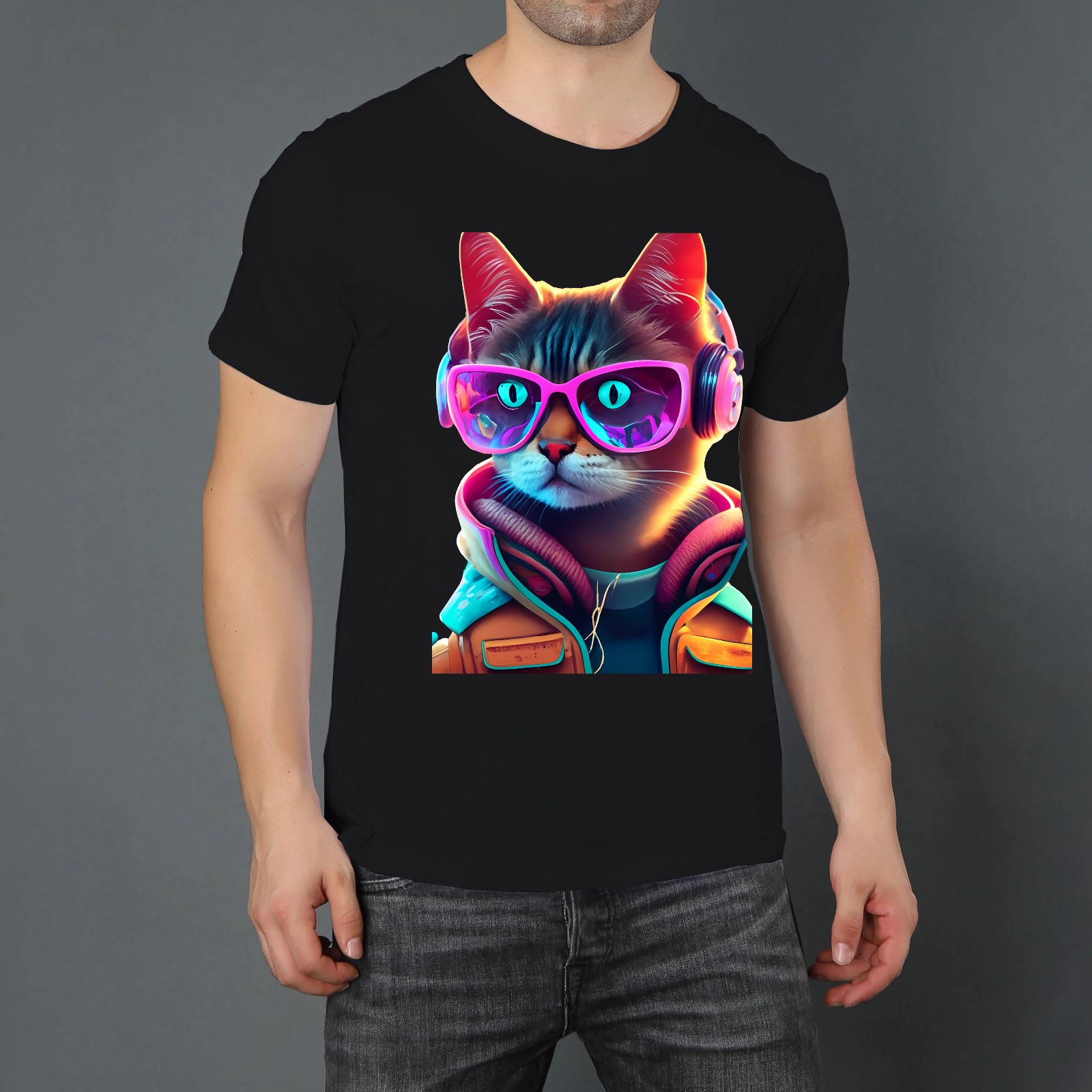 Men's Graphic TeeCat Letter Print T-Shirts Round Neck Short Sleeves Sizes XS-5XL Summer Daily Casual Tops