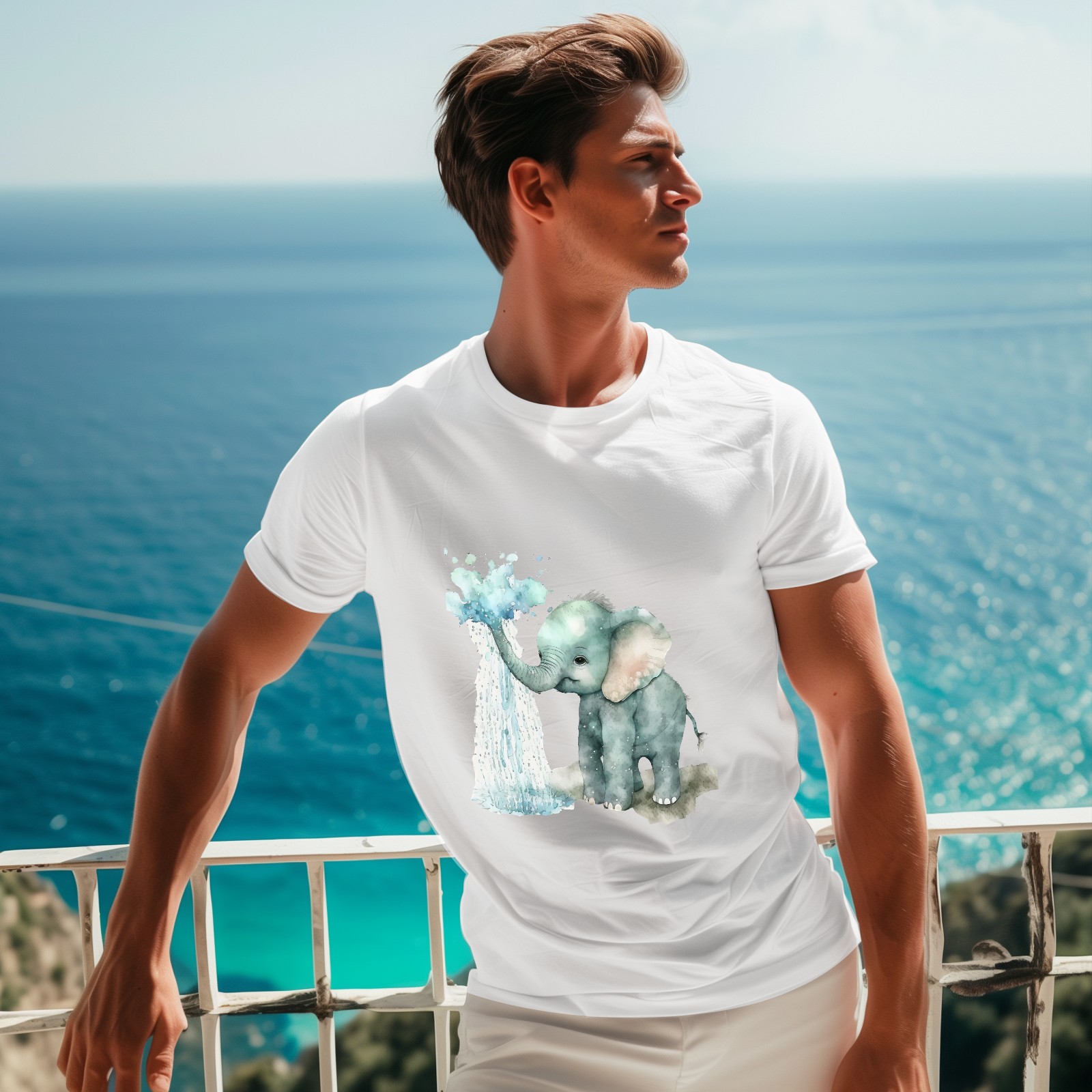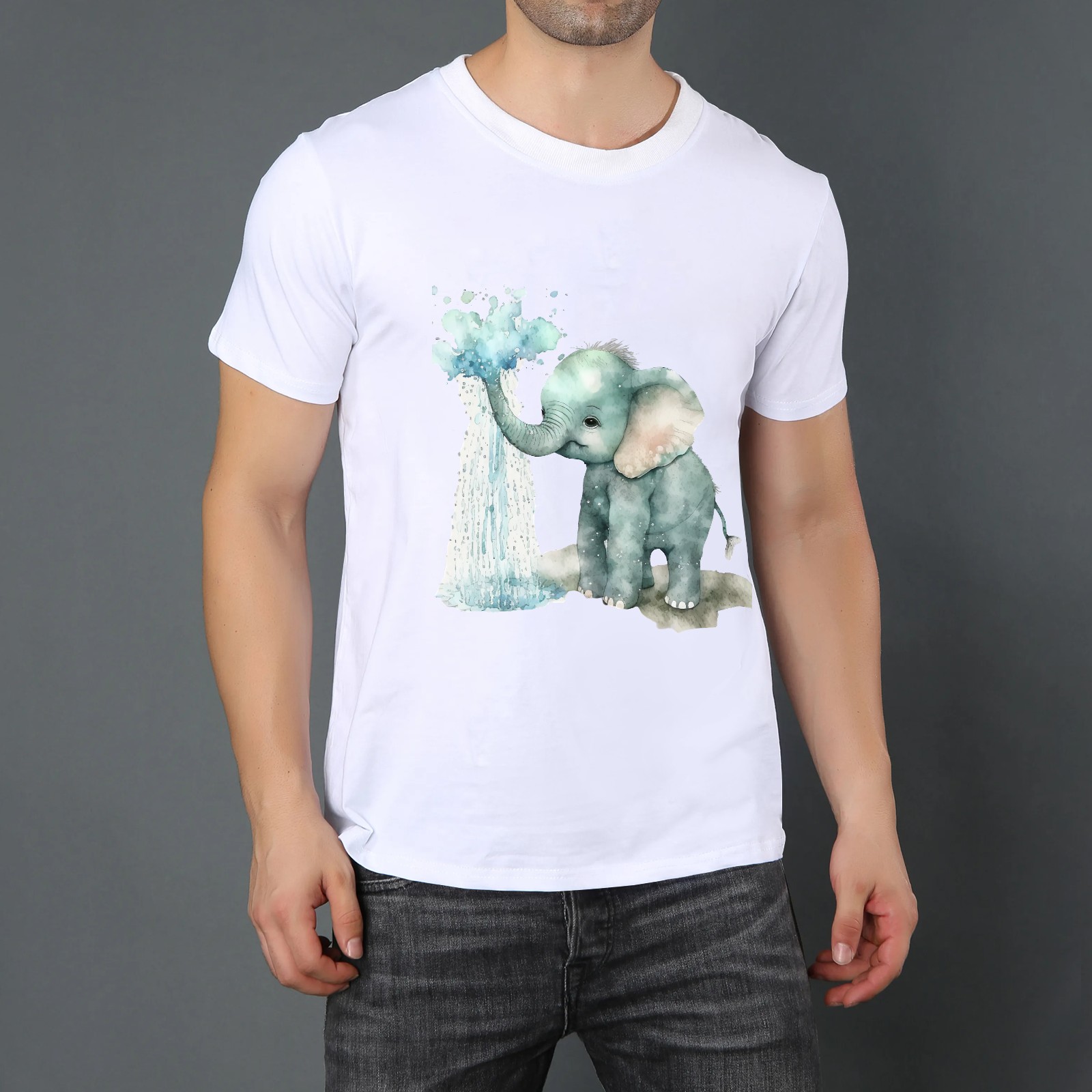 Men's Graphic TeeWatercolor Elephant (7) Letter Print T-Shirts Round Neck Short Sleeves Sizes XS-5XL Summer Daily Casual Tops