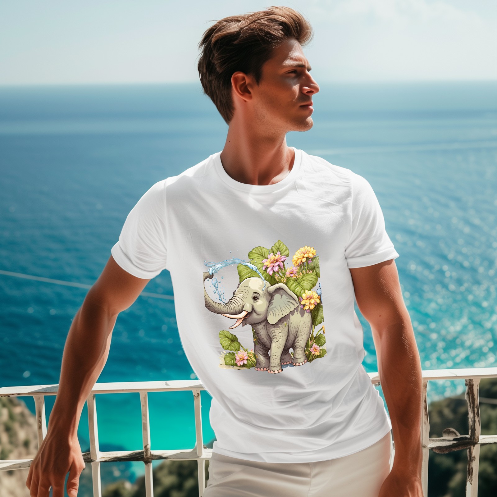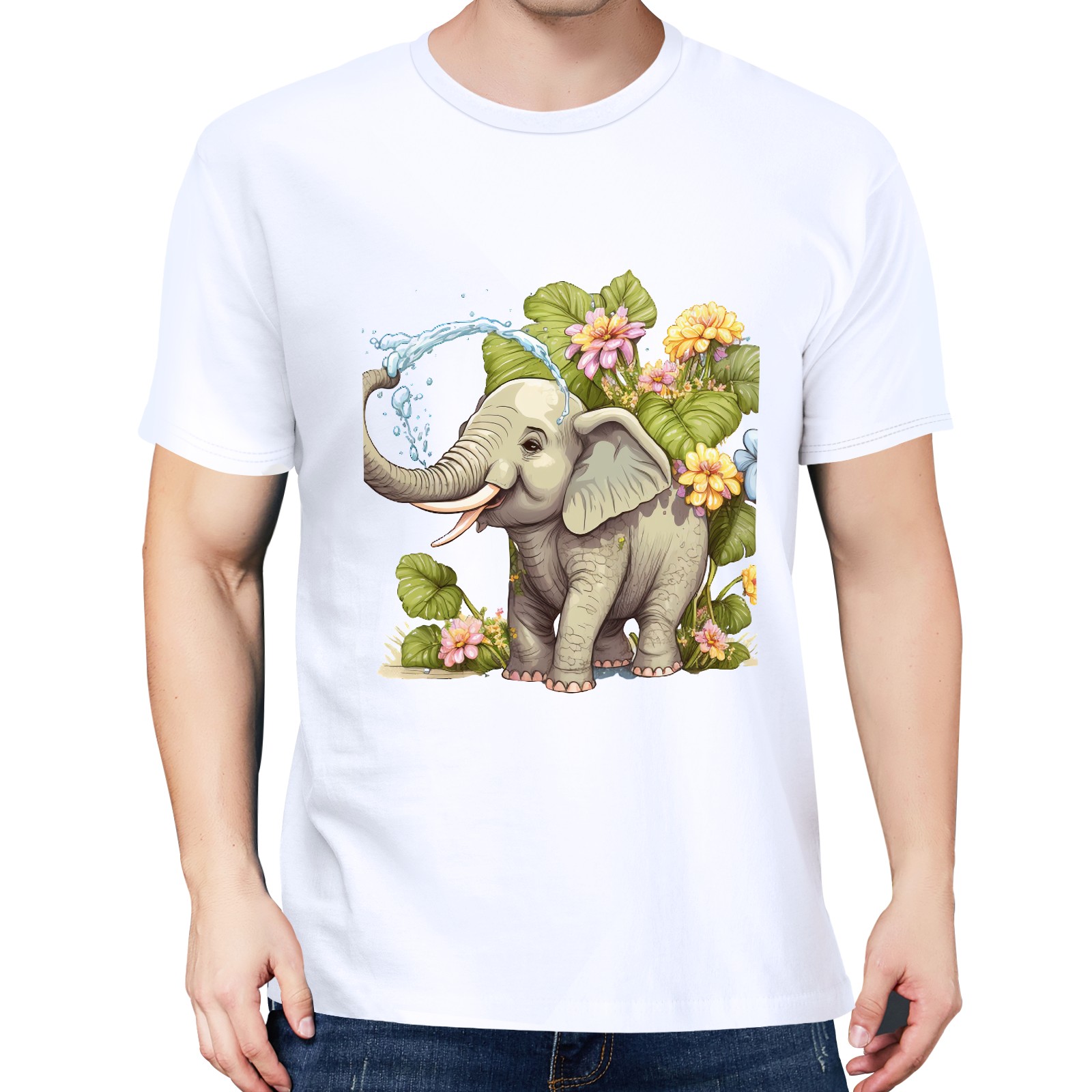 Men's Graphic TeeWatercolor Elephant (6) Letter Print T-Shirts Round Neck Short Sleeves Sizes XS-5XL Summer Daily Casual Tops