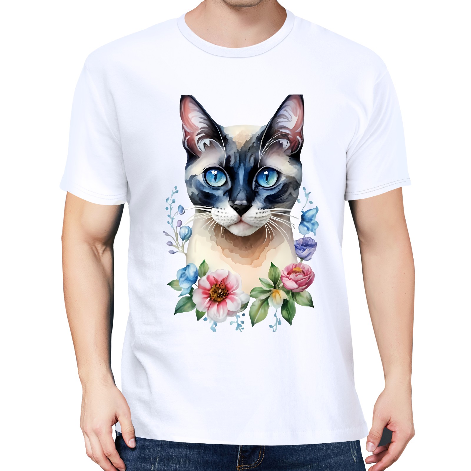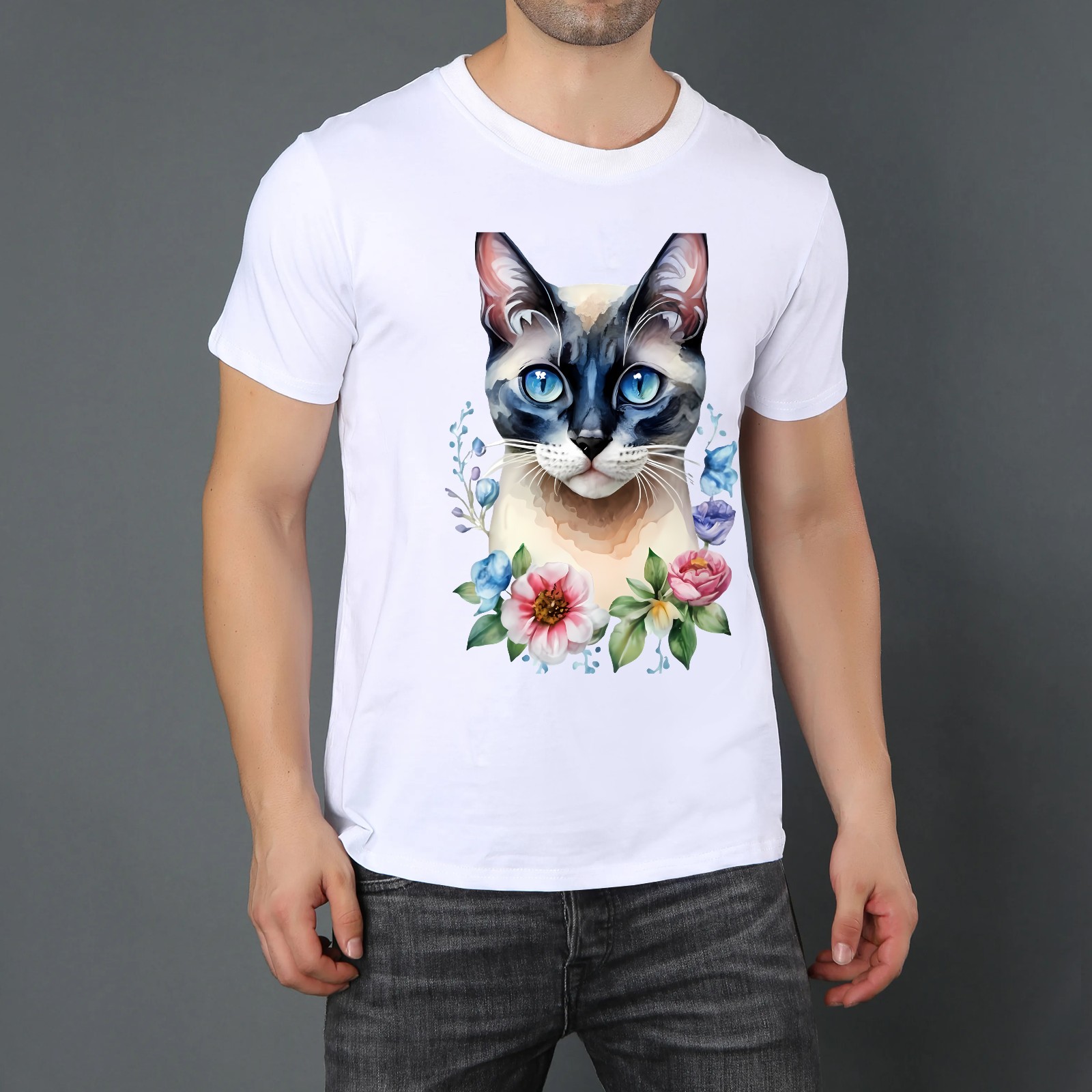 Men's Graphic TeeCat Letter Print T-Shirts Round Neck Short Sleeves Sizes XS-5XL Summer Daily Casual Tops