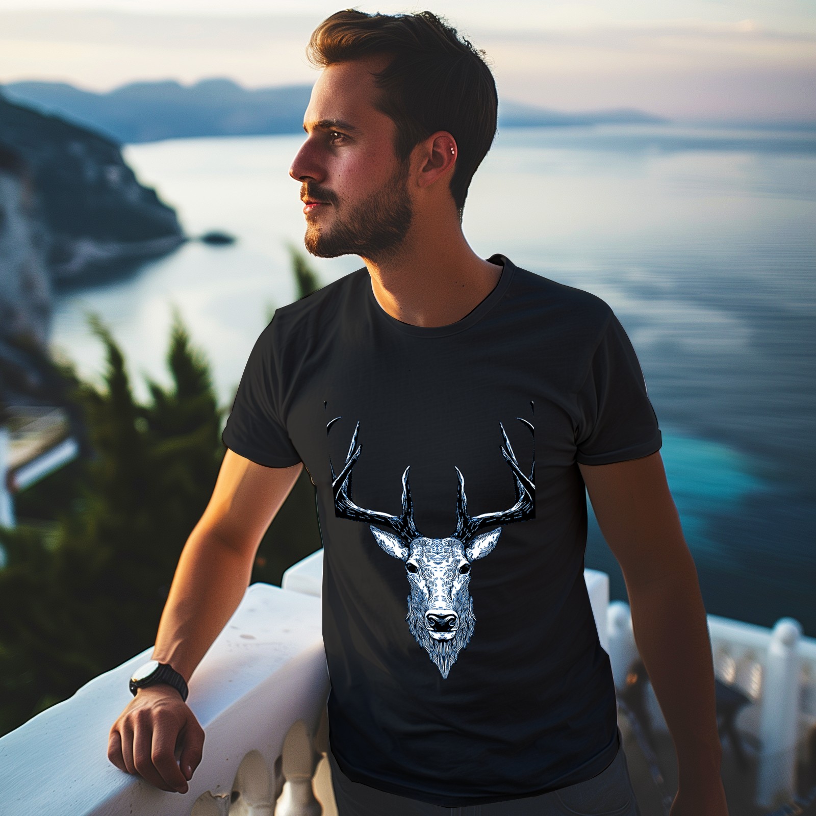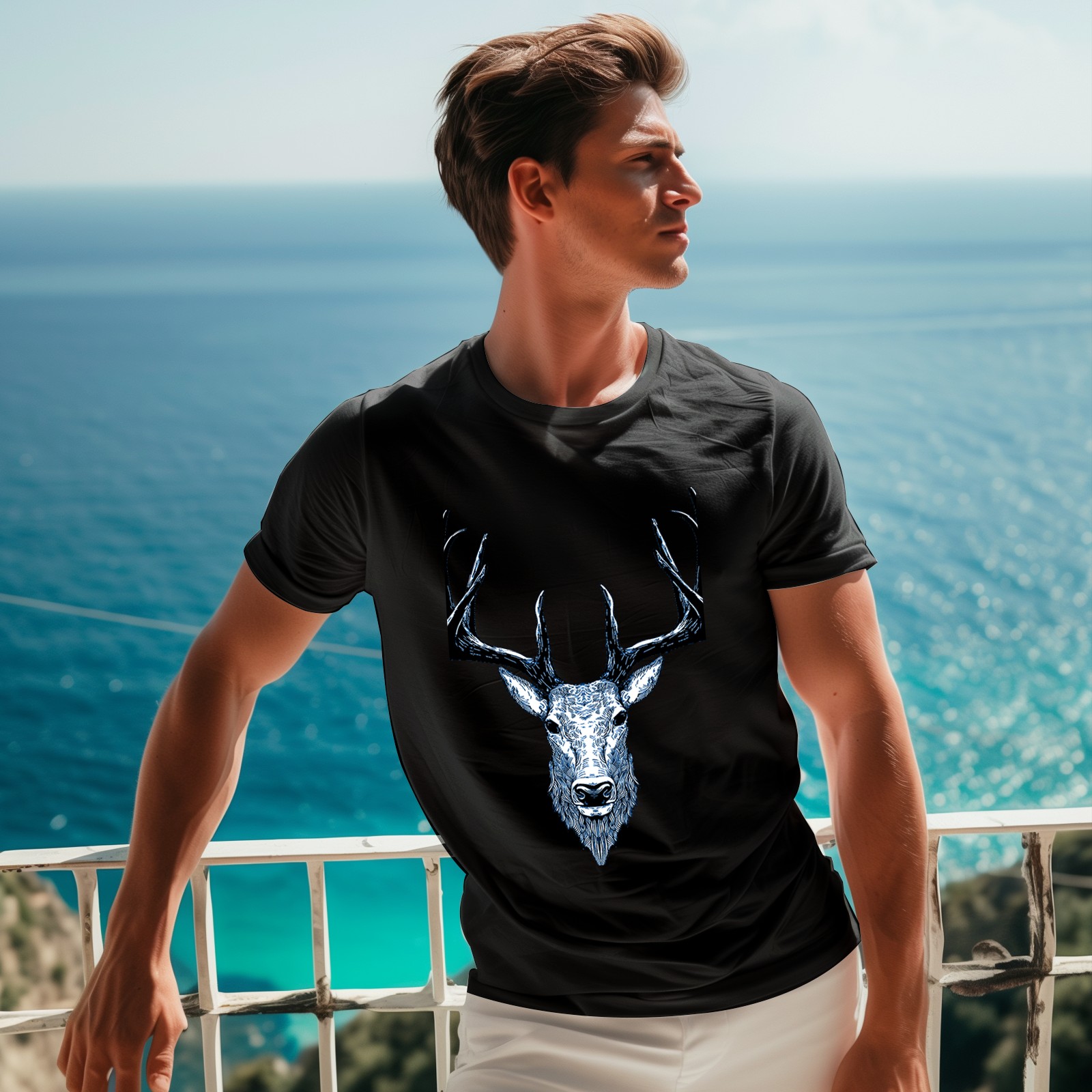 Men's Graphic TeeDeer Letter Print T-Shirts Round Neck Short Sleeves Sizes XS-5XL Summer Daily Casual Tops