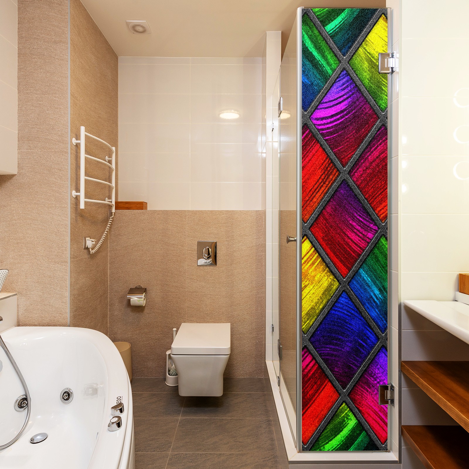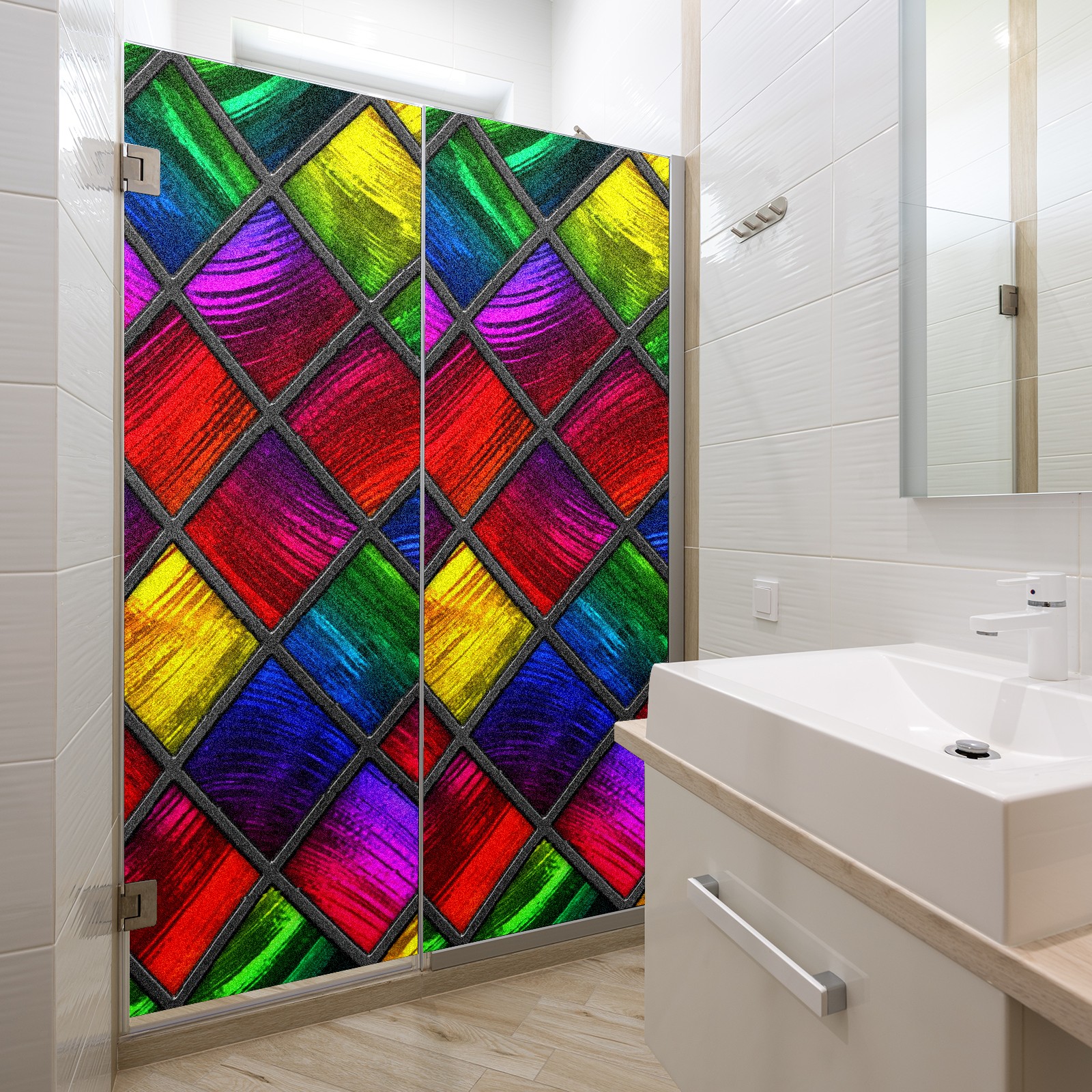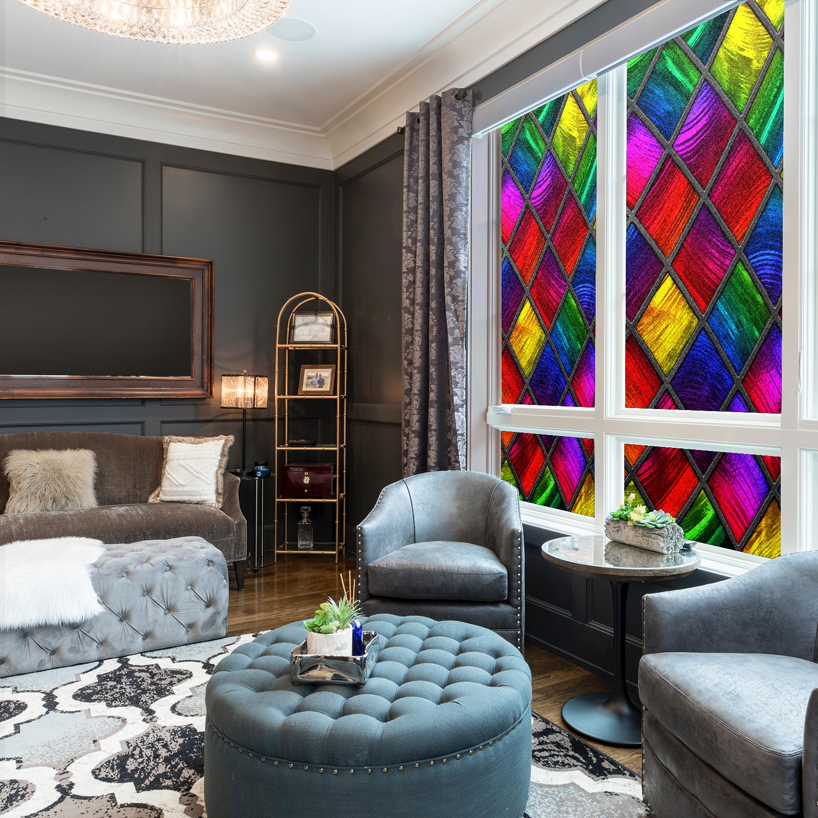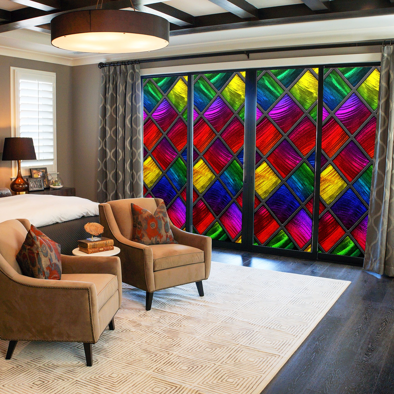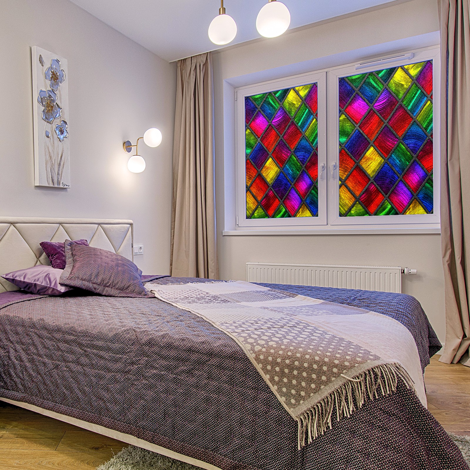 Static Cling Decorative Window Film Frosted Privacy Film Window Clings for Glass Windows No Glue Window Sticker for Bathroom Bedroom Office Colorful Stained Glass Window Red Blue