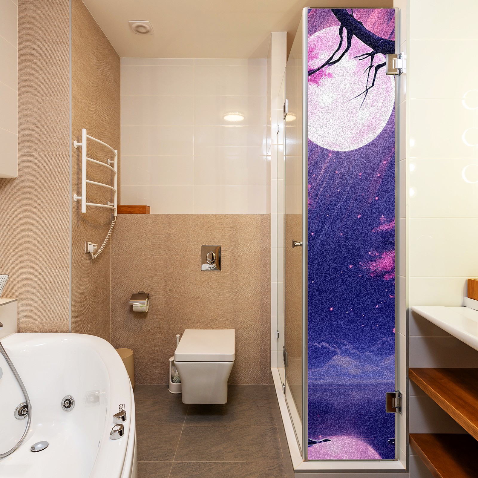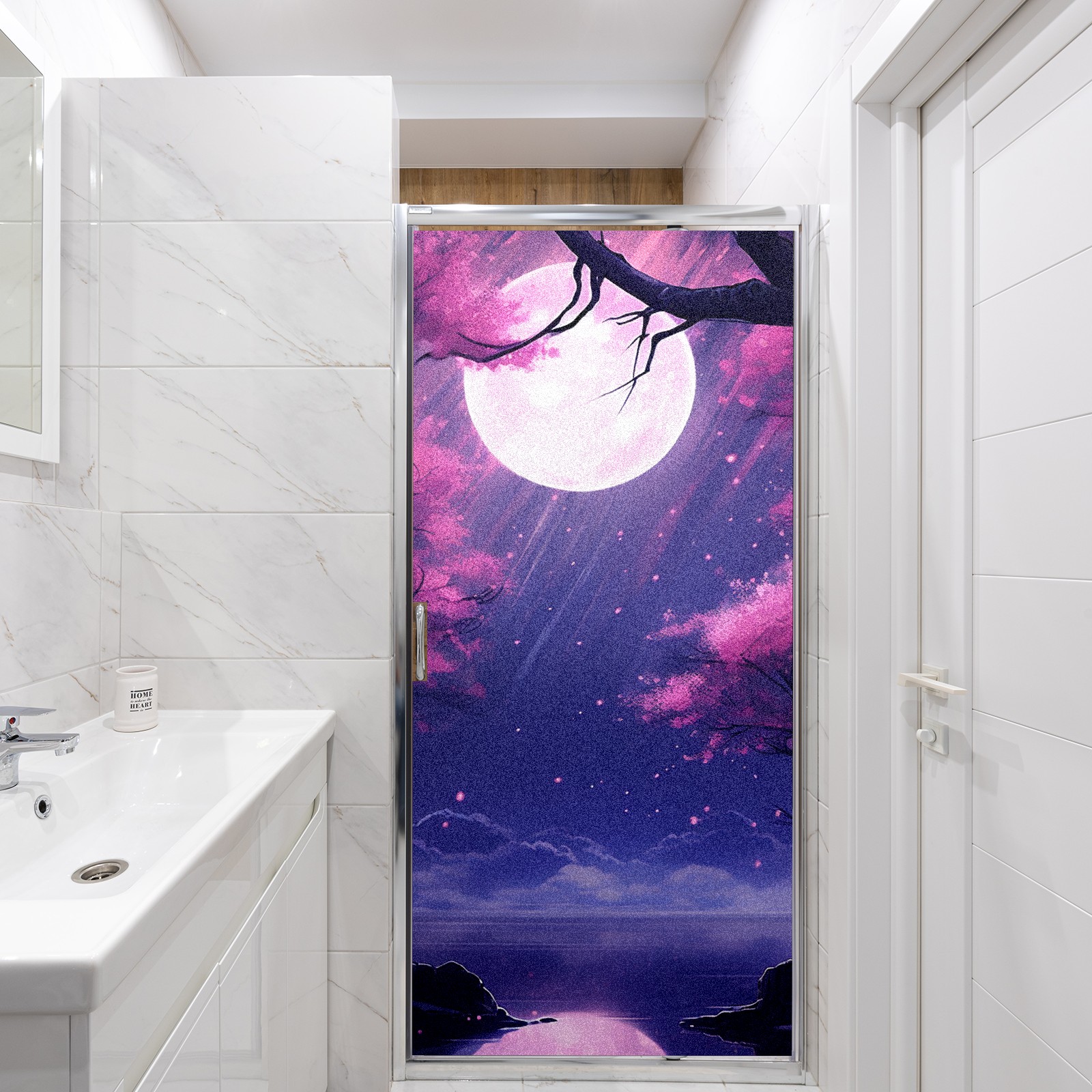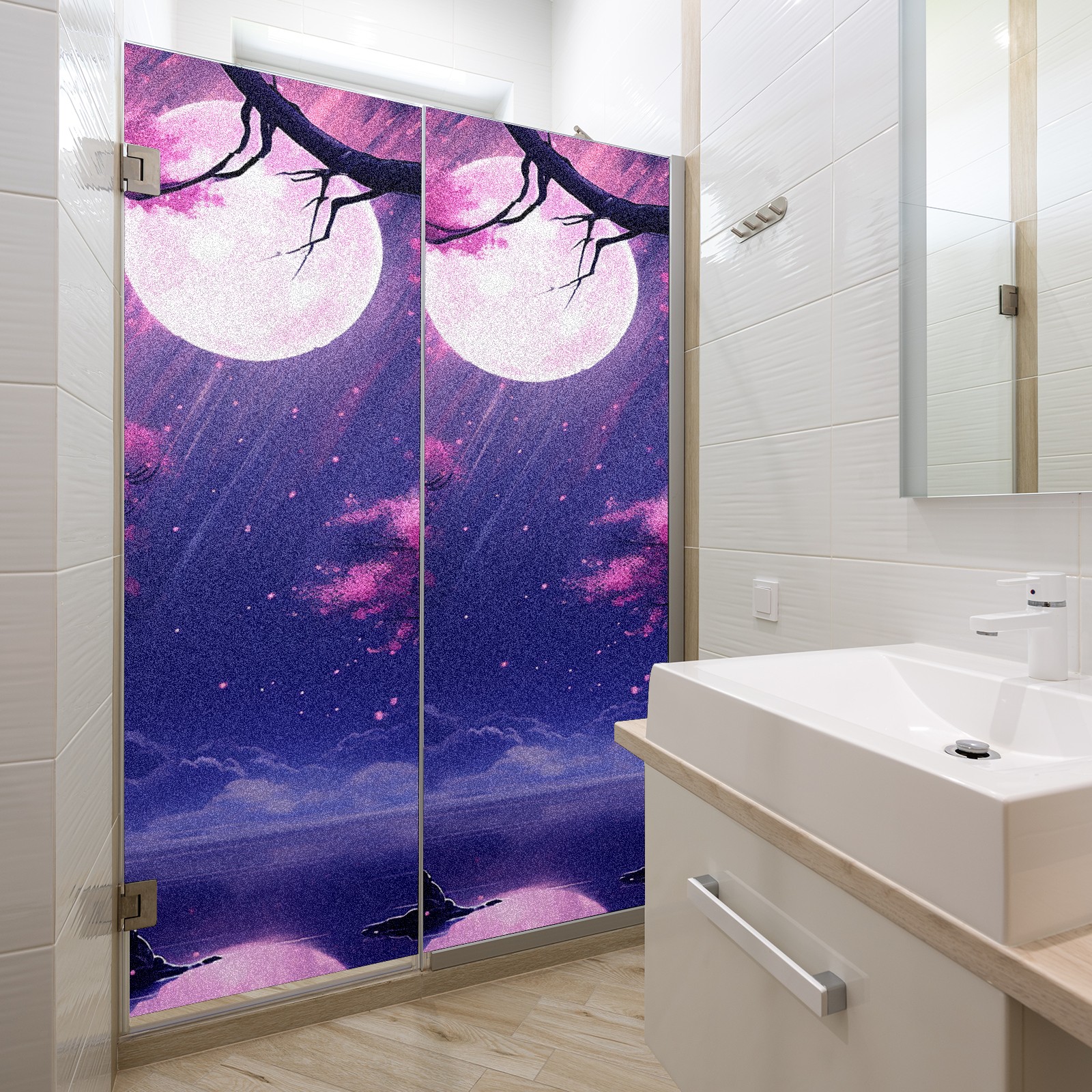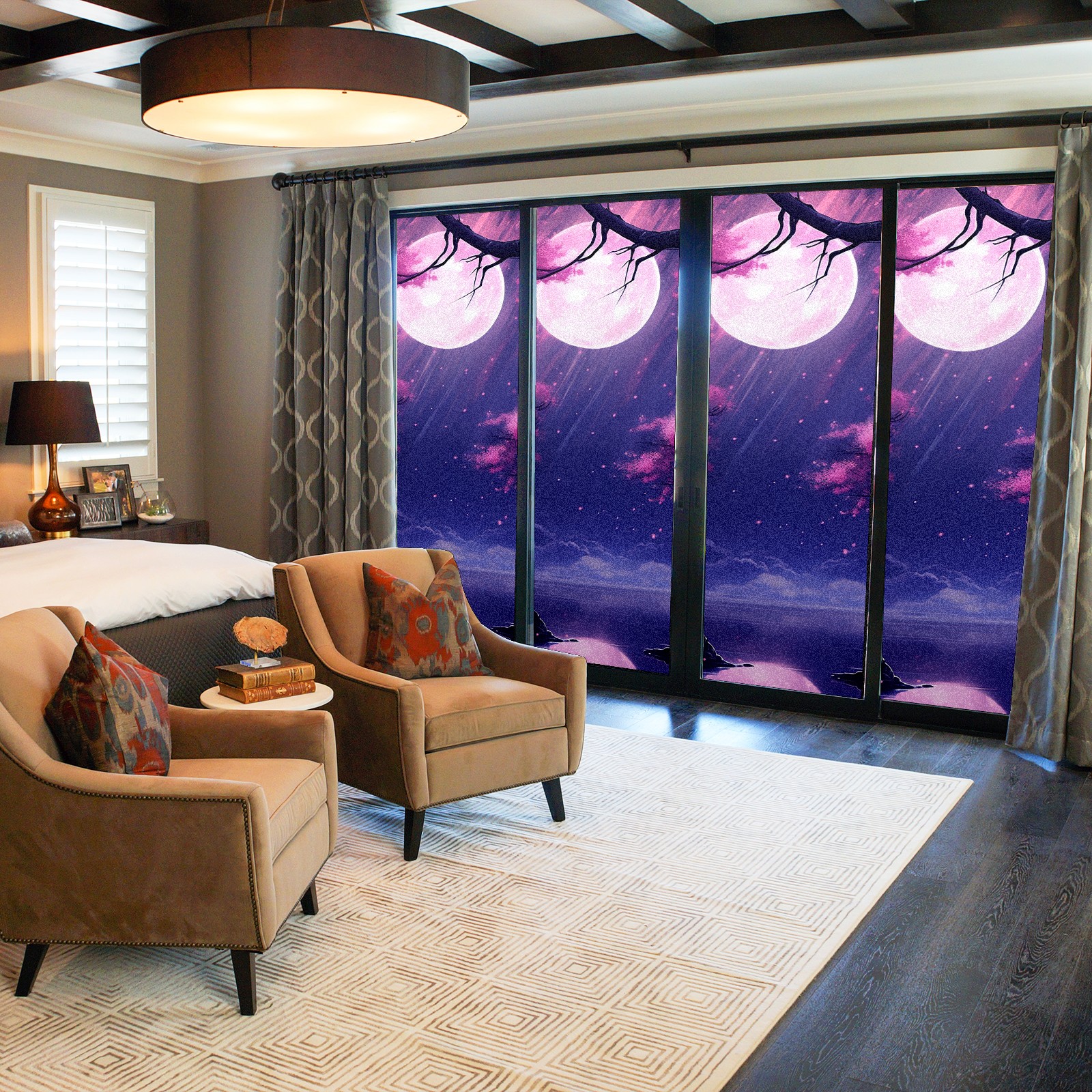 Static Cling Decorative Window Film Frosted Privacy Film Window Clings for Glass Windows No Glue Window Sticker for Bathroom Bedroom Office Purple Moon 6