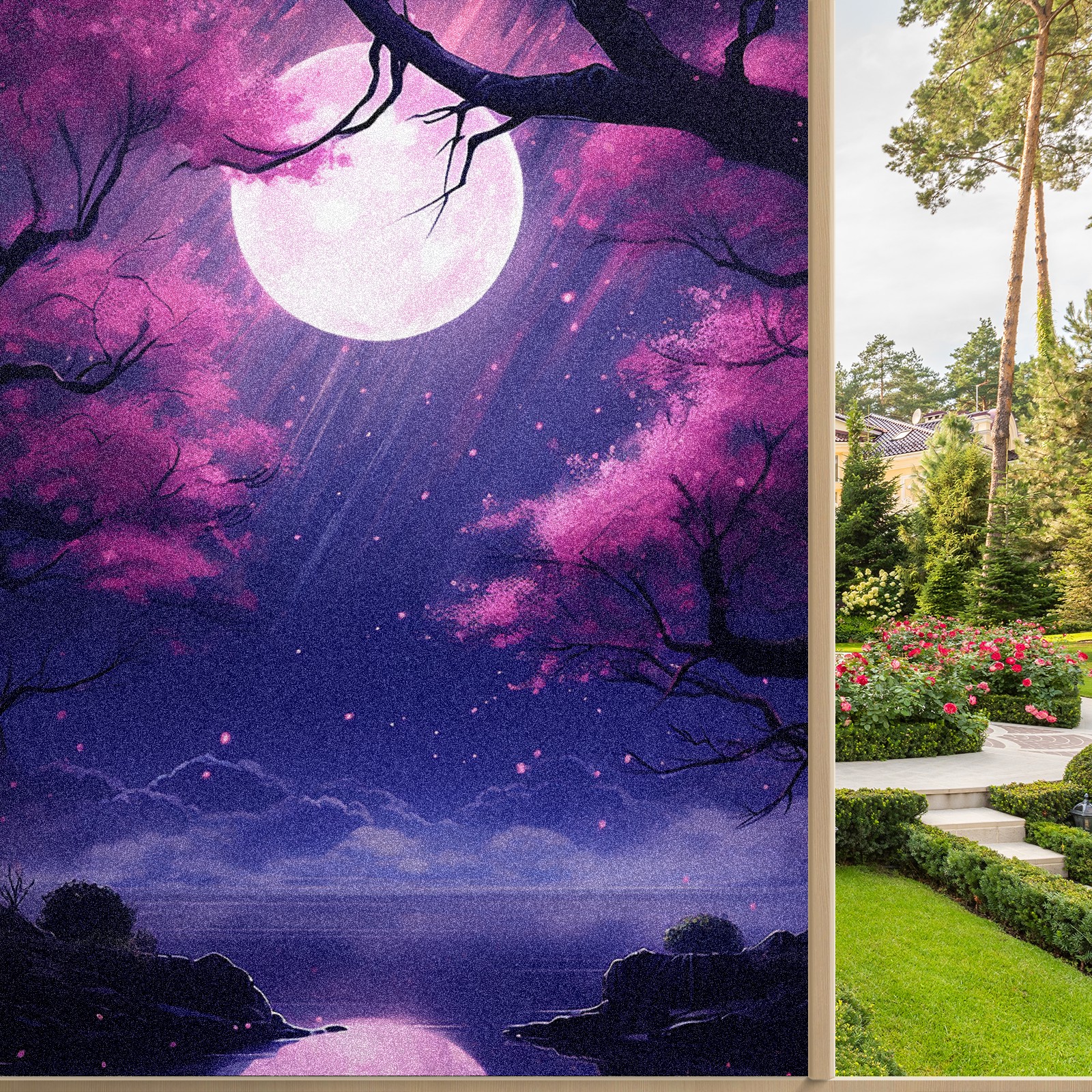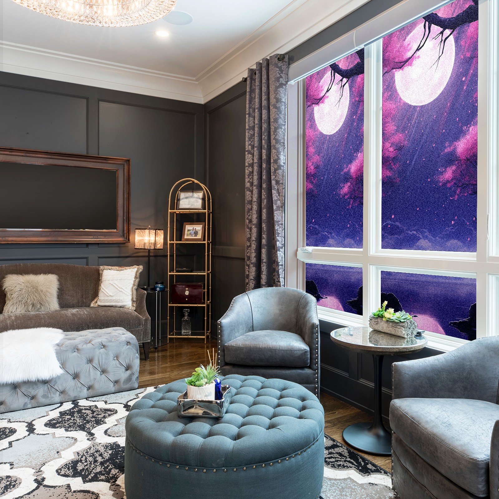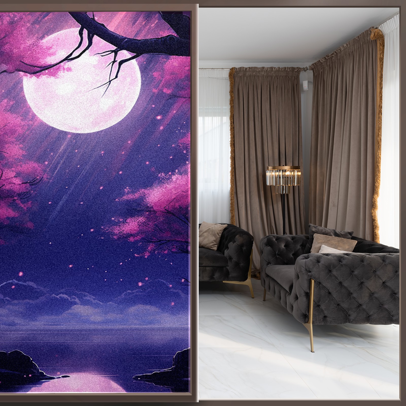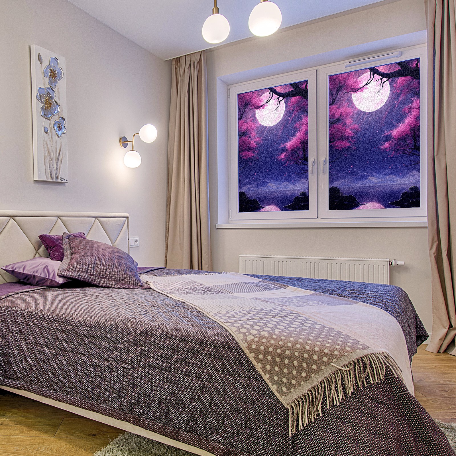 Static Cling Decorative Window Film Frosted Privacy Film Window Clings for Glass Windows No Glue Window Sticker for Bathroom Bedroom Office Purple Moon 6