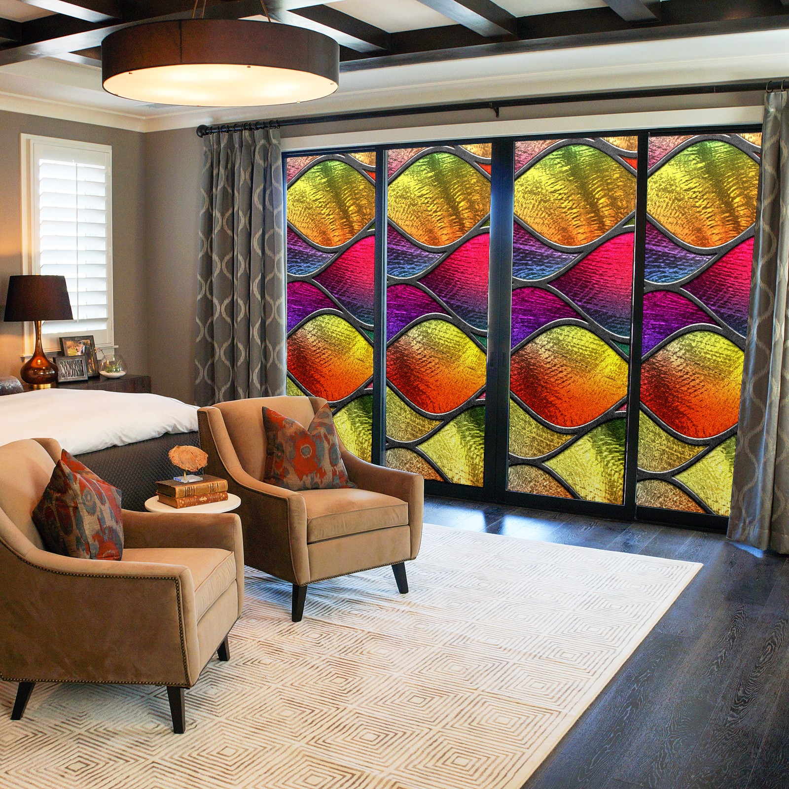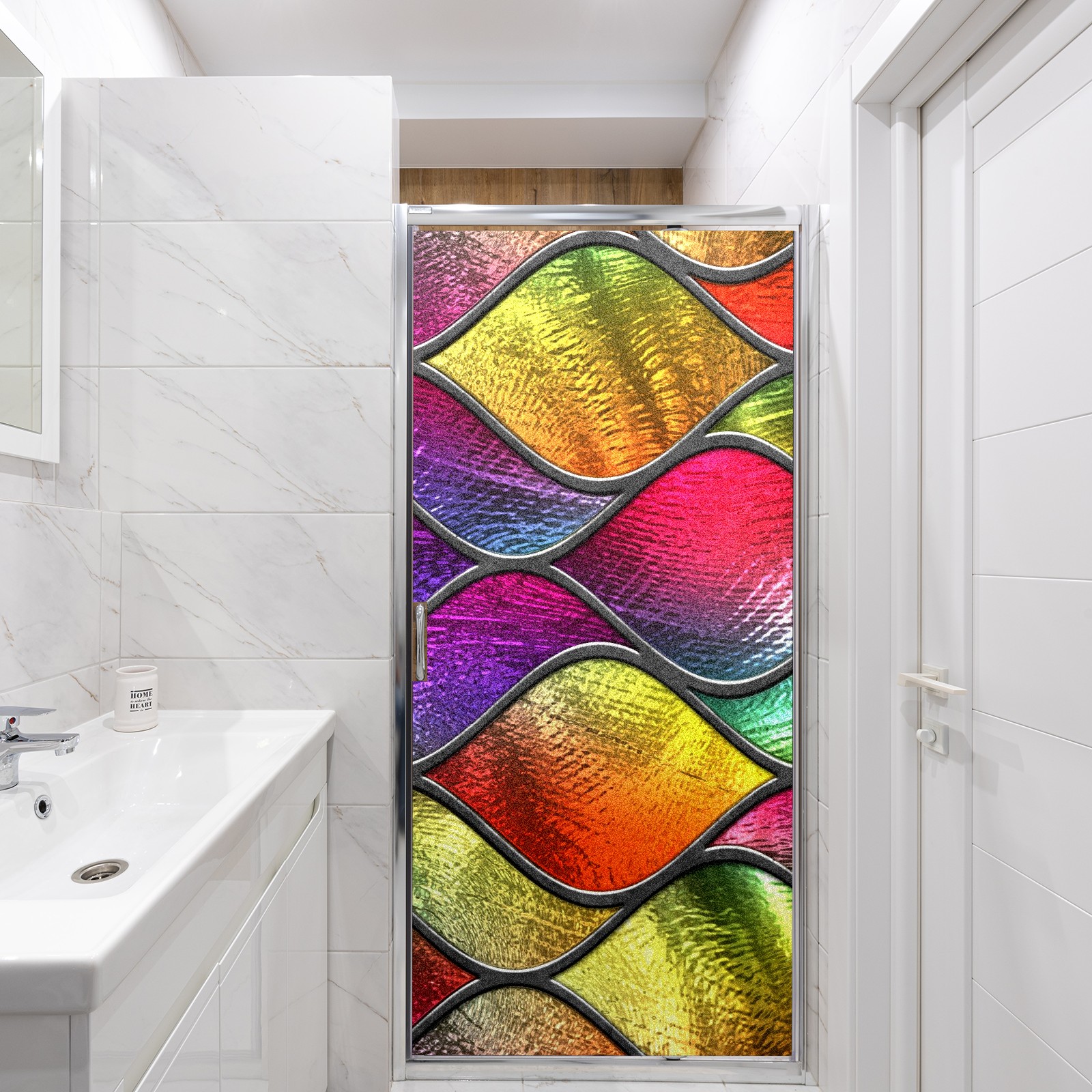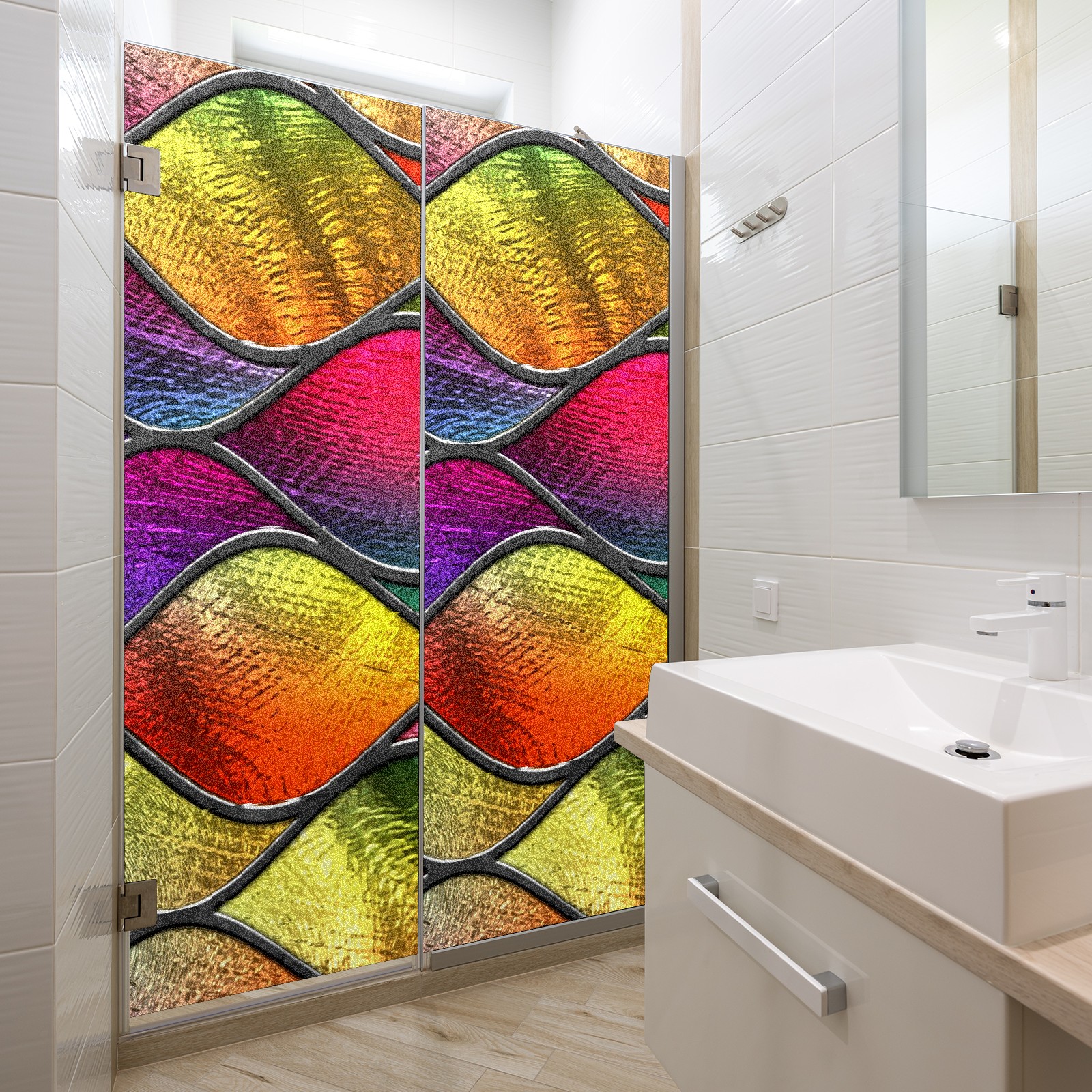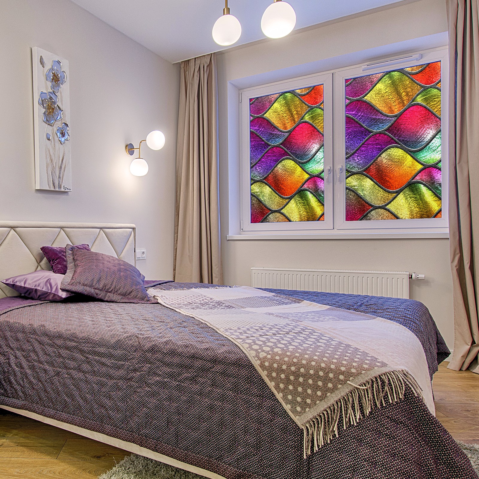 Static Cling Decorative Window Film Frosted Privacy Film Window Clings for Glass Windows No Glue Window Sticker for Bathroom Bedroom Office Colorful Stained Glass Purple