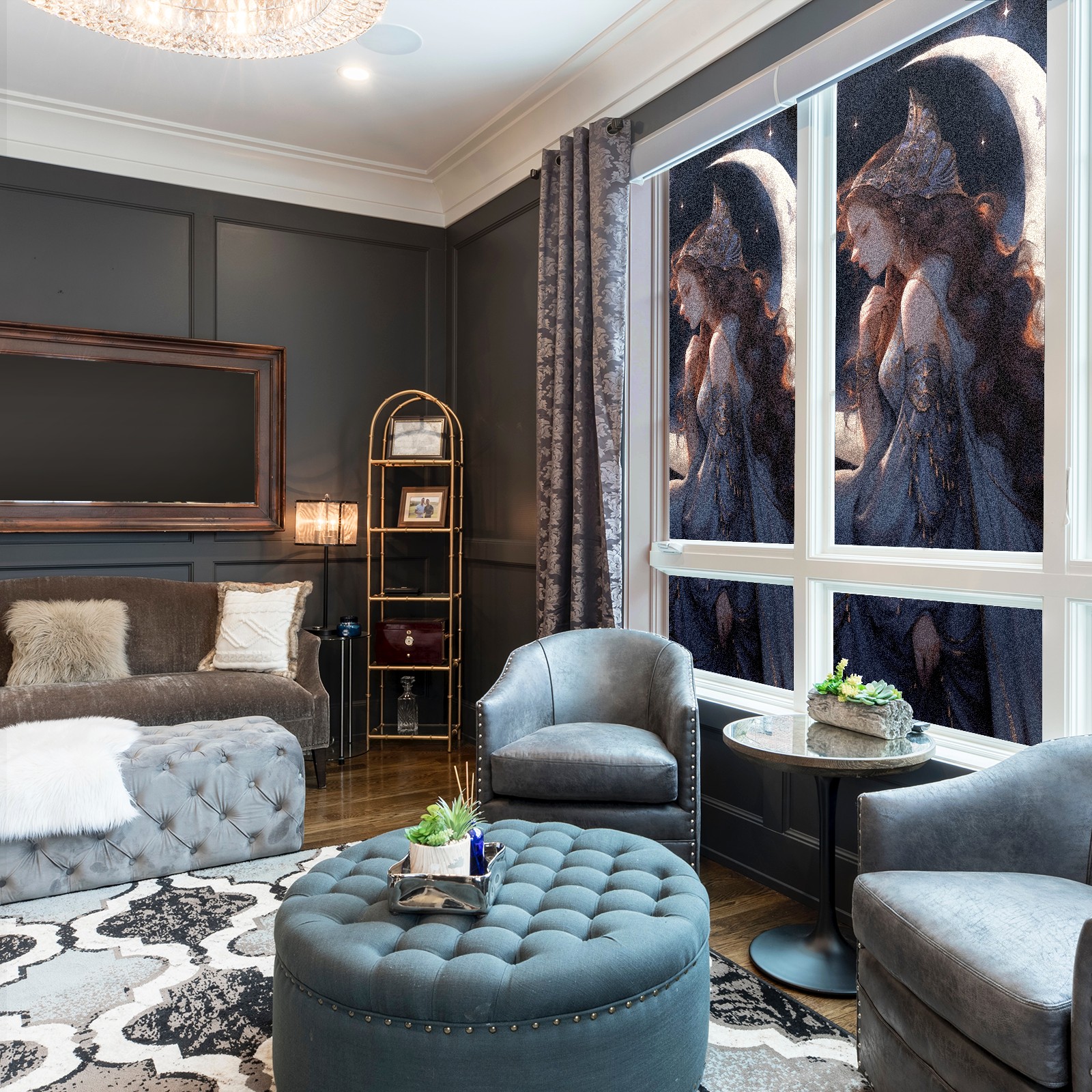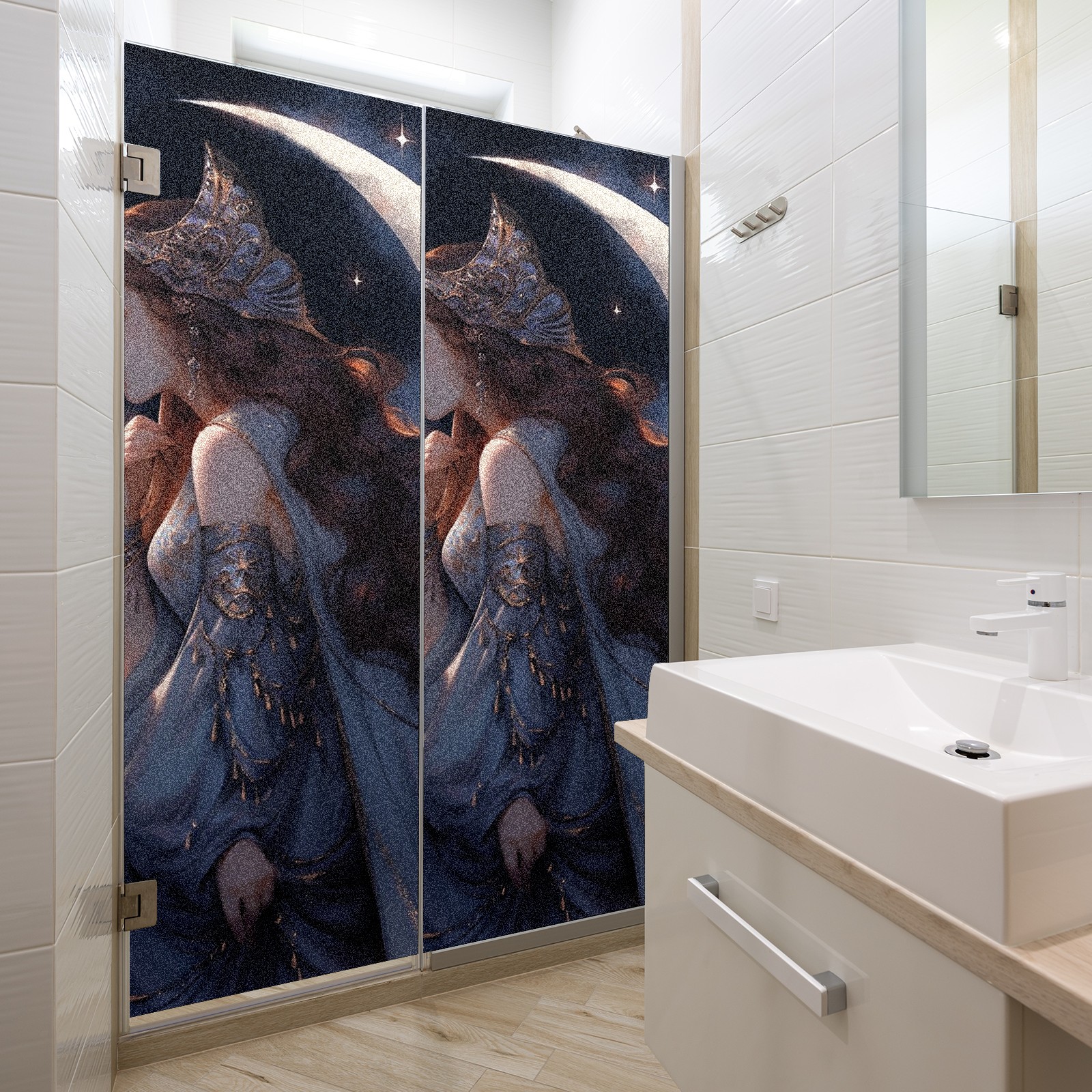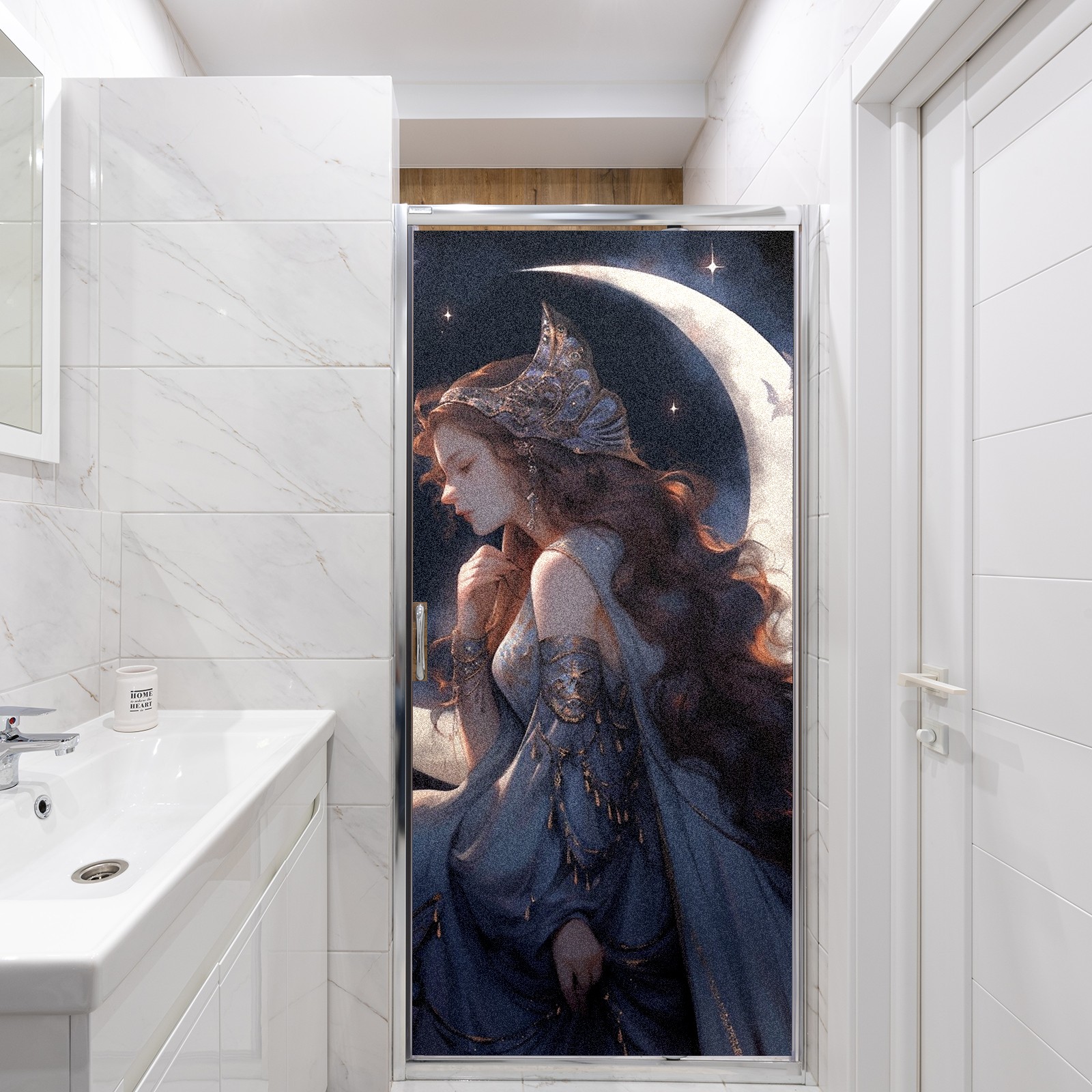 Static Cling Decorative Window Film Frosted Privacy Film Window Clings for Glass Windows No Glue Window Sticker for Bathroom Bedroom Office Moon Girl
