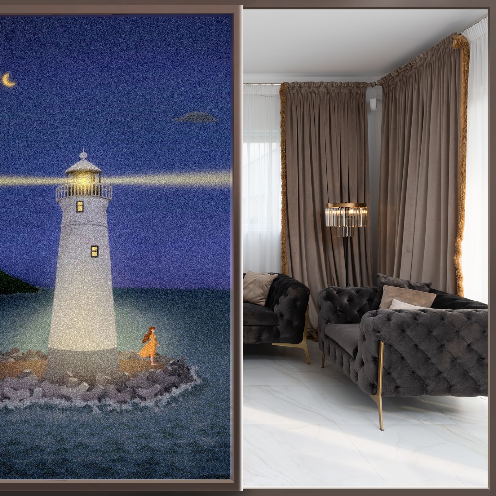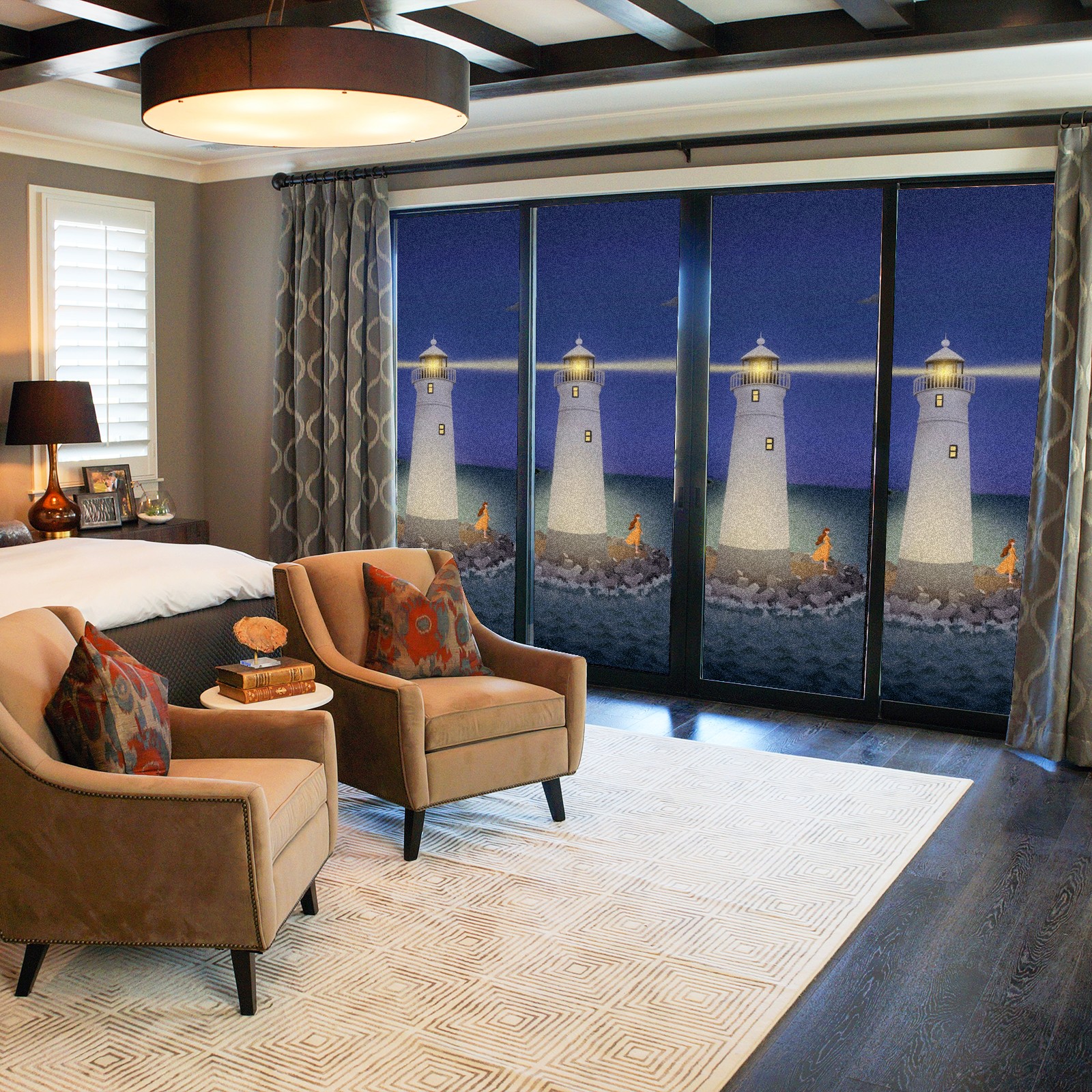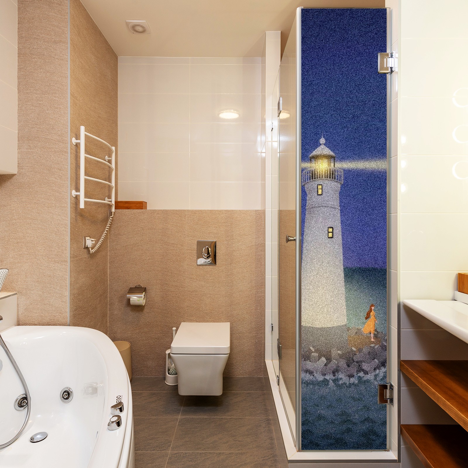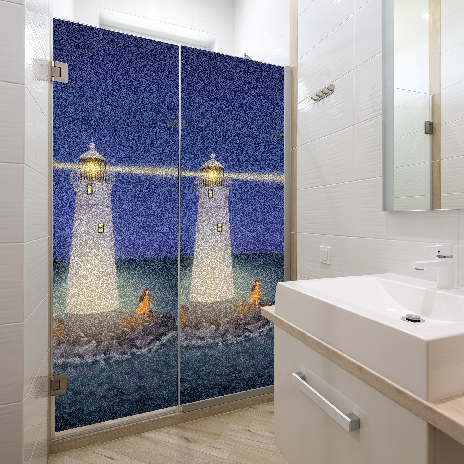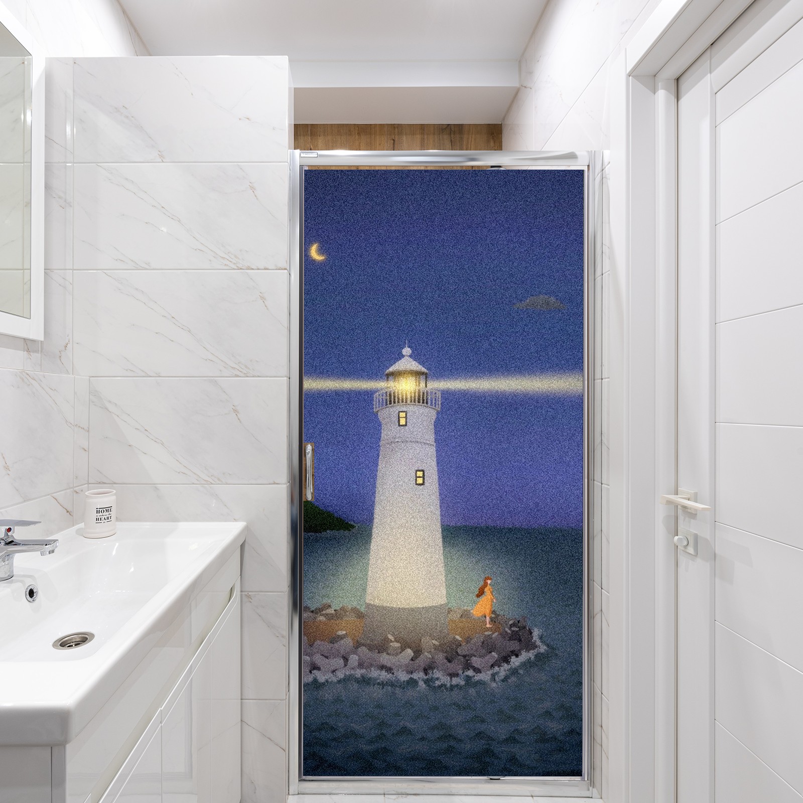 Static Cling Decorative Window Film Frosted Privacy Film Window Clings for Glass Windows No Glue Window Sticker for Bathroom Bedroom Office Lighthouse Girl