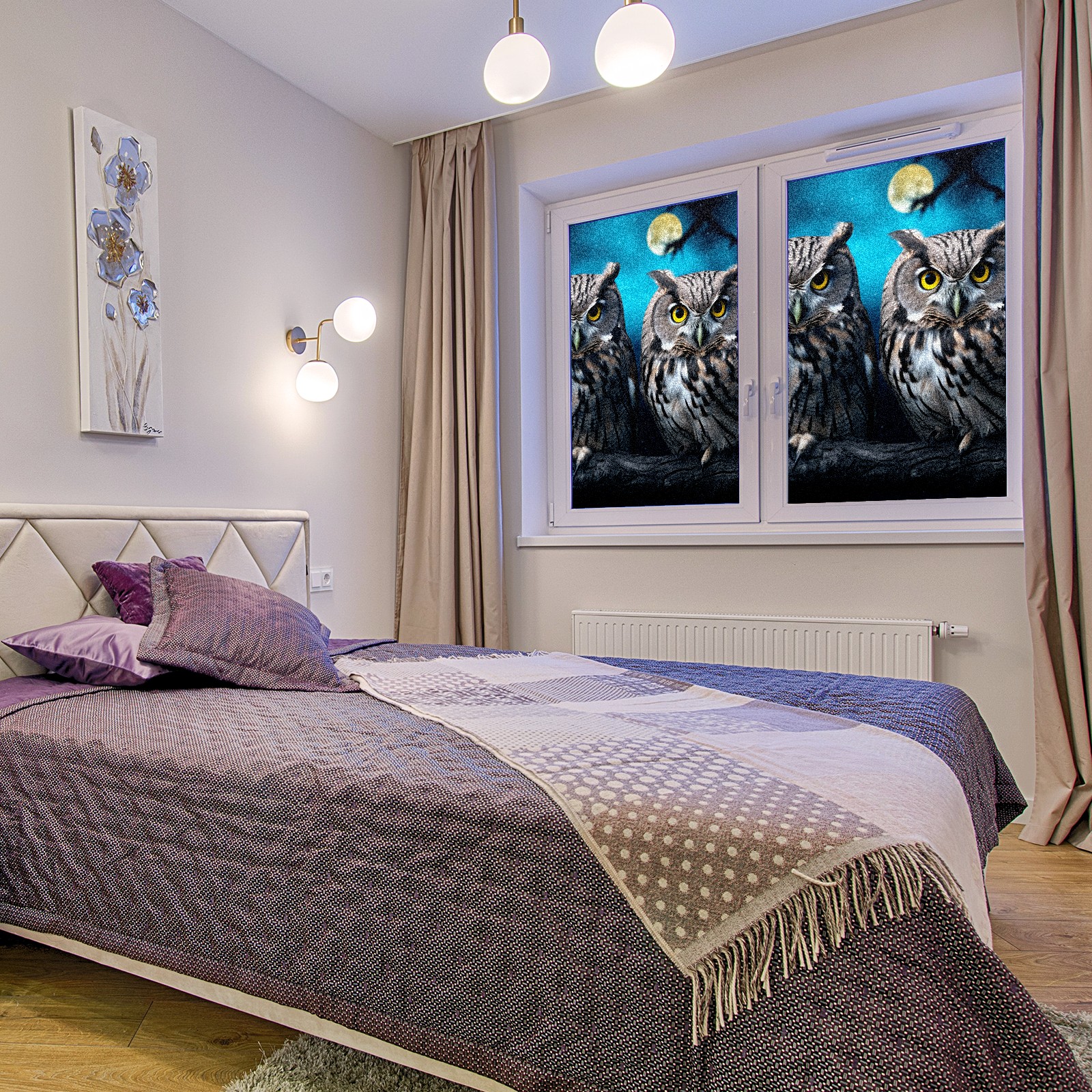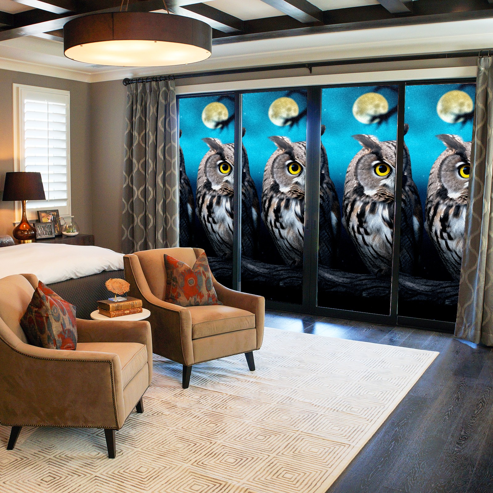 Static Cling Decorative Window Film Frosted Privacy Film Window Clings for Glass Windows No Glue Window Sticker for Bathroom Bedroom Office Owls2