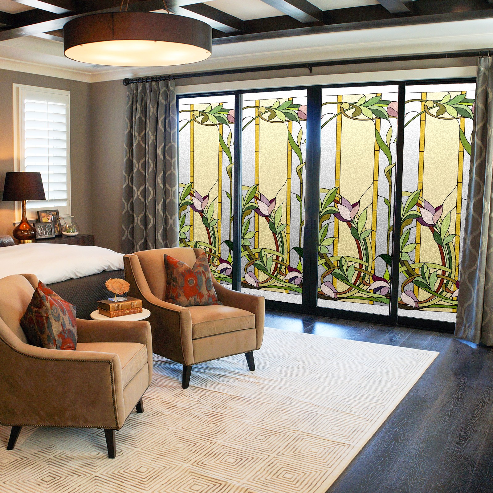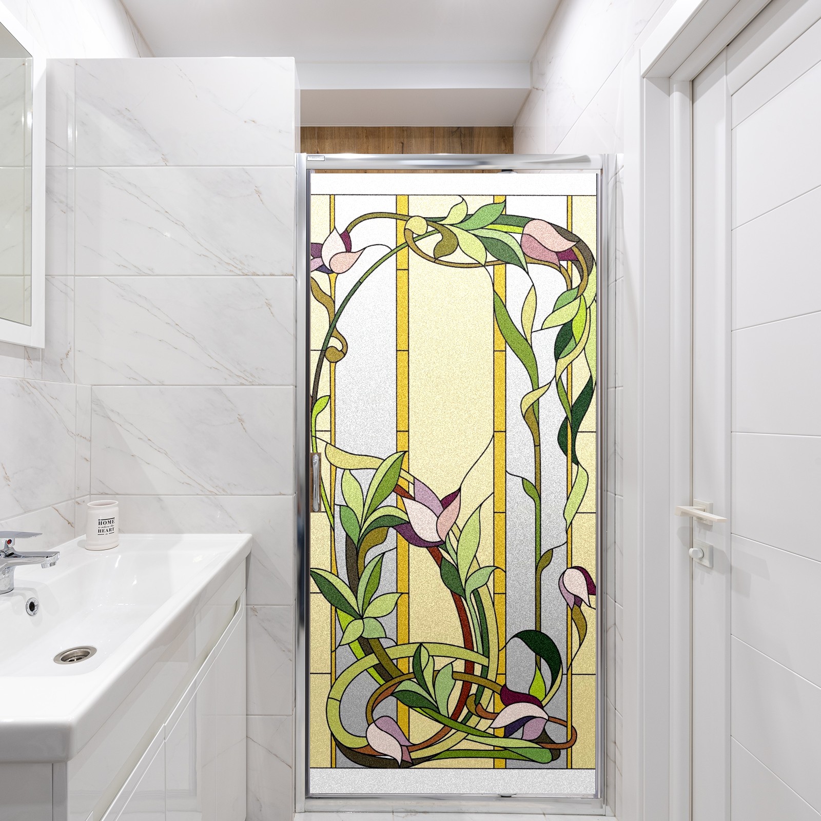 Static Cling Decorative Window Film Frosted Privacy Film Window Clings for Glass Windows No Glue Window Sticker for Bathroom Bedroom Office Window Films Stained Glass