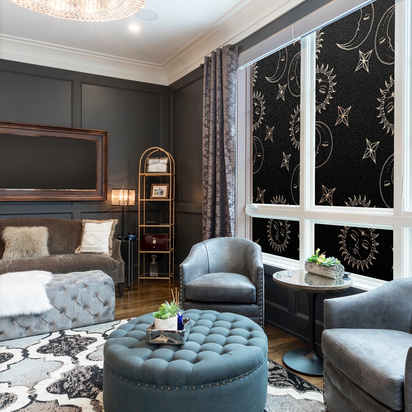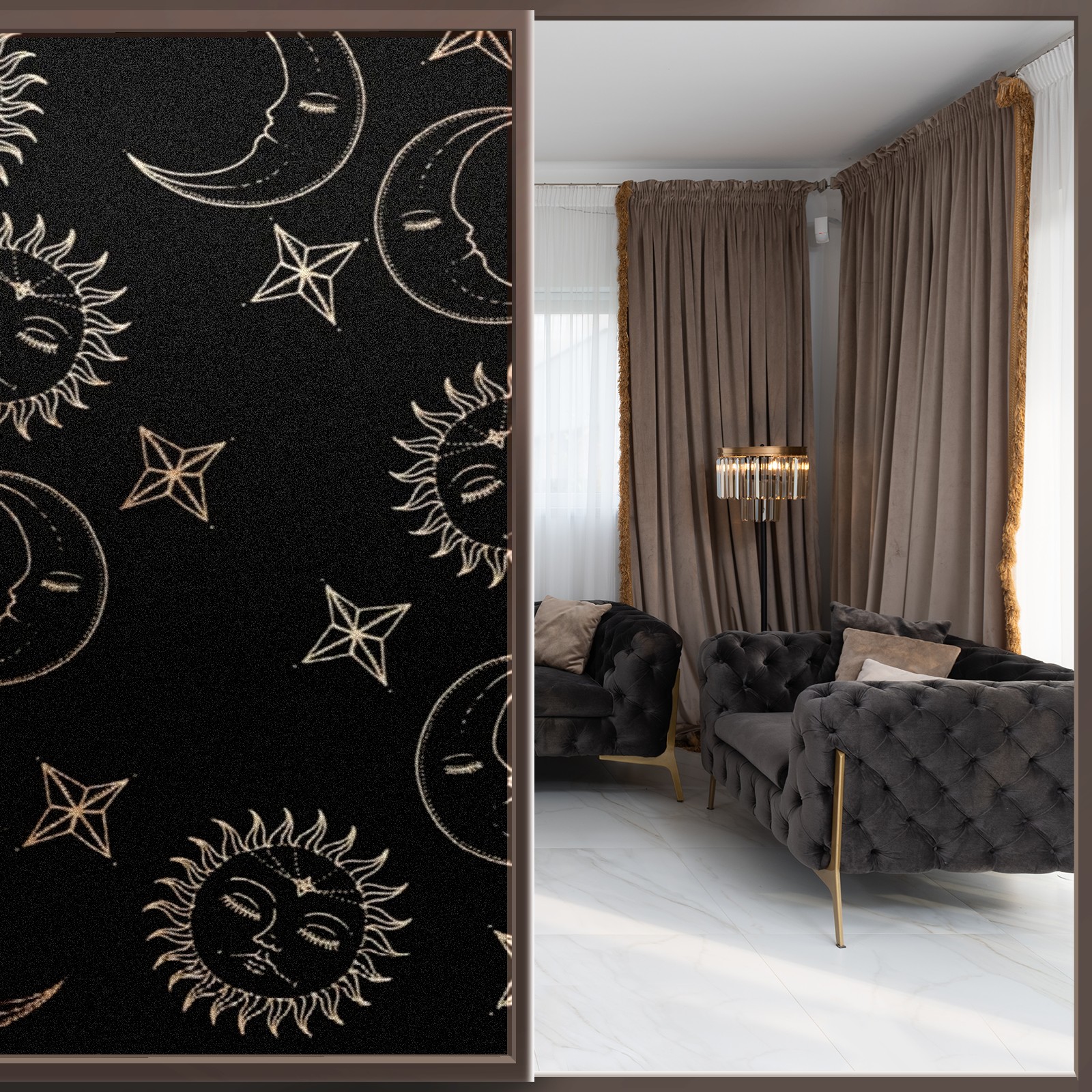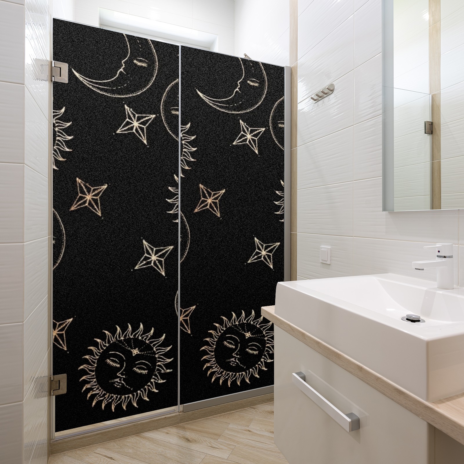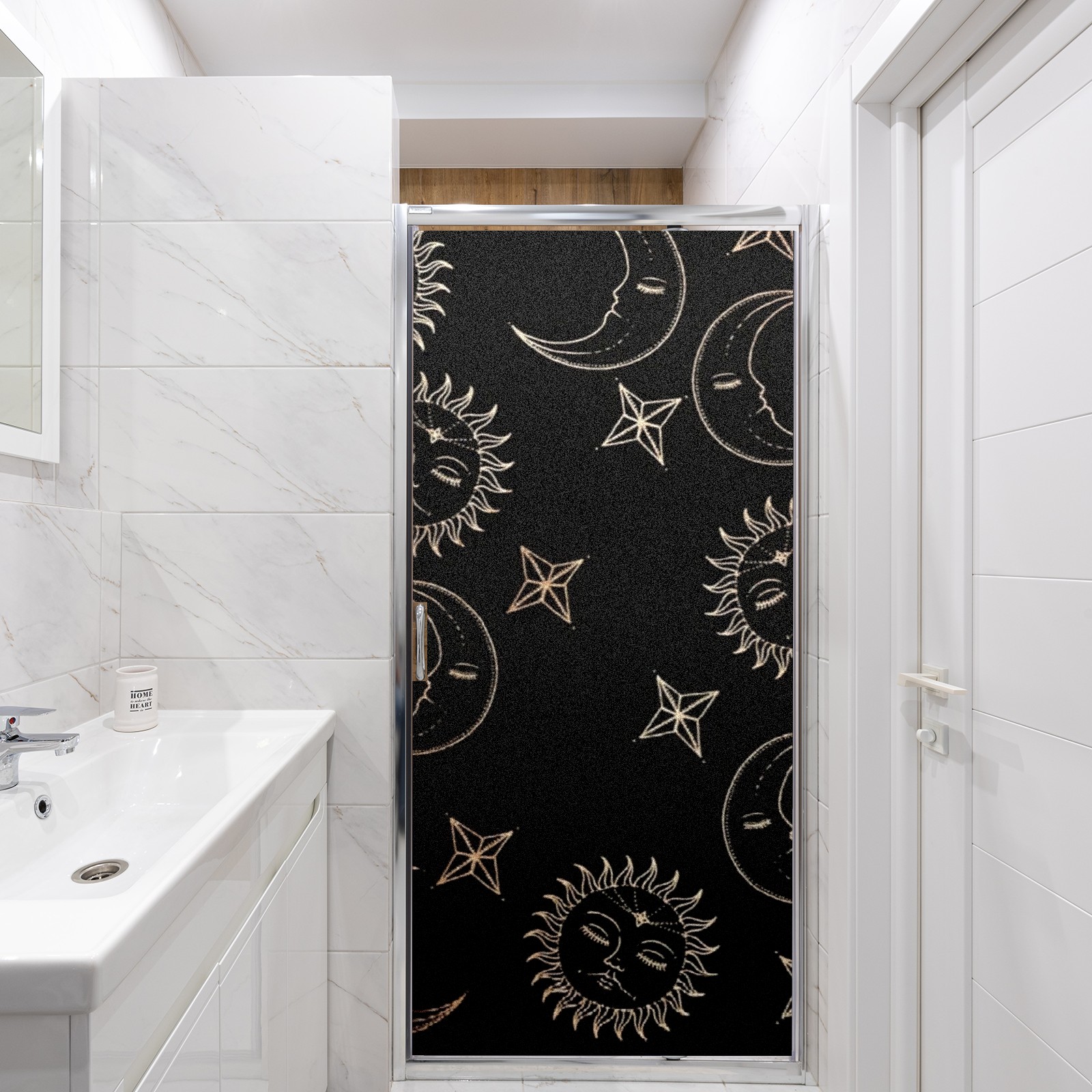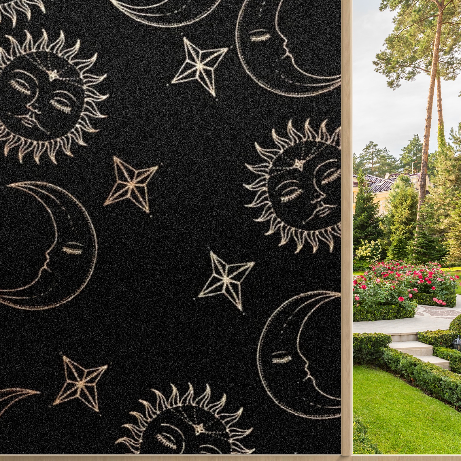 Static Cling Decorative Window Film Frosted Privacy Film Window Clings for Glass Windows No Glue Window Sticker for Bathroom Bedroom Office Black Sun Stars Moon