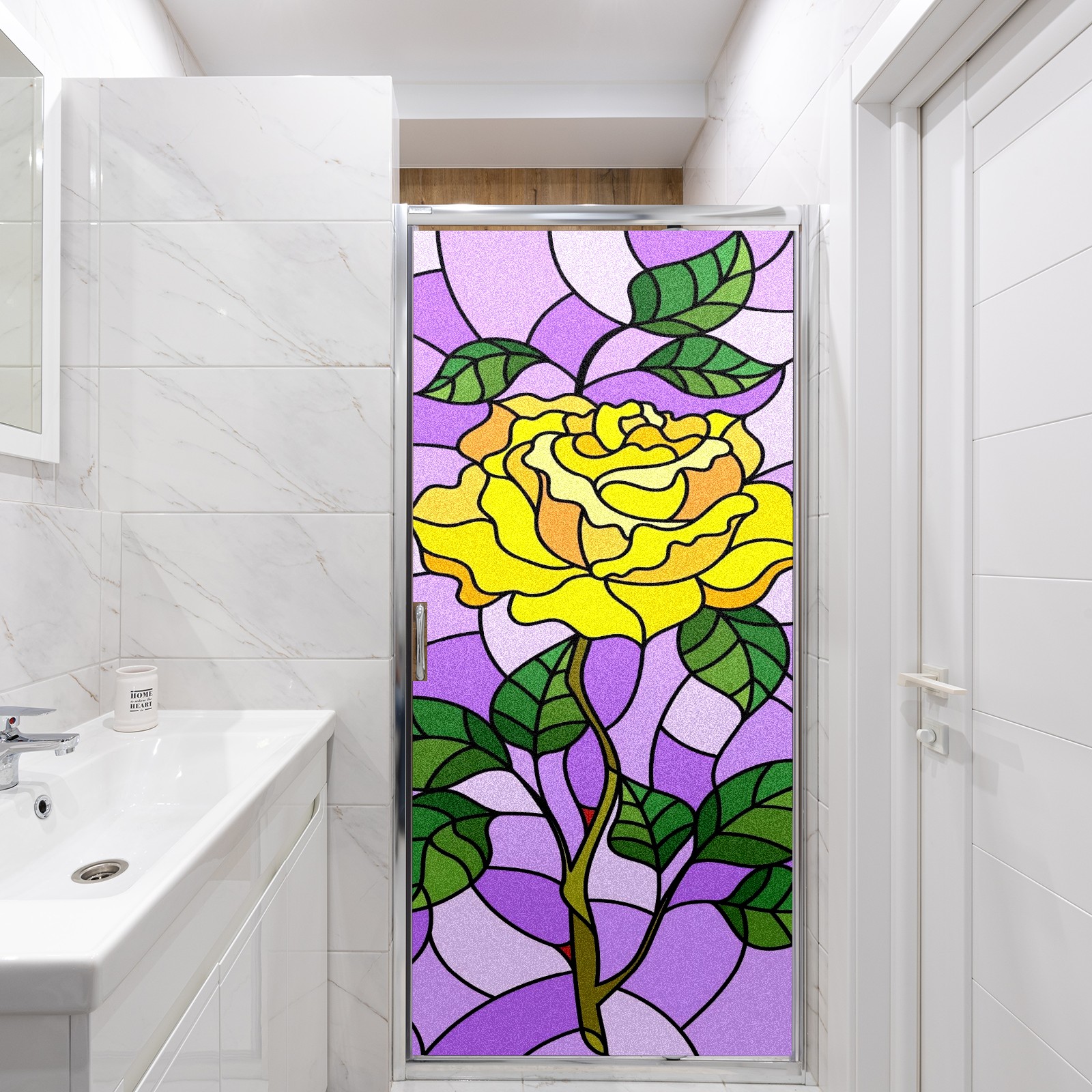 Static Cling Decorative Window Film Frosted Privacy Film Window Clings for Glass Windows No Glue Window Sticker for Bathroom Bedroom Office Floral Window Stained Glass
