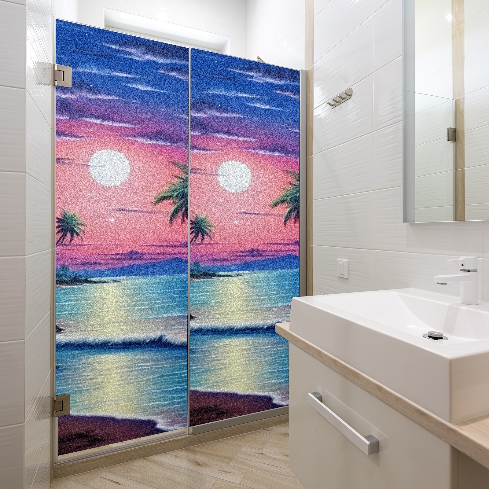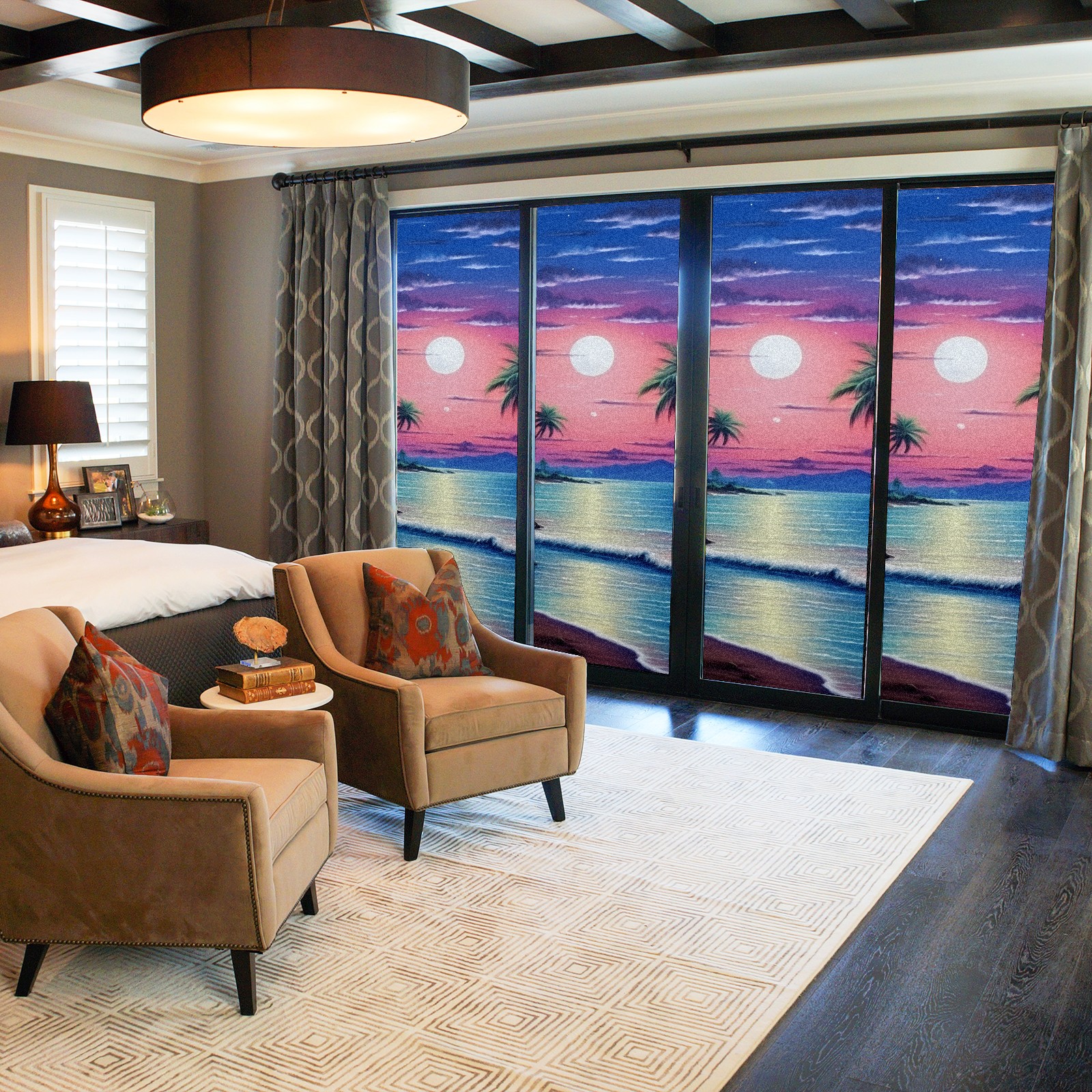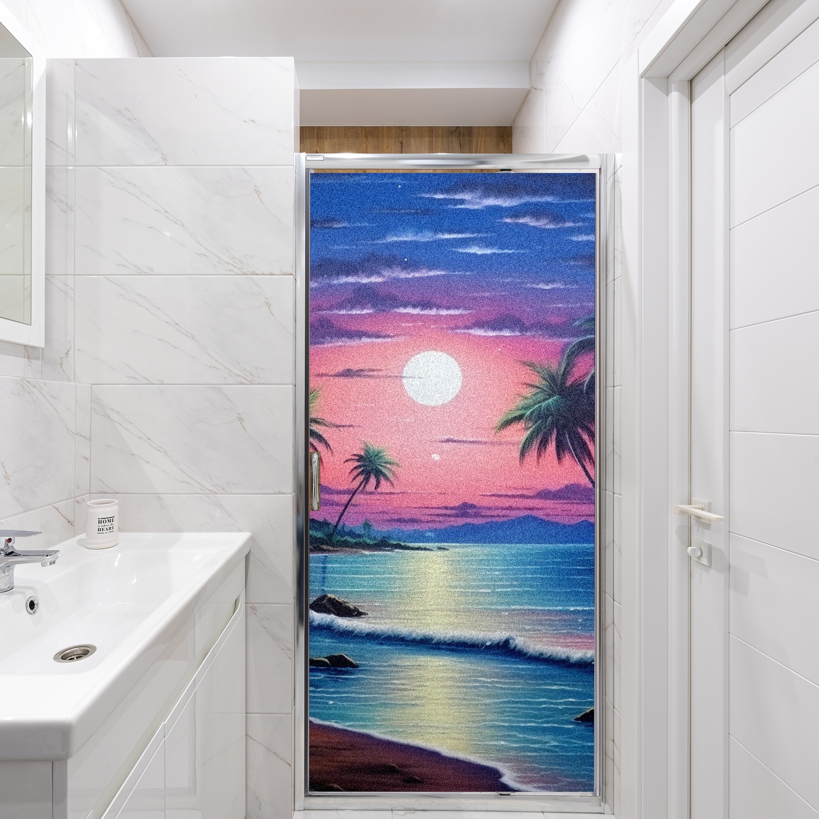 Static Cling Decorative Window Film Frosted Privacy Film Window Clings for Glass Windows No Glue Window Sticker for Bathroom Bedroom Office Beach Moon2
