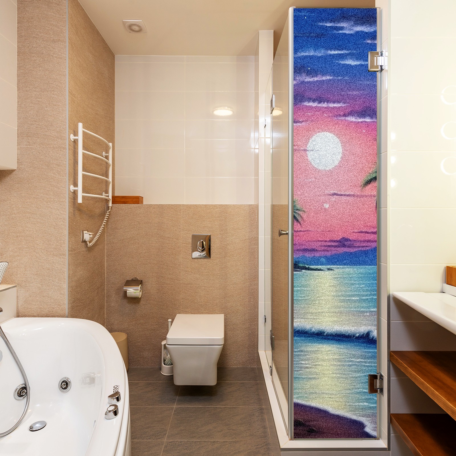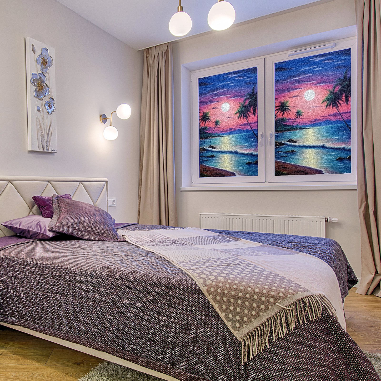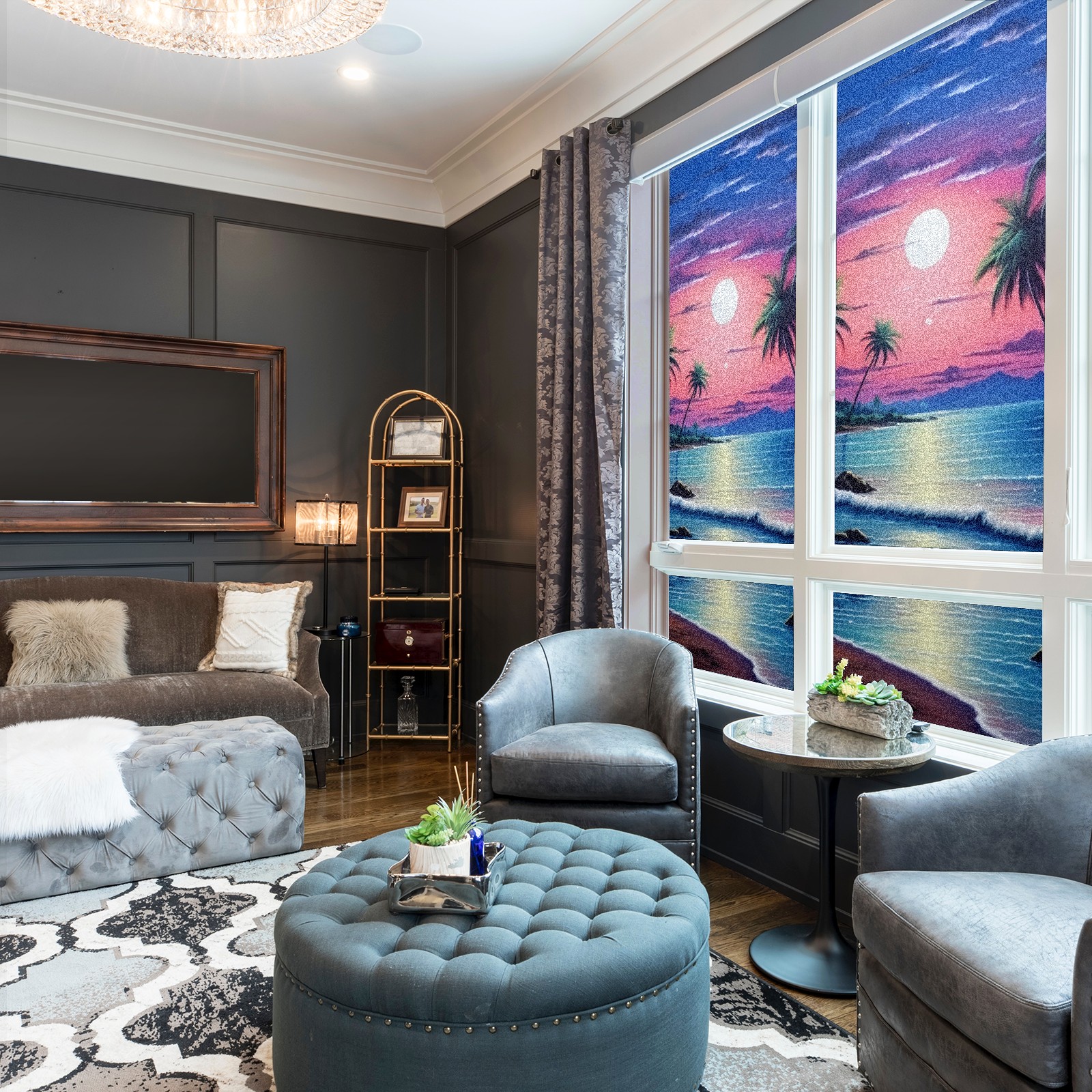 Static Cling Decorative Window Film Frosted Privacy Film Window Clings for Glass Windows No Glue Window Sticker for Bathroom Bedroom Office Beach Moon2