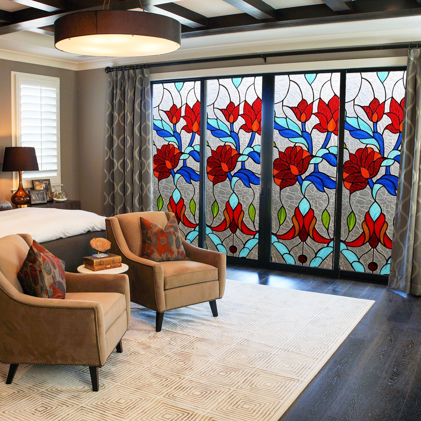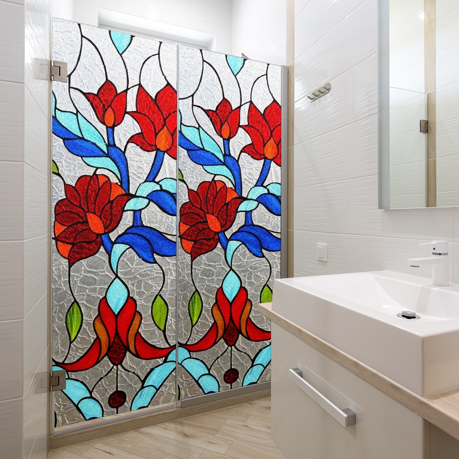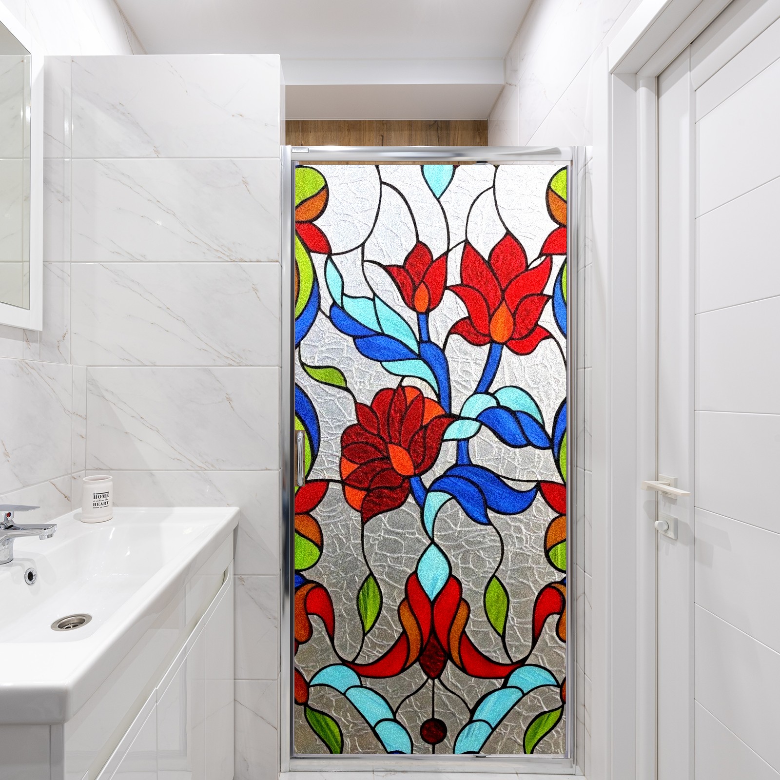 Static Cling Decorative Window Film Frosted Privacy Film Window Clings for Glass Windows No Glue Window Sticker for Bathroom Bedroom Office Flower Stained Glass