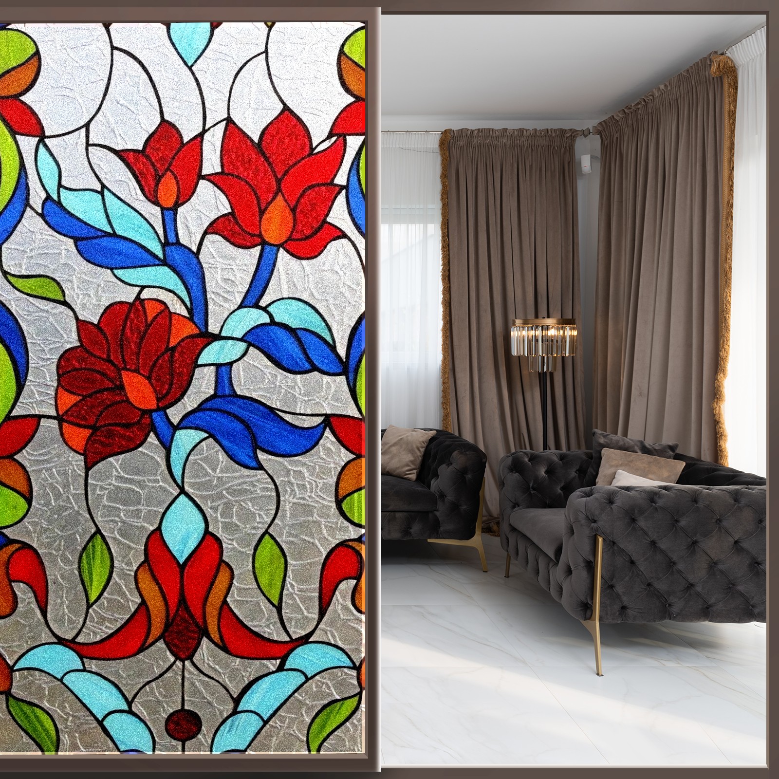 Transform Your House to Home with BRTURLAIR Frosted Glass Window Film! ●BRTURLAIR Window Film with Graphic Printings, Bright and Vivid Color, Our Window Clings are Great Home Decoration. ●This one-way window tint offers excellent sun blocking capabilities, effectively reducing heat and glare, while still allowing natural light into your space. ●With its non-adhesive static cling technology, installation is a breeze. ●Plus, it’s reusable, making it perfect for renters. Installation Tips: Before installation, please make sure the window surface, edges and corners are clean enough without any dust; during installation, please spray a lot of water both on the window surface and window film back for effective attachment; after installation, please trim the margins and leave edge gaps to squeeze out air bubbles easily.