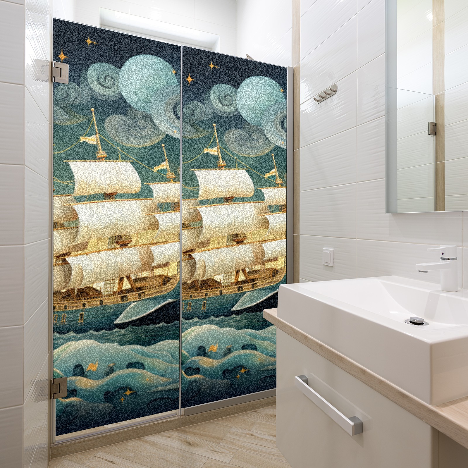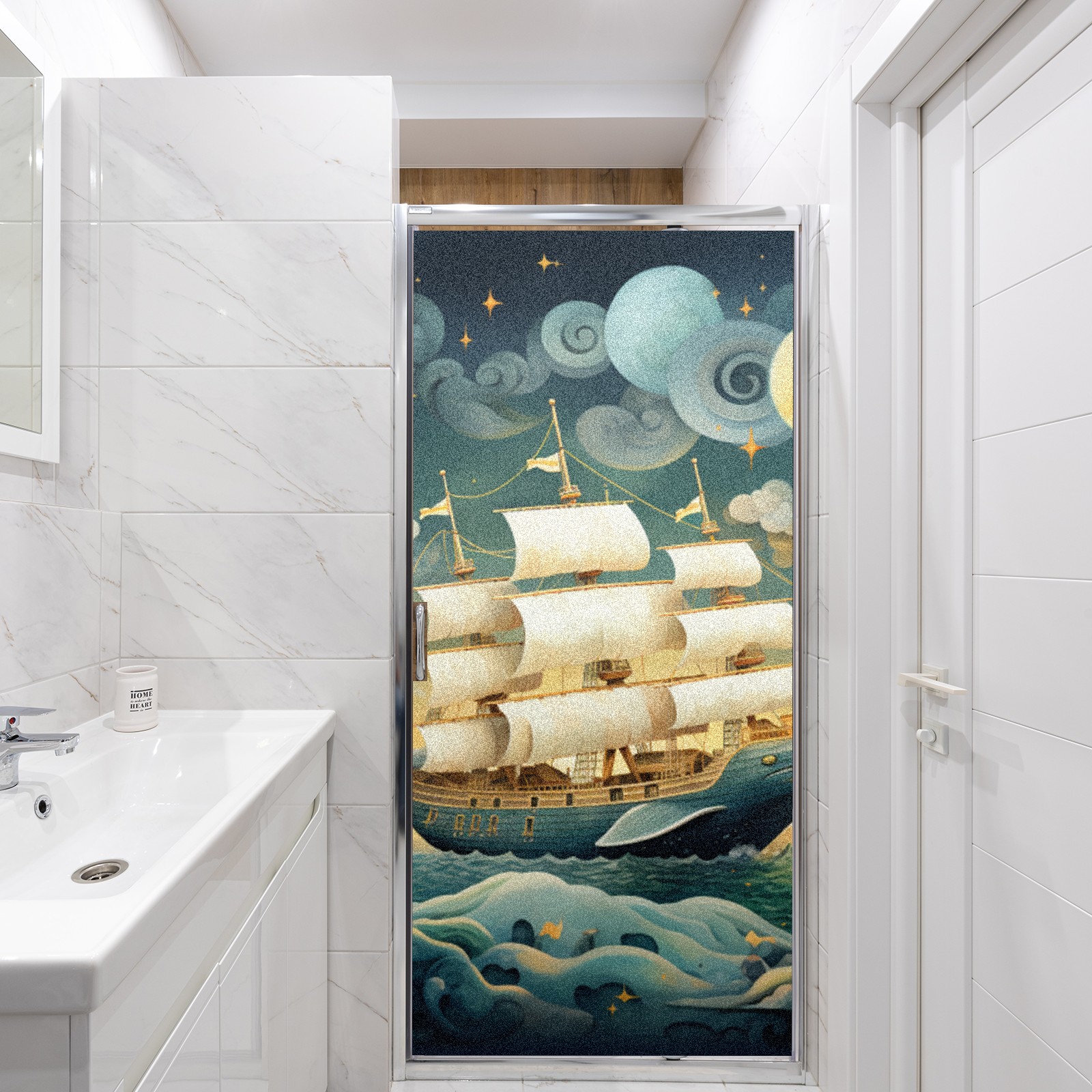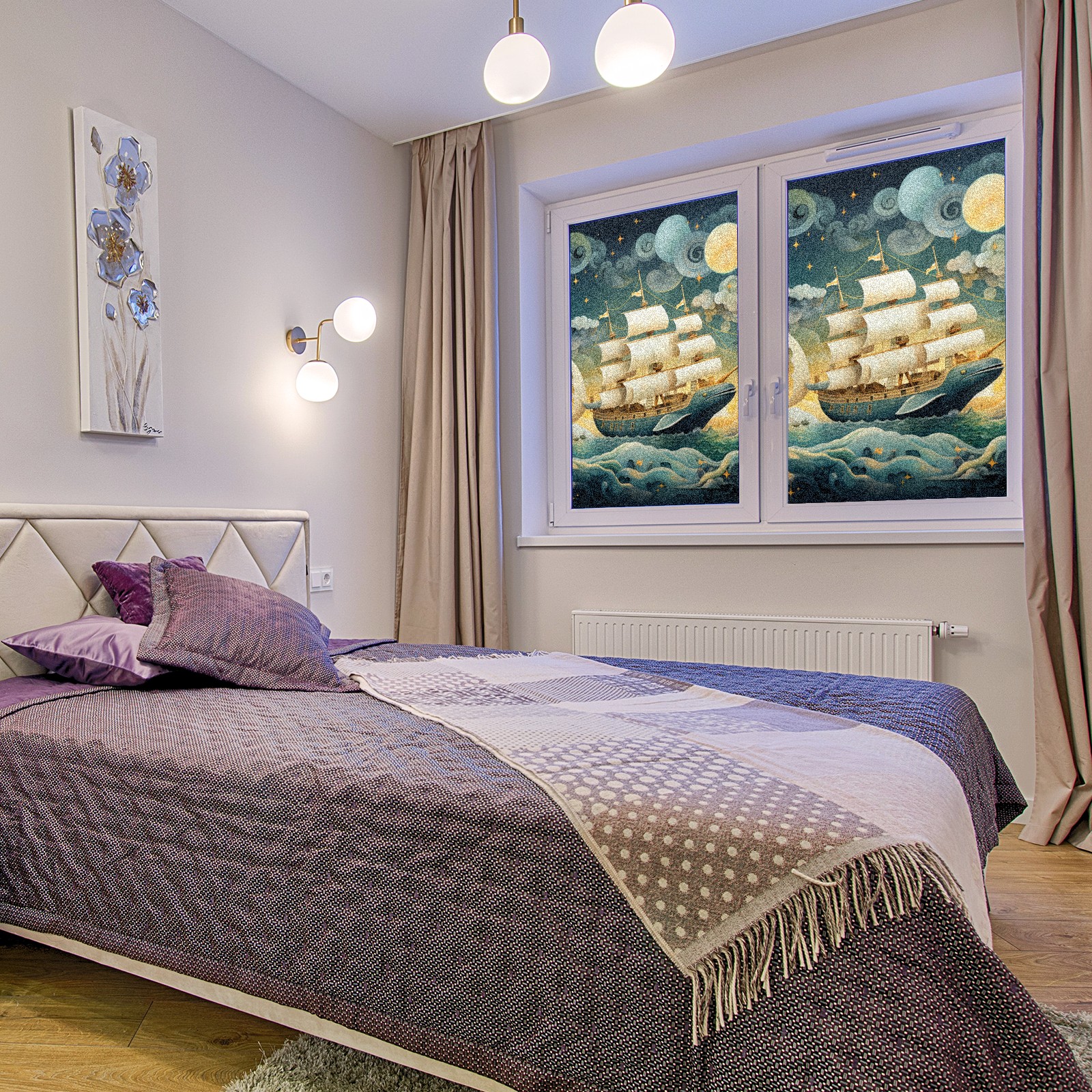 Static Cling Decorative Window Film Frosted Privacy Film Window Clings for Glass Windows No Glue Window Sticker for Bathroom Bedroom Office Moon Ship2