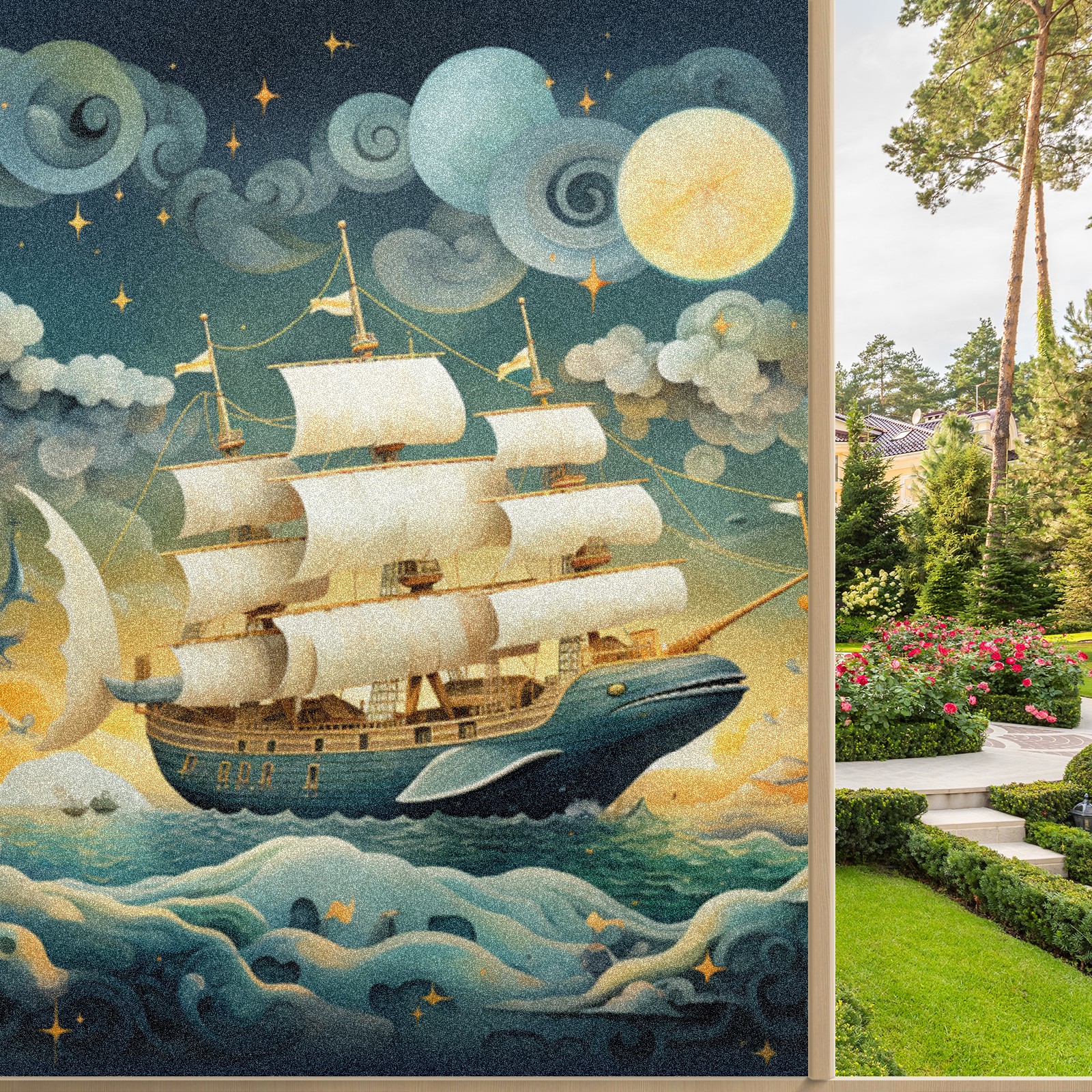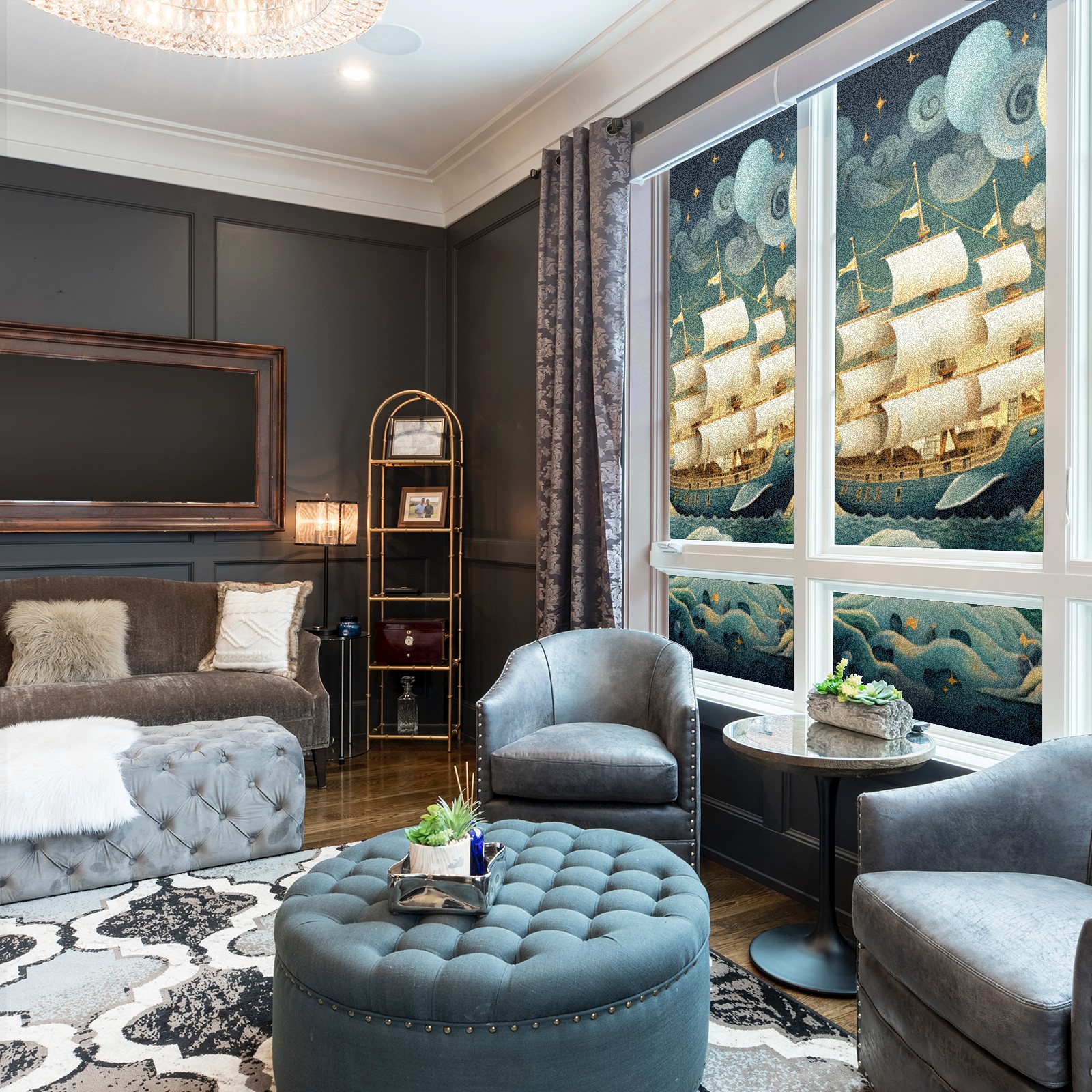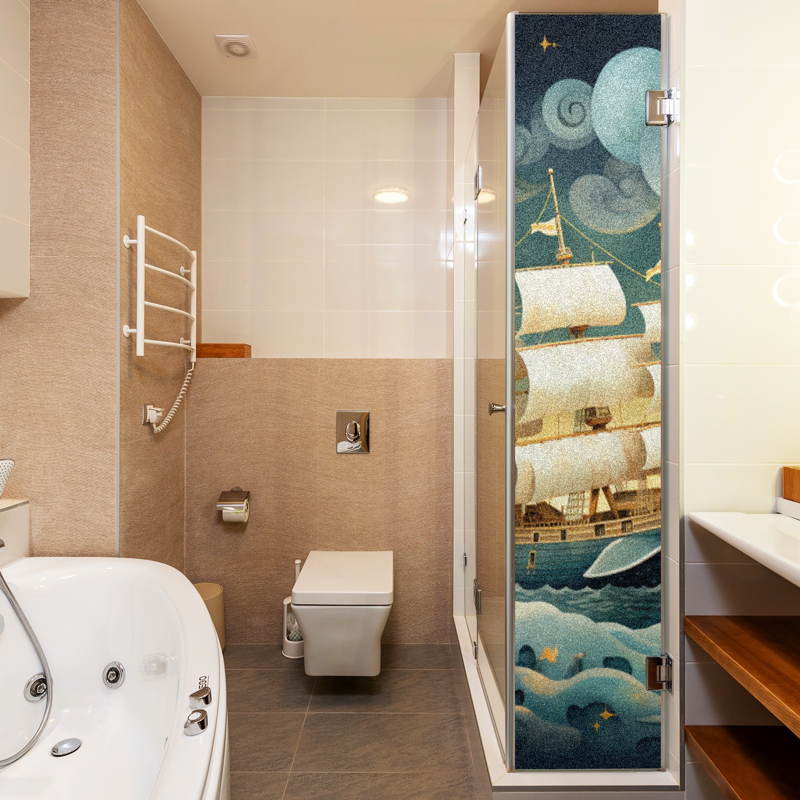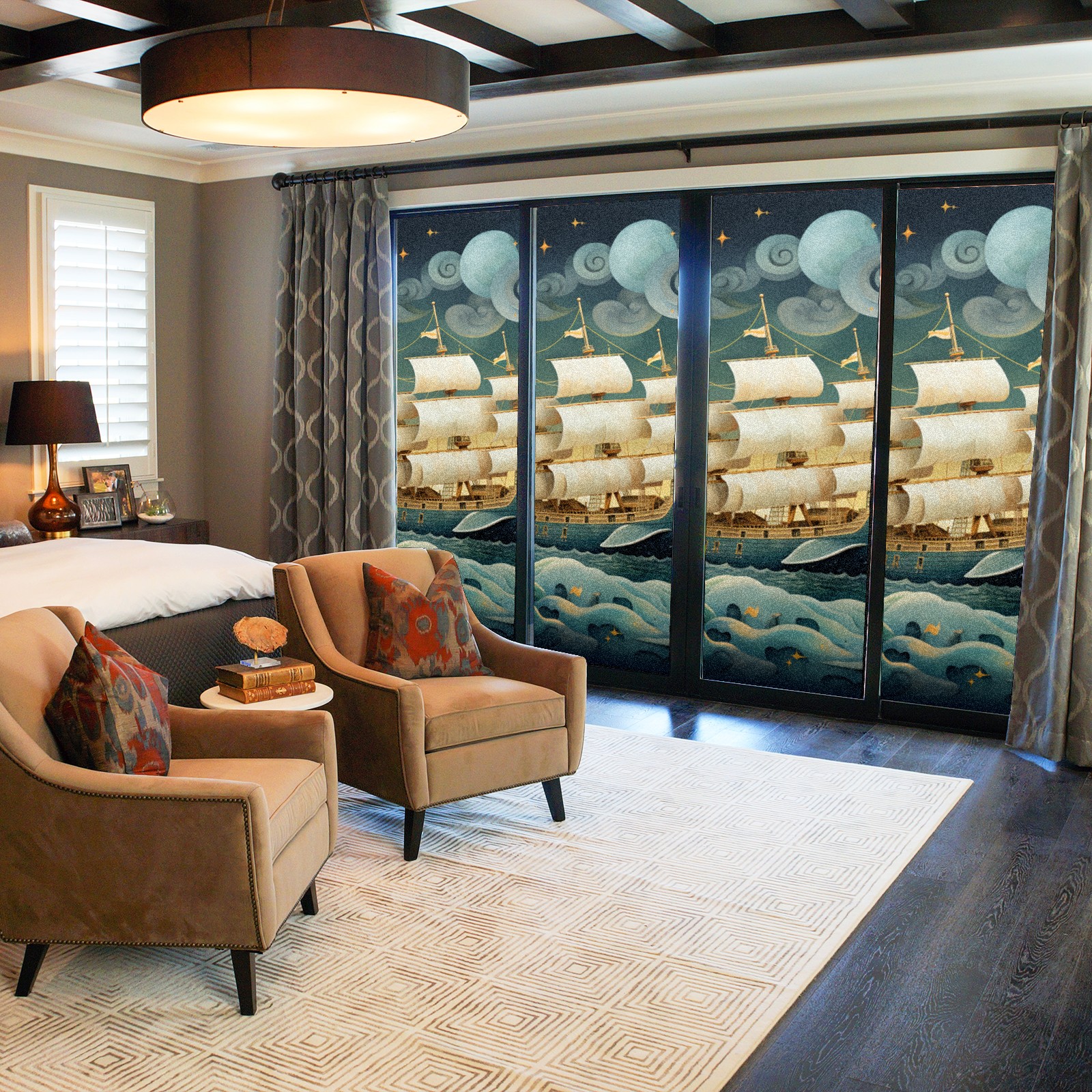 Static Cling Decorative Window Film Frosted Privacy Film Window Clings for Glass Windows No Glue Window Sticker for Bathroom Bedroom Office Moon Ship2