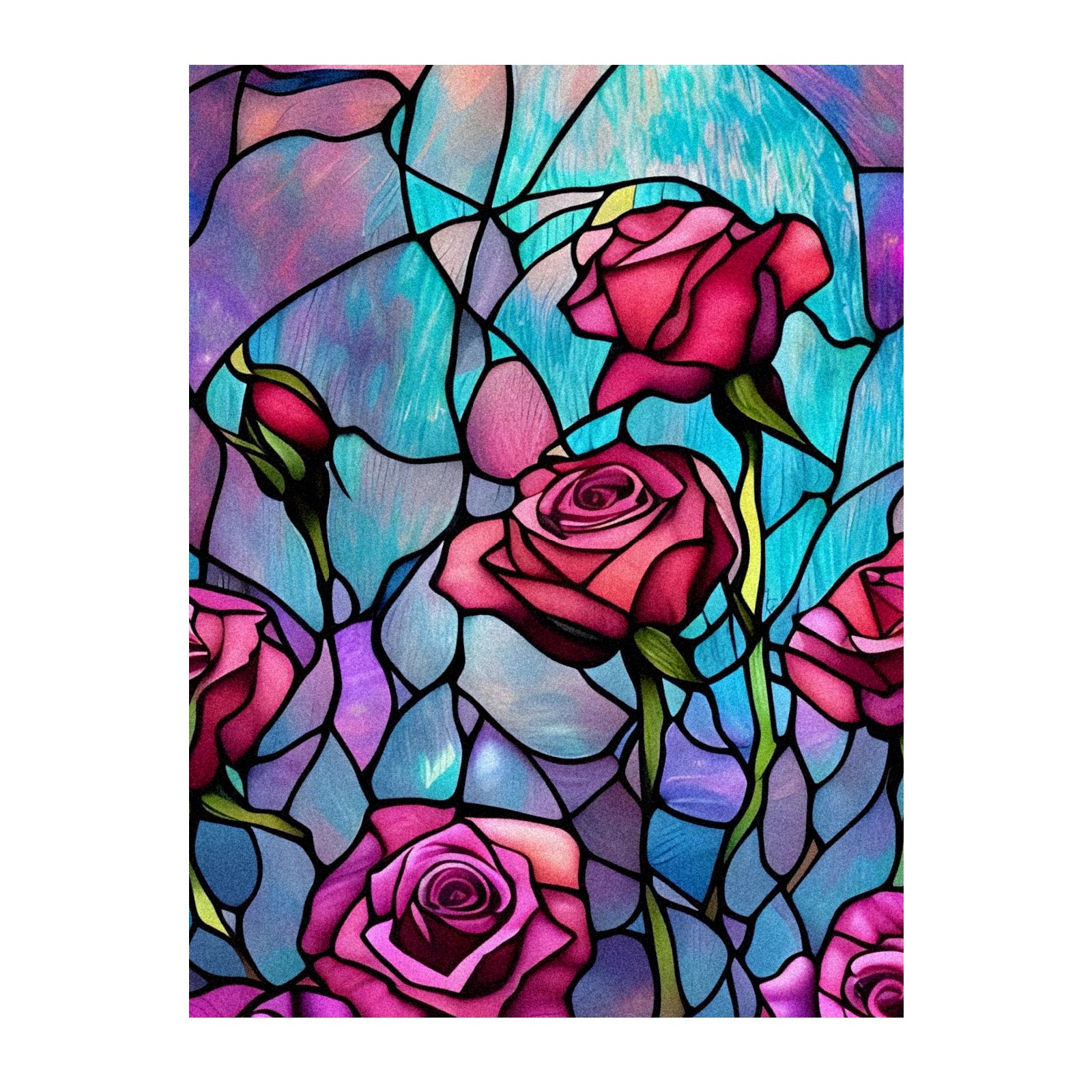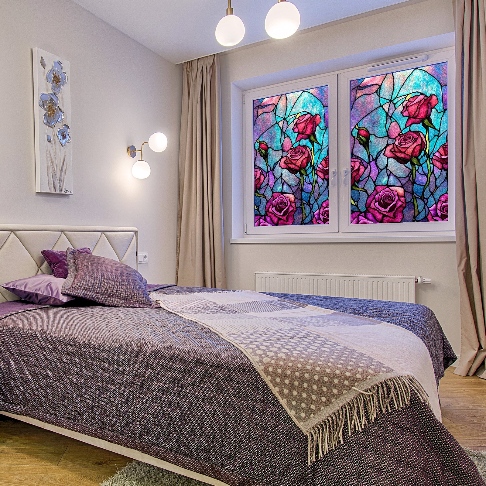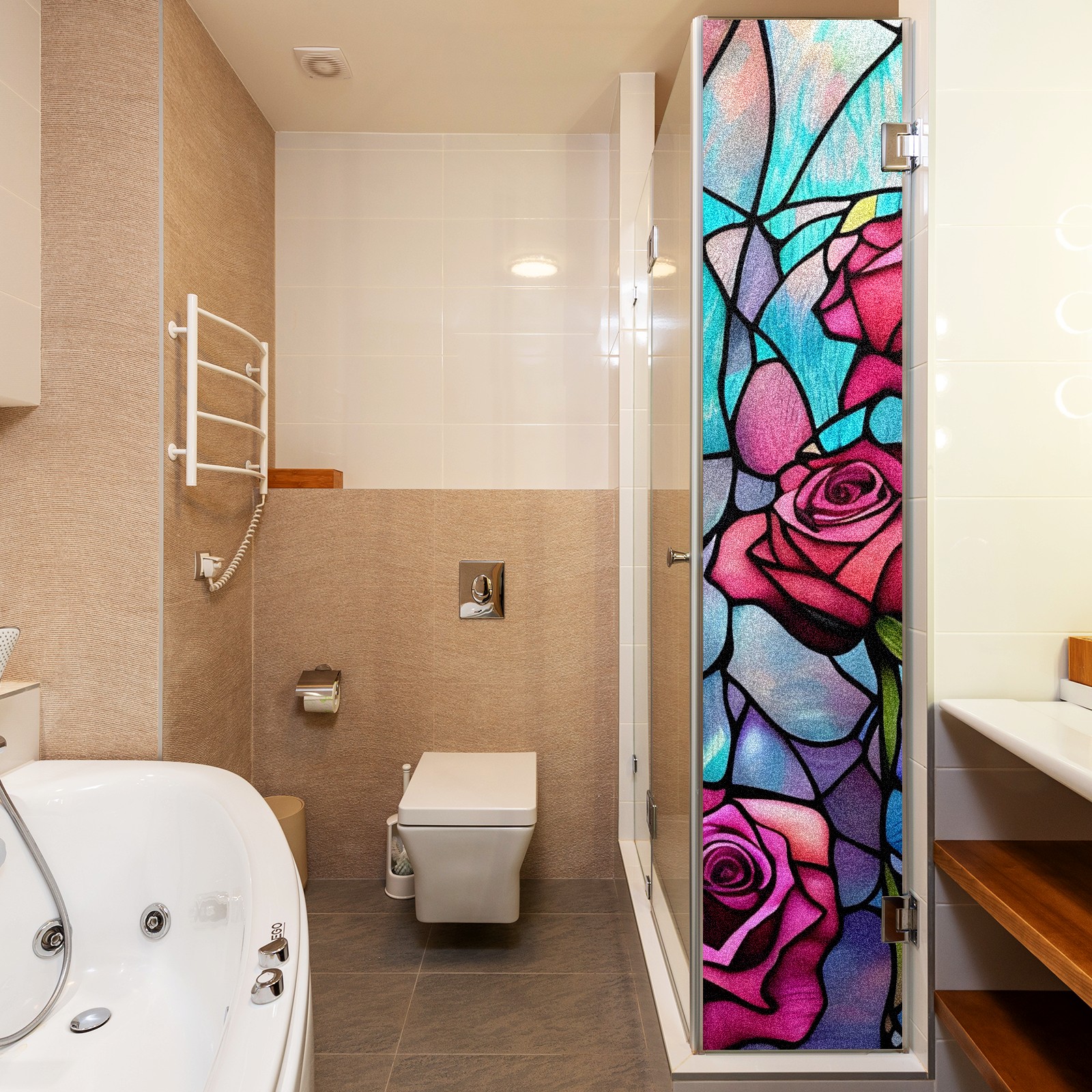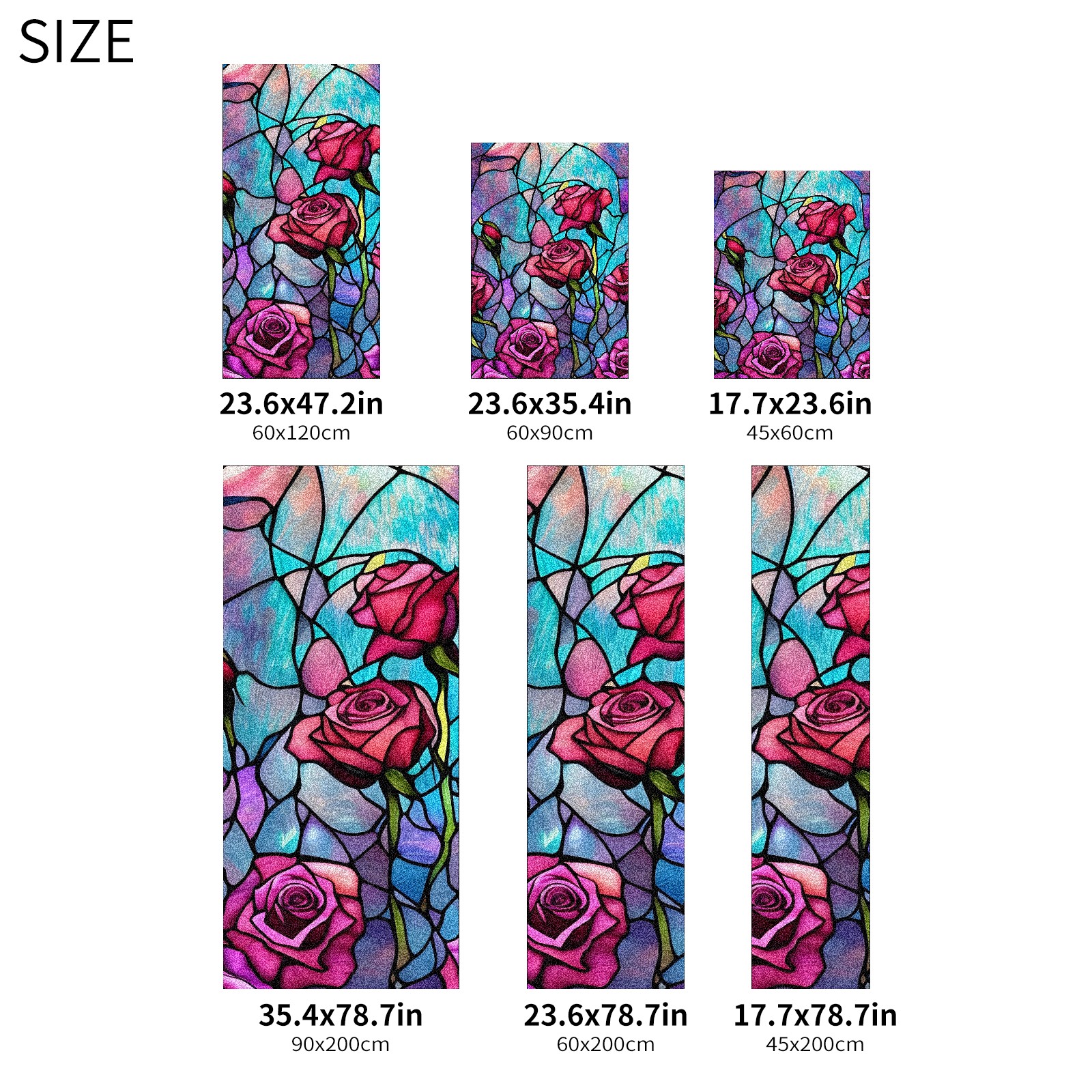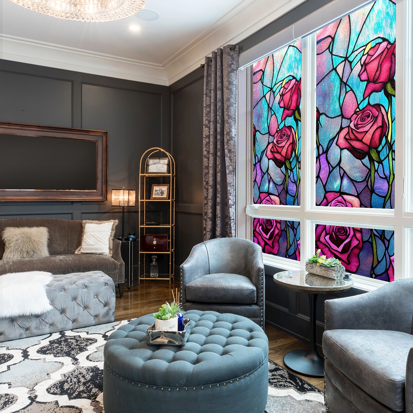 Static Cling Decorative Window Film Frosted Privacy Film Window Clings for Glass Windows No Glue Window Sticker for Bathroom Bedroom Office Stained Glass Roses